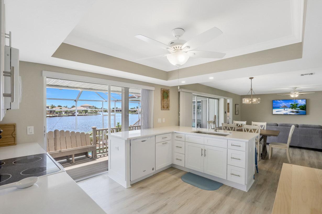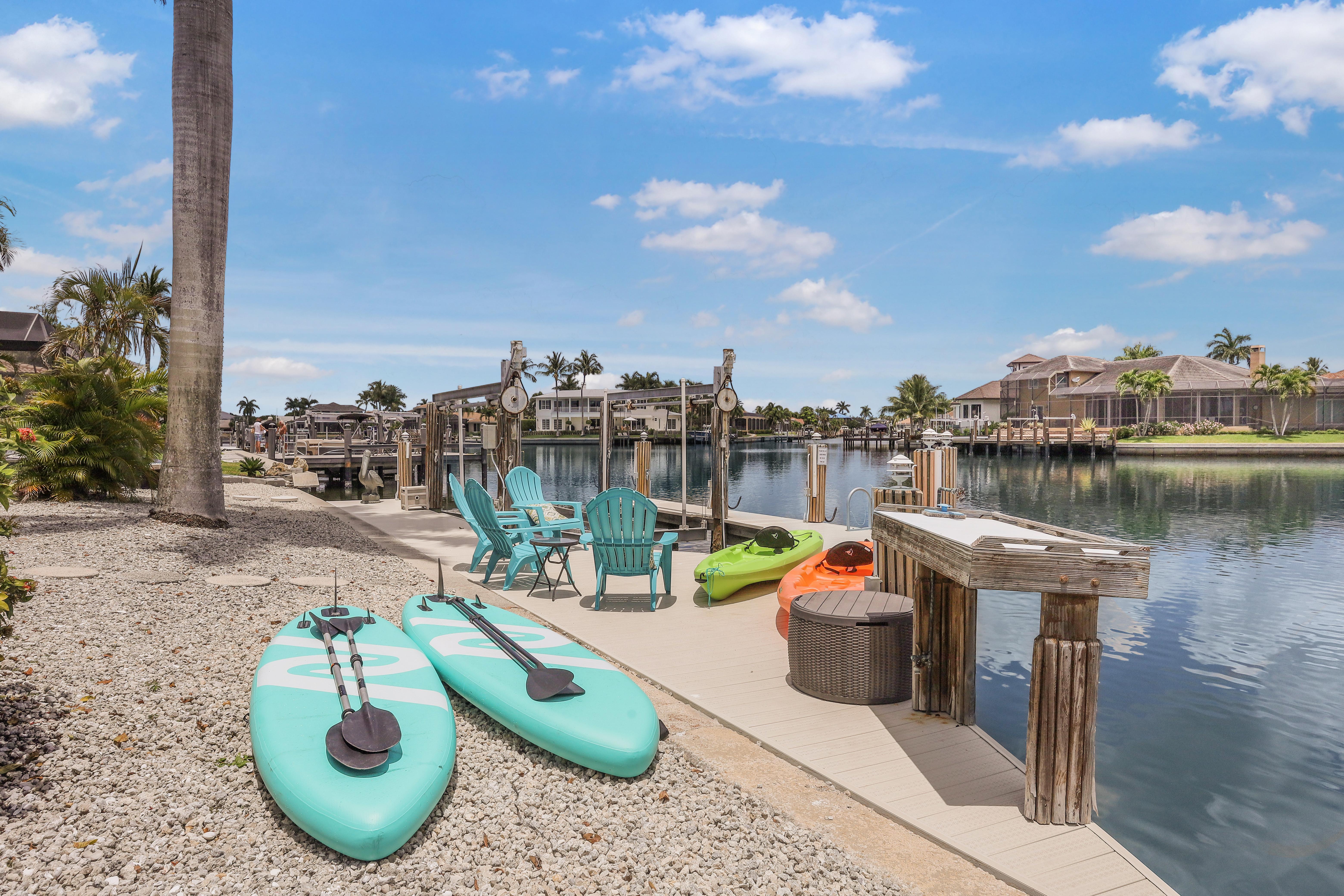 Want to have your own tropical oasis with water access on Marco Island? Well, this can be a reality at this 1,700 square foot house. It sleeps six, along with your furry friend, with one king bed, two full beds, and two bathrooms. It also comes with a one-car garage. Take a step inside, and you will immediately be invited by the feeling of paradise that surrounds you. Sunlight floods the area and brightens the boat deck-inspired floor and sand-colored walls. Cozy furnishings and seaside sculptures, paintings, and décor mix perfectly together to produce a laidback beach feel. While relaxing on the comfy and stylish furniture, you will always be just a head turn away from the beautifully blue water that surrounds you. The kitchen features pure white cabinets and granite countertops with barstools for a quick bite. It also comes with all the modern appliances and cookware that you need to serve a family dinner on the table that looks out to the waterway beyond the lanai. Every bedroom, along with their televisions and plethora of closet and drawer space, comes with a direct access point to one of the breath-taking views of Marco Island. The master suite, in particular, is designed with tropical fabrics and décor and comes with an en suite bathroom and sliding door access to the lanai. Once you do take a step out on the lanai, you’ll see what makes this house the epitome of a Florida home. It’s encircled by tropical plants and overlooks, or is practically surrounded, by still blue water. Whether you’re wanting to cook up and enjoy a poolside barbeque or just relax in pure bliss, the sky is the limit with the provided gas grill, spacious heated pool, chairs, and lounge areas. Sliding door access makes it easy to hand out ice cold drinks and snacks from the kitchen. As your day begins to wind down, end your day here or around the firepit in the yard in a true Marco Island fashion by whipping up some tropical drinks in the blender and heading down to the dock to watch the setting sun turn the sky a brilliant orange. The house gives you comfort-enhancing amenities like air conditioning and heating, ceiling fans, free wi-fi, cable, linens, towels and a washer and dryer. You also have three bicycles, two kayaks, and two paddleboards to tour the island, along with beach essentials like beach towels, beach chairs, cooler, and umbrella, which will come in handy since you’re just a short drive from Marco Island’s crescent shaped beach, with its warm sand, fabulous sunsets, and endless activities. Take a parasailing cruise and see the sparkling ocean the way the birds see it. Charter a fishing boat or go on a shelling cruise. Take a Jet Ski tour of the Everglades. If total relaxation is more your style, lay back and watch the dolphins frolicking in the surf. So, come experience Marco Island living at its finest at this tropical getaway. Marco Island Vacation Properties® specializes in vacation, seasonal, and annual rentals. Since 1989, our family owned and operated rental agency has been introducing thousands of visitors to this tropical paradise. Unlike other agencies, Marco Island Vacation Properties® doesn’t only hand you the keys to the property and hope that you enjoy your stay. Our guest services representatives are eager to answer all of your questions and concerns relating to your stay. In addition, our recently developed mobile application is similar to having your own personal tour guide, since it provides you with all the information you will need to know before, during, and after your stay. If you still have additional questions, please simply send us a text message right from your smart device and into the hands of our friendly staff!
