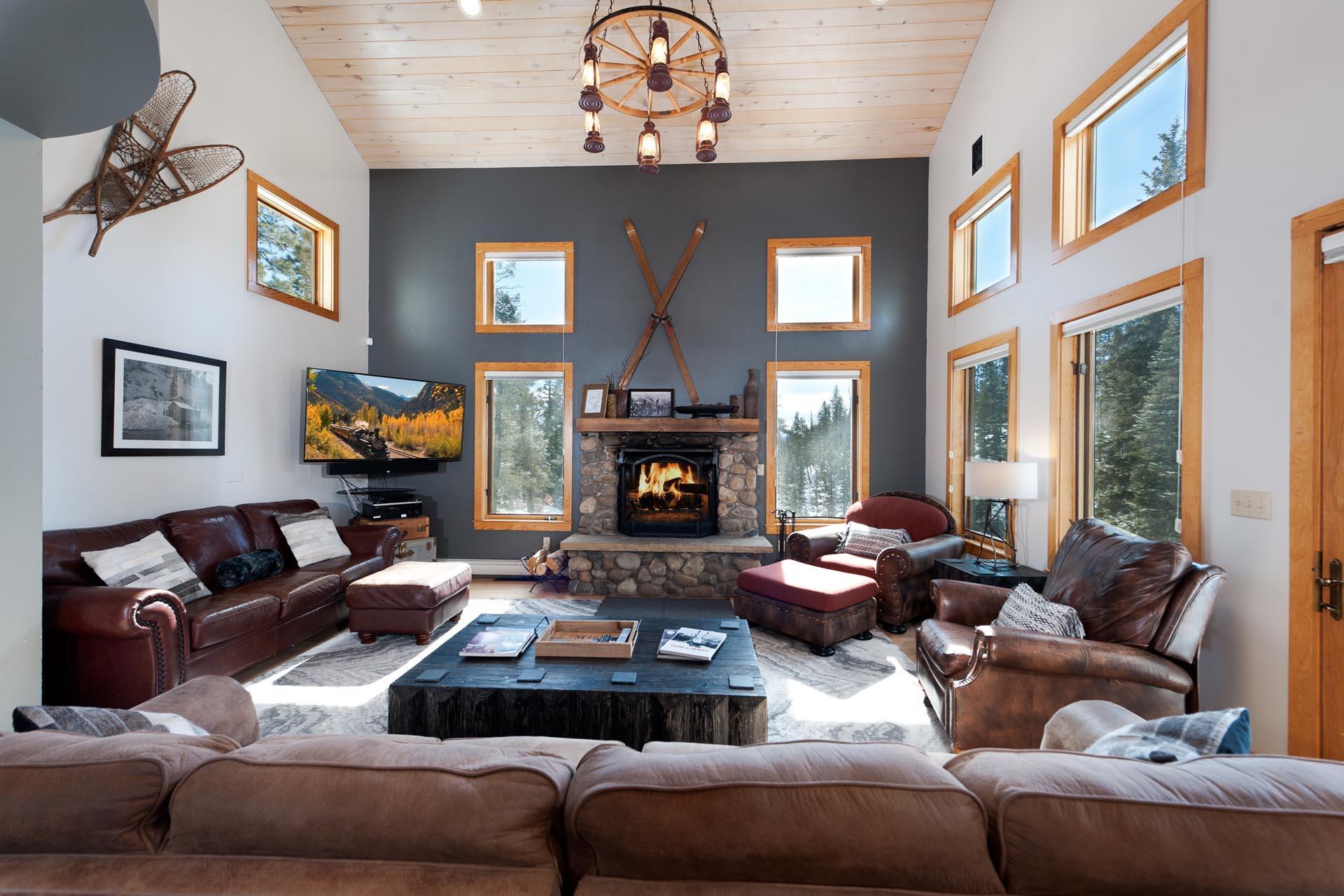 The luxurious home is furnished with rustic, high quality furnishings, historic mining and western photos and features flat screen TVs in the Main Living space (60') and the 2nd living space (42') and three of the bedrooms (42').
