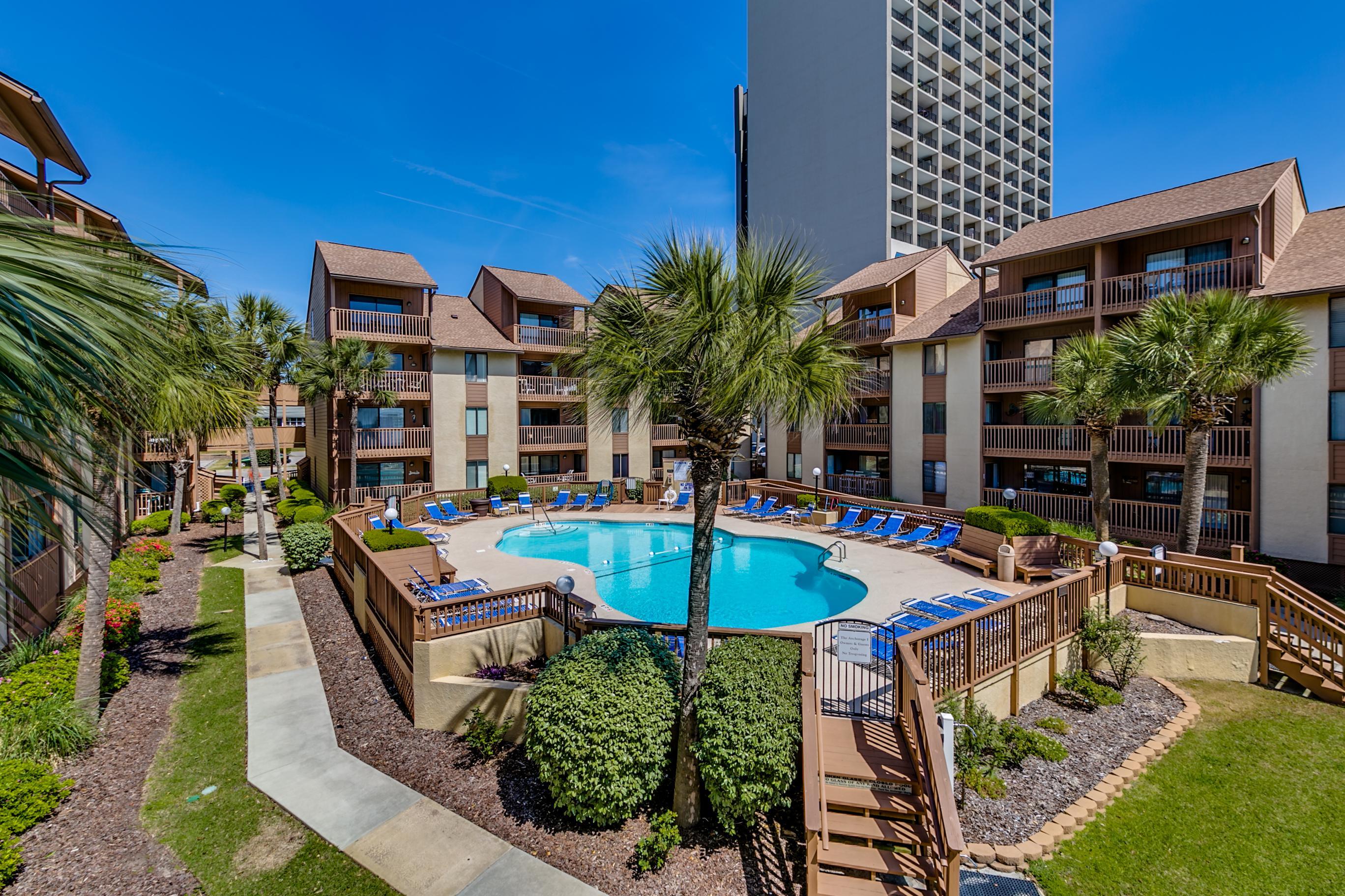 The complex is centered around a lush tropical courtyard with a large outdoor pool and deck. The deck includes lounge chairs for you to enjoy a day around the pool. There are multiple outdoor grills located on each side of complex as well. In front of Anchorage I and Anchorage II, you will find a playground, memorial park, exercise trail, private walkway to the ocean, outdoor showers and private beach gazebos for our guest to enjoy. Elevators and handicap ramps are located on each side of the complex and are easily accessible. Condos feature full size washer/dryer, flat screen TVs, and high-speed internet. Ample parking is available.