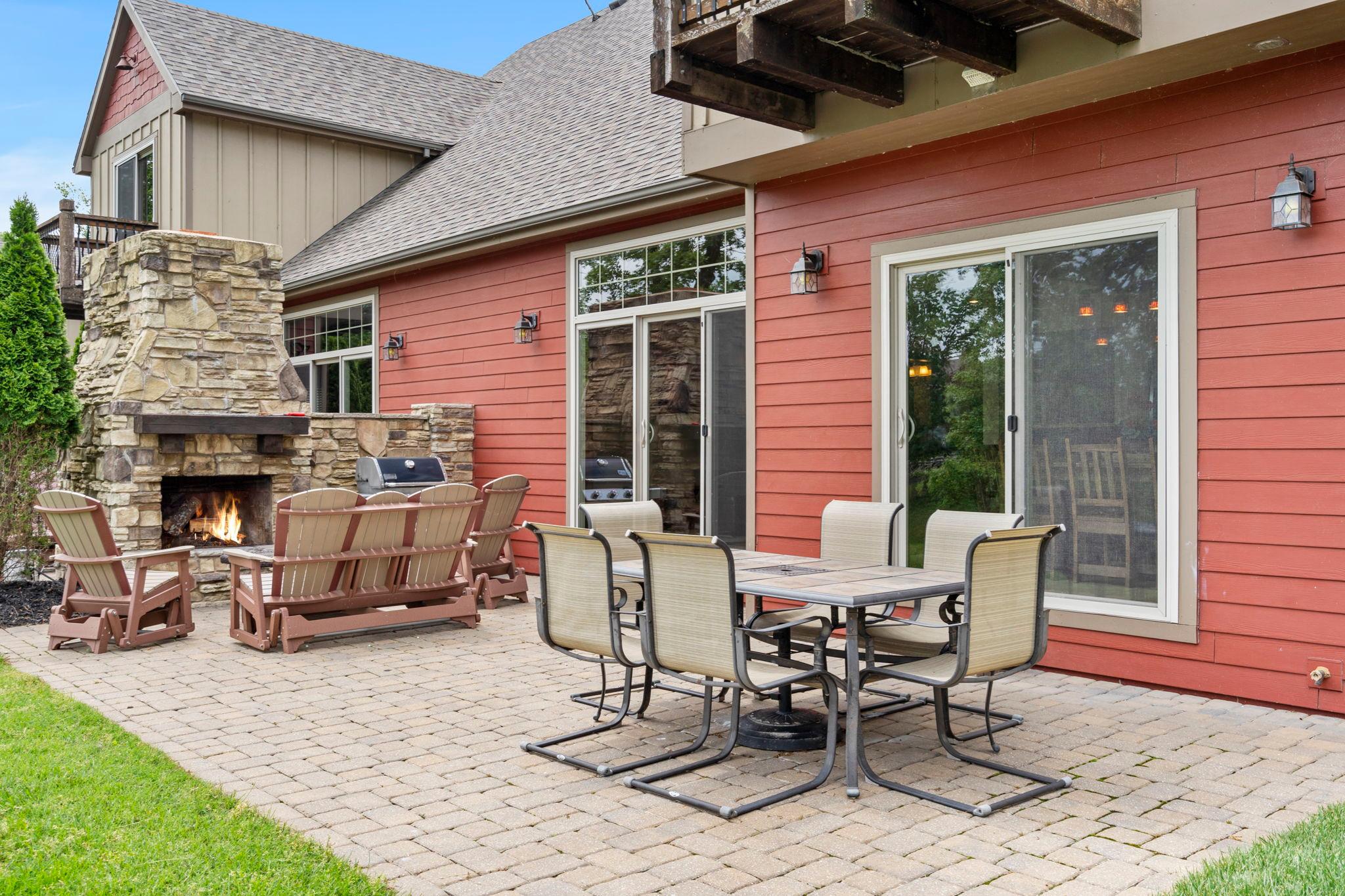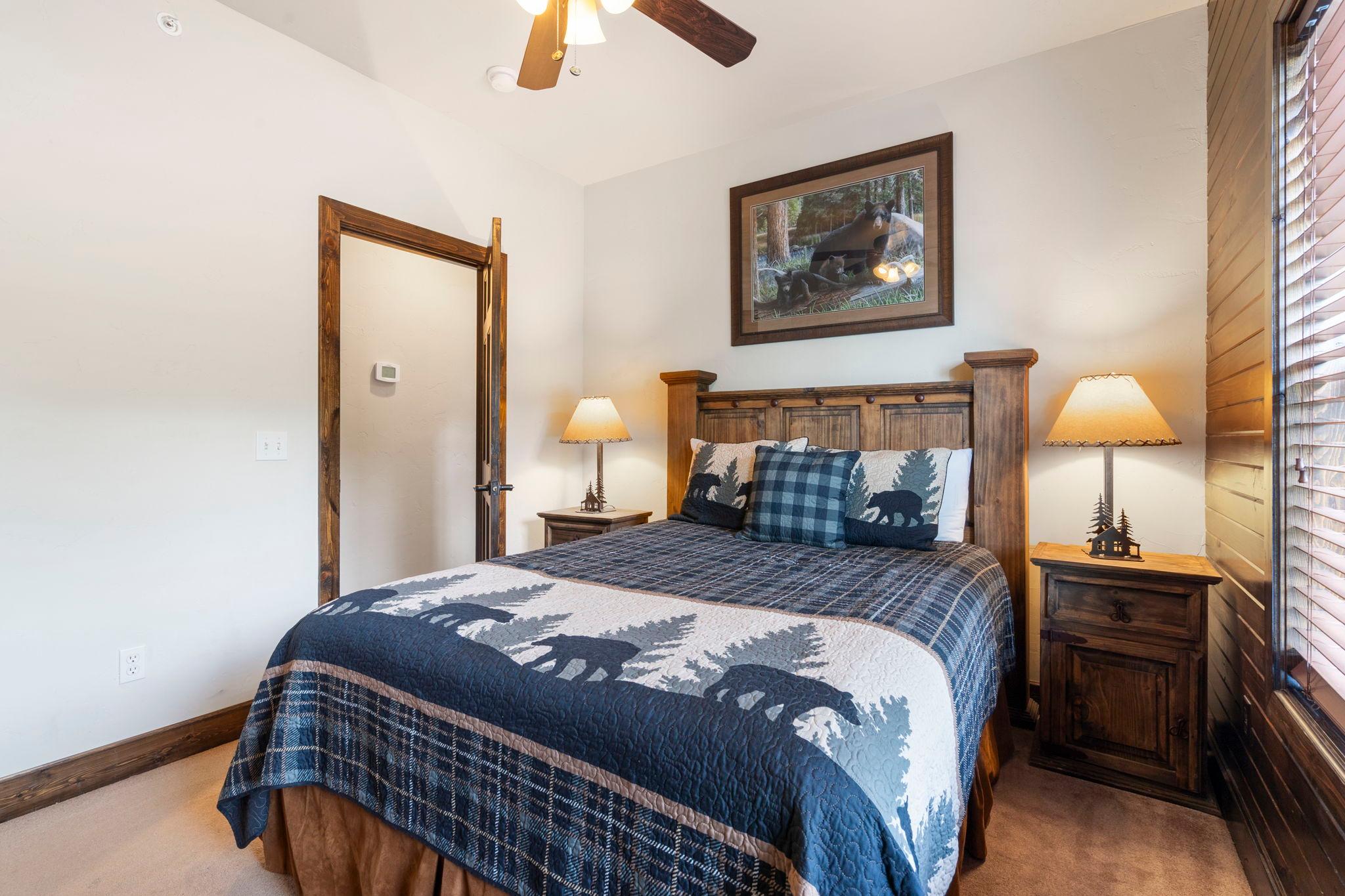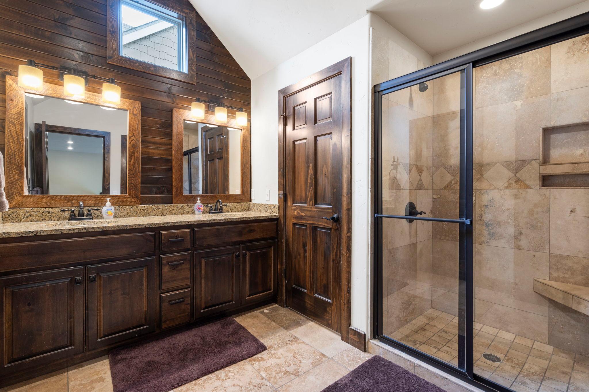 Cozy lakeview villa with wood accents, a floor-to-ceiling stone electric fireplace, and stunning views of Table Rock Lake. Step out to a large patio with a wood-burning stone fireplace—perfect for making s'mores (roasting sticks included!). Upstairs features two king suites with luxury baths, one with a private balcony, plus a loft with futon, TV, and laundry room. The main level has a queen bedroom and a full-over-queen bunk room with a Jack-and-Jill bath, plus a half bath in the hall. A getaway your family will never forget!