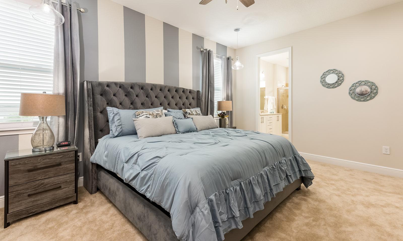 If anyone is still looking for entertainment after the theme parks, you'll find it in the colorful and whimsical TV and game loft right outside the upstairs bedrooms. In addition to an oversized flat-screen TV and comfortable couches and chairs, the loft is equipped with an Xbox One video game console, as well as a ping pong table that converts into an air hockey table, both ready for some friendly family competition. When sleep gets the better of you, you'll have sweet dreams in the stunning, well-appointed bedrooms, all with flat-screen TVs and nearly all with attached baths. There are two King suites and one Queen; plus a kids' bunk-bed room that sleeps four and pays tribute to everyone's favorite animated mouse and his love interest.