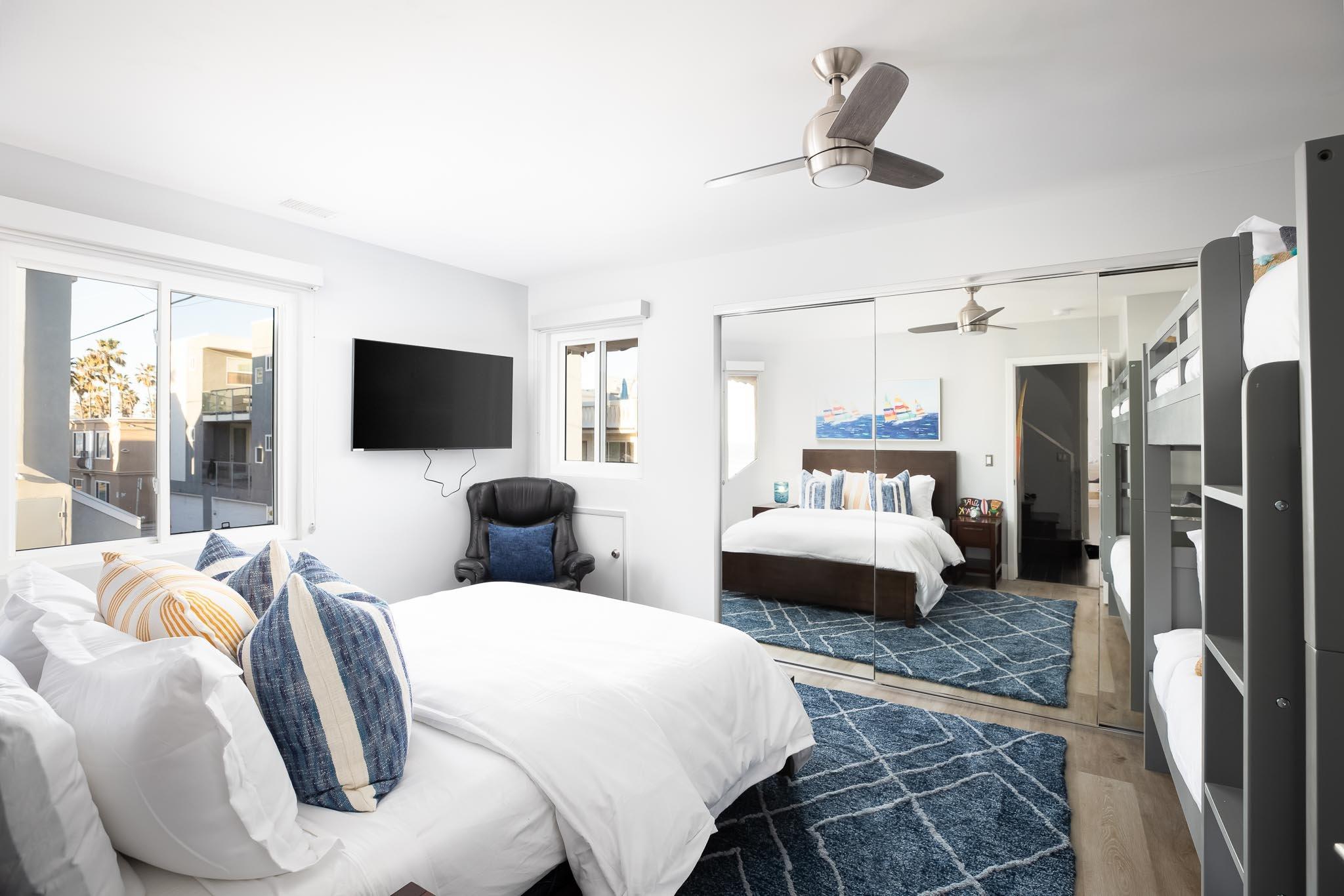 HIGHLIGHTS-Oceanfront-Panoramic Ocean Views-Fast Wifi-Fireplace-Garage-AC-Sonos Surround Sound In the Living Room-Walking Distance To Belmont Amusement ParkDESCRIPTIONWelcome to the perfect San Diego beach vacation with this oceanfront Mission Beach rental, offering unparalleled panoramic views of the beach, ocean and sunsets. This stunning property is located on the second and third levels, allowing you to maximize the amazing views while still maintaining some privacy from the lively oceanfront boardwalk in front of the home.The second floor is the entry level and welcomes you with an inviting open-concept layout that includes the living room, dining area, and kitchen, all with panoramic ocean views. This level also features a guest bedroom with a luscious queen bed and twin over twin bunk and one full bathroom, perfect for accommodating your guests. Step out onto the spacious oceanfront deck, complete with a dining bar and grill, where you can dine al-fresco while soaking up the beautiful scenery.The upper level, accessible via a staircase, houses the primary suite and second guest room. The primary suite boasts a king bed, a luxurious en suite bathroom, and a private deck with outdoor seating, offering you a serene retreat with a stunning ocean view. The second guest bedroom has a cozy queen bed, complete with en suite.This condo comes equipped with air conditioning, a private washer/dryer, beach gear, free high-speed WiFi with an Eero Mesh system, a gas fireplace, a custom built-in TV with surround sound, and access to a shared ground-floor patio space with a fire-pit.In addition to enjoying the beautiful property, you'll love exploring the sights and sounds of Mission Beach, including the five-mile-long boardwalk and the excitement of Belmont Park, a beachfront amusement park that's home to the historic Giant Dipper Roller Coaster. You're also just a short drive away from other sources of entertainment, such as the San Diego Zoo and SeaWorld, ensuring there's something for everyone.Book now and come and enjoy a delightful stay at this beach home!SUITABILITY-25+ age limit or family groups-Exterior security camera and decibel meters-ID and credit card verification required-Stairs to access home-No Smoking anywhere on property, including exterior areas-No events or over occupancy at any point during stay.-Due to homeowner allergies, no pets allowedSLEEPING ACCOMMODATIONS (sleeps 8, 6-7 adults recommended)-1 King (3rd floor, sleeps 2)-1 Queen (3rd floor, sleeps 2)-1 Queen & 2 Twin Bunk (2nd floor, sleeps 4)THINGS TO KNOW-Guests must sign a separate e-sign agreement with important terms and conditions and ID and credit card verification is required to complete the booking process.-Basic Beach gear provided (beach chairs, beach towels).-Top Twin bunk is meant for children only-Exterior only window washing occurs every Monday, usually mid-morning. -San Diego Airport flight path runs over South Mission Bay. Airplane noise may be heard; however, departing flights are not permitted between 11:30pm-6:30am. The home is totally worth it!ATTENTIONThis home is located in a high-density neighborhood and is only suitable for quieter groups. There is a no tolerance policy for excessive noise, occupancy, illegal substances, parties, or smoking. Failure to abide by these policies may lead to immediate eviction without refund. Please ensure you are comfortable with these terms before booking.PARKING2 Car Garage. There is limited additional street parking or parking lots a 4-5 block walk. Please be sure to follow all City posted signage if parking on the street. Parking Dimensions:140W x 235D x 83HREGISTRATION: STR-01418L TOT-607781