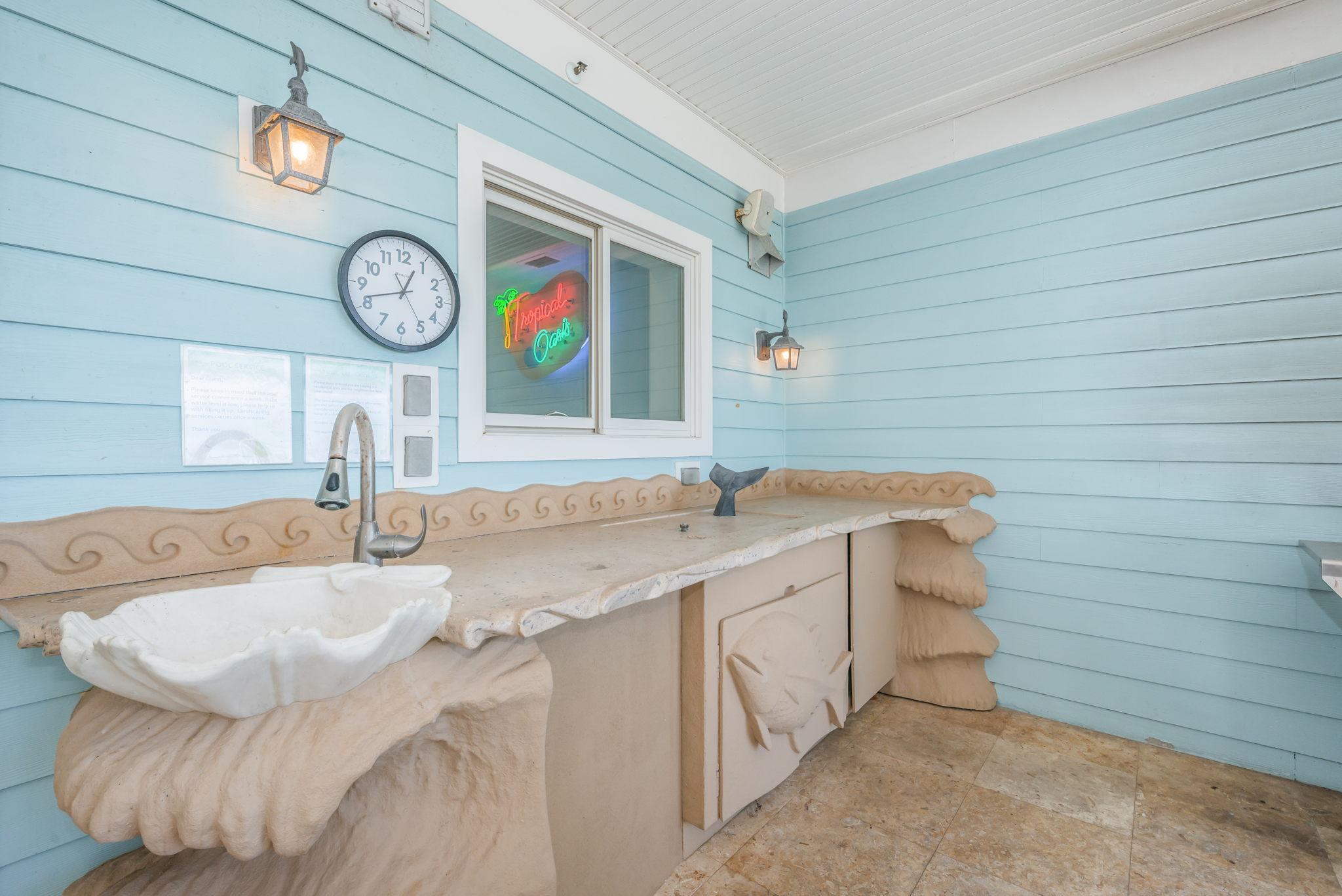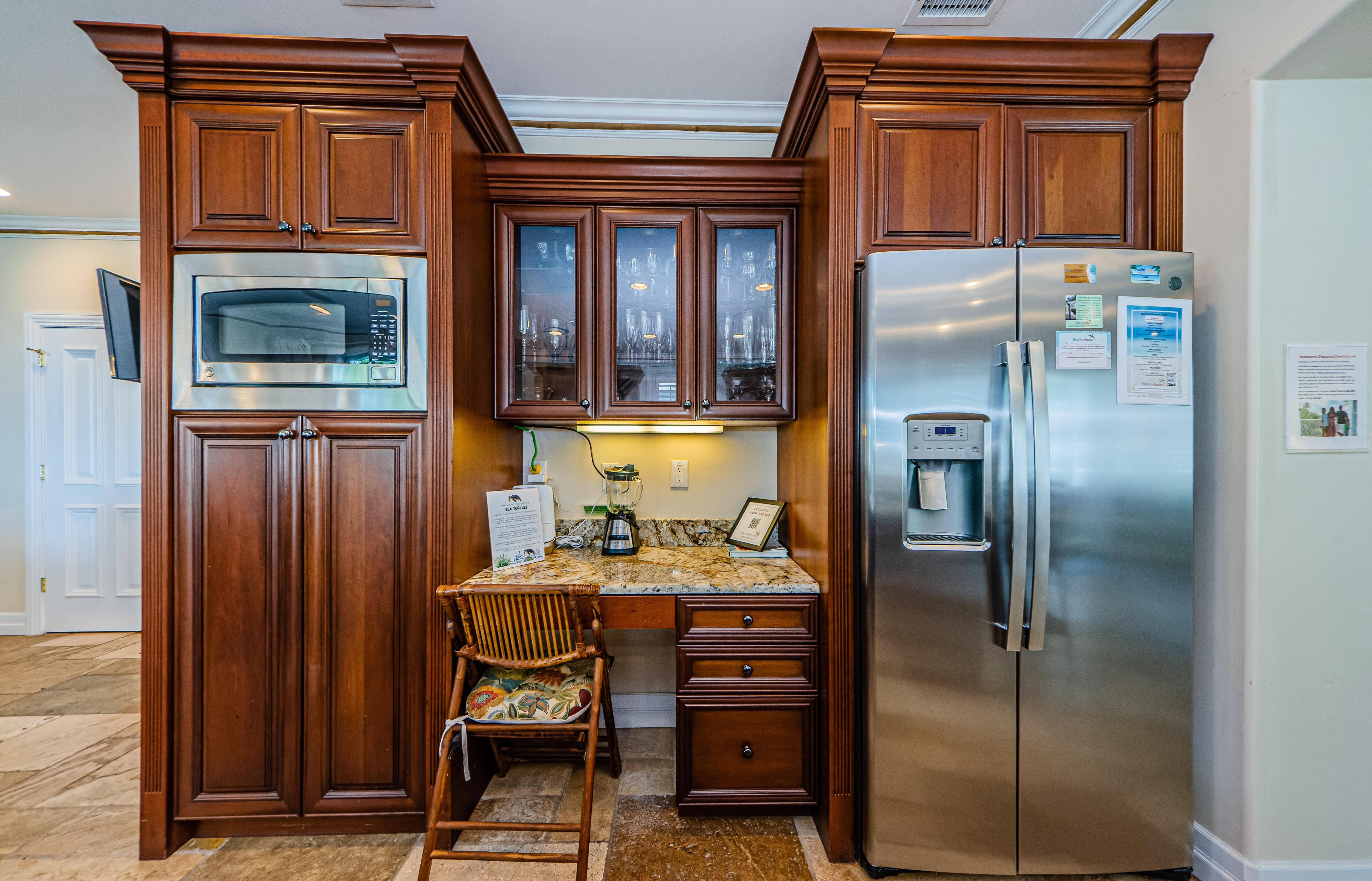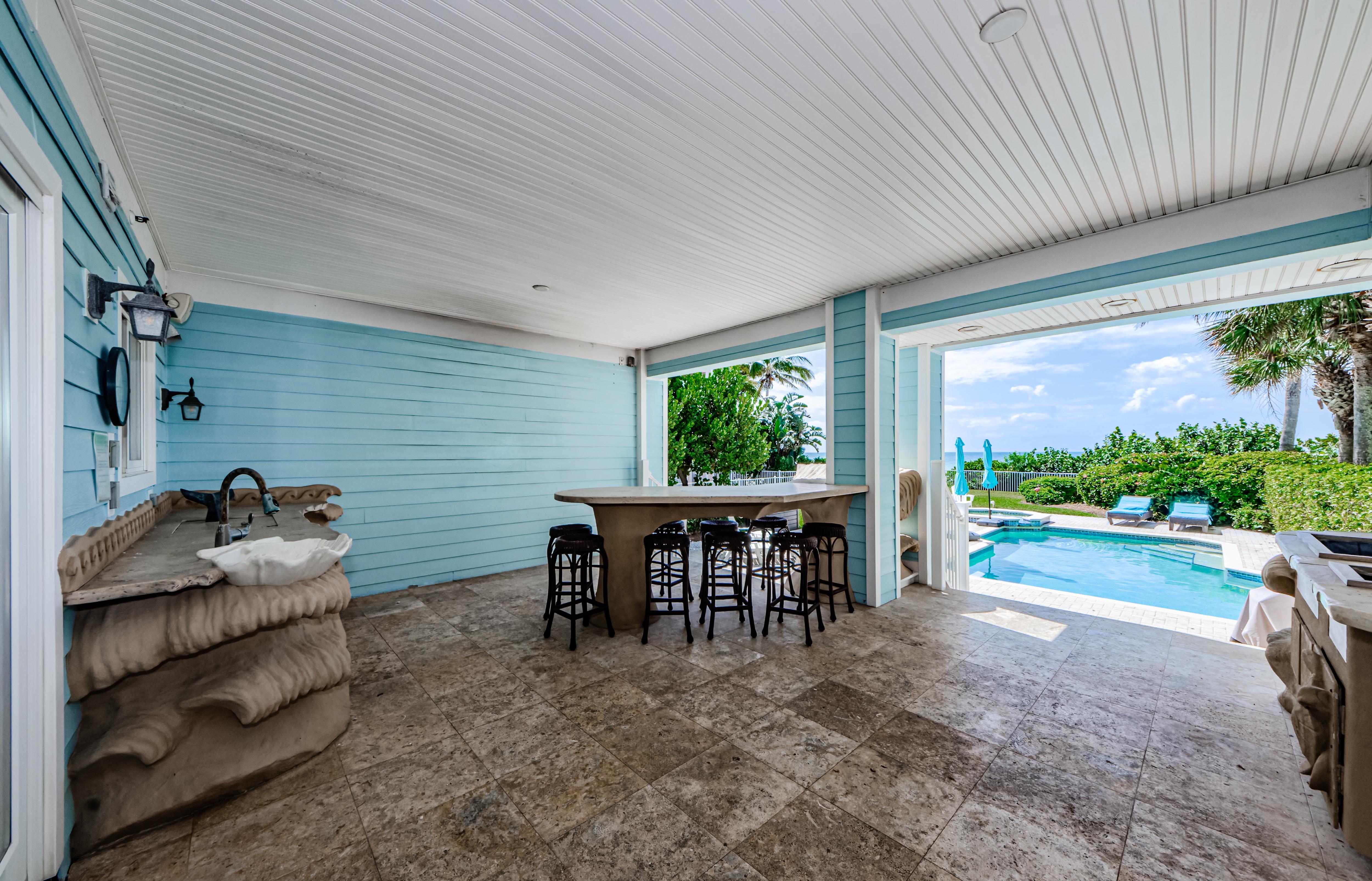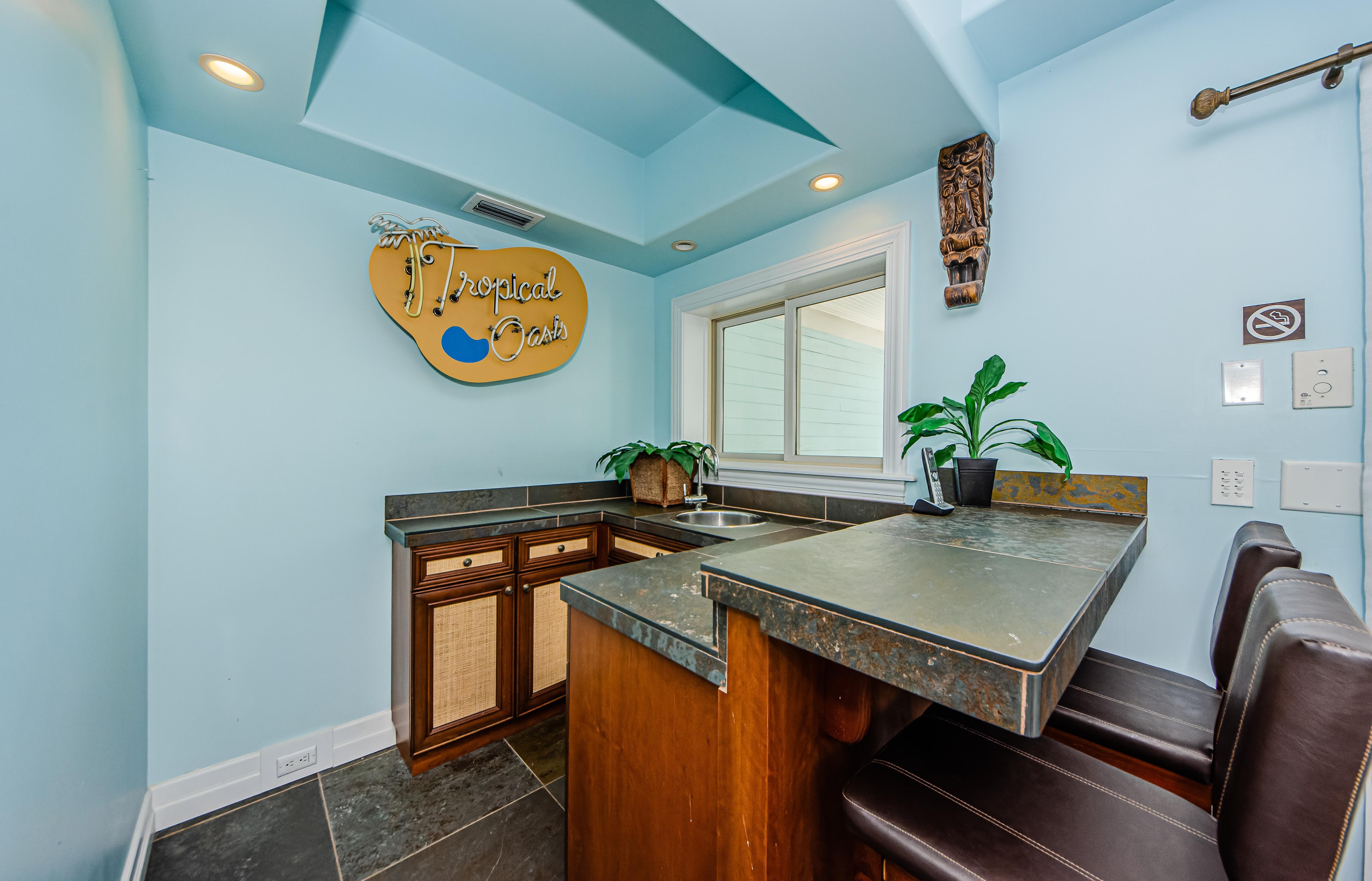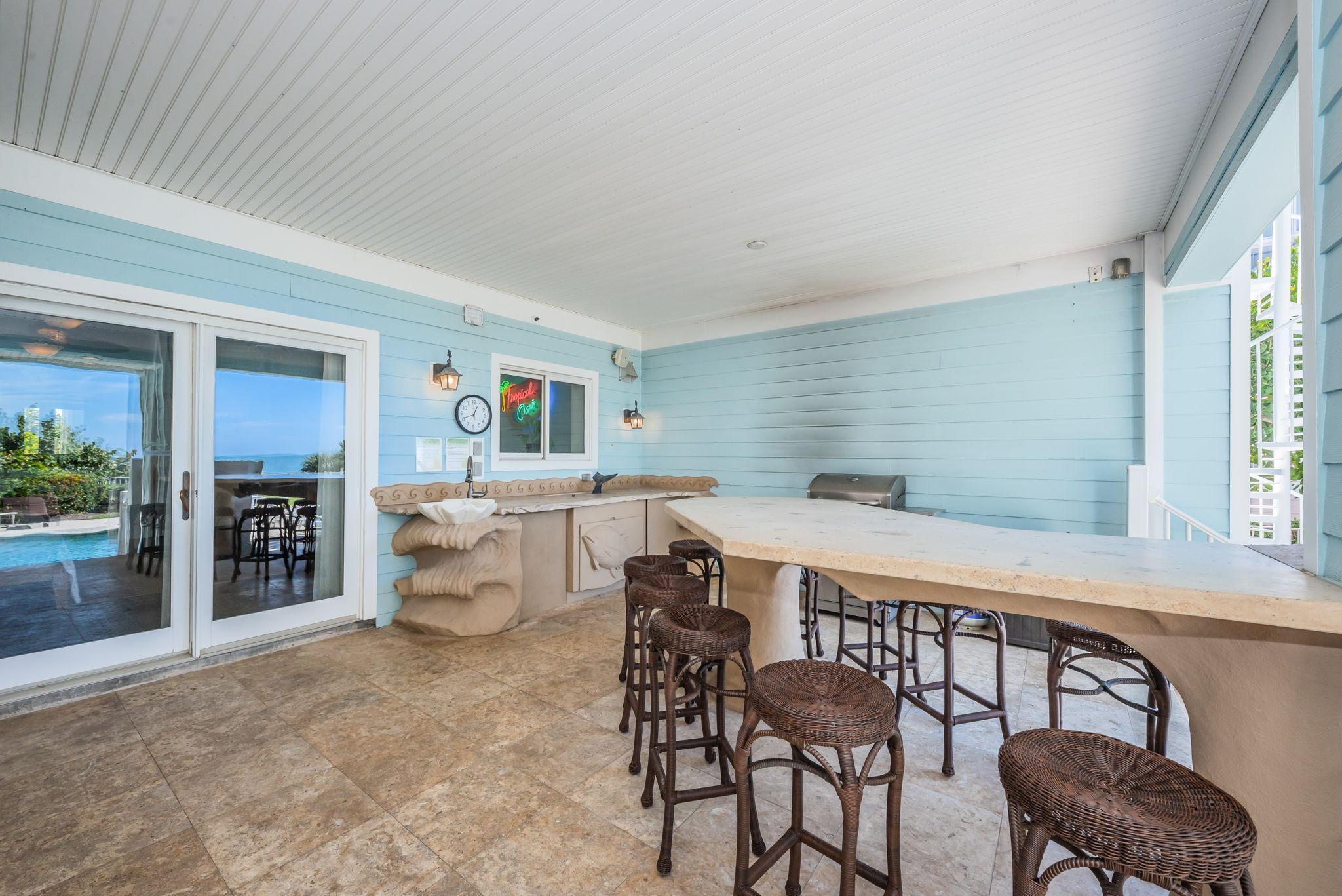 On the first floor, you'll find a Master bedroom with a King bed, wet bar, desk and chair, 60" TV, and a full bathroom. Sliding doors lead to the private pool and your own BBQ and outdoor dining area.