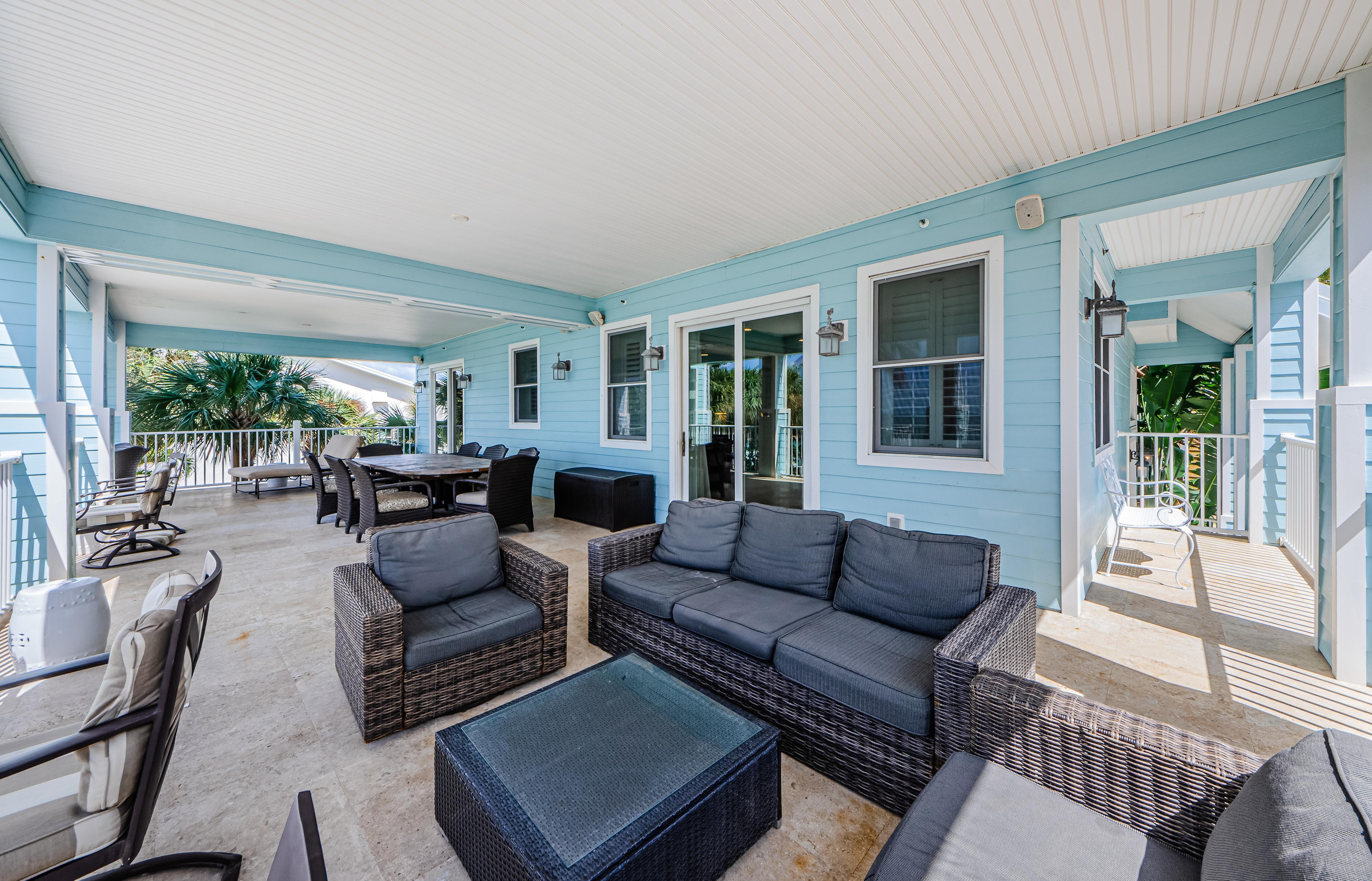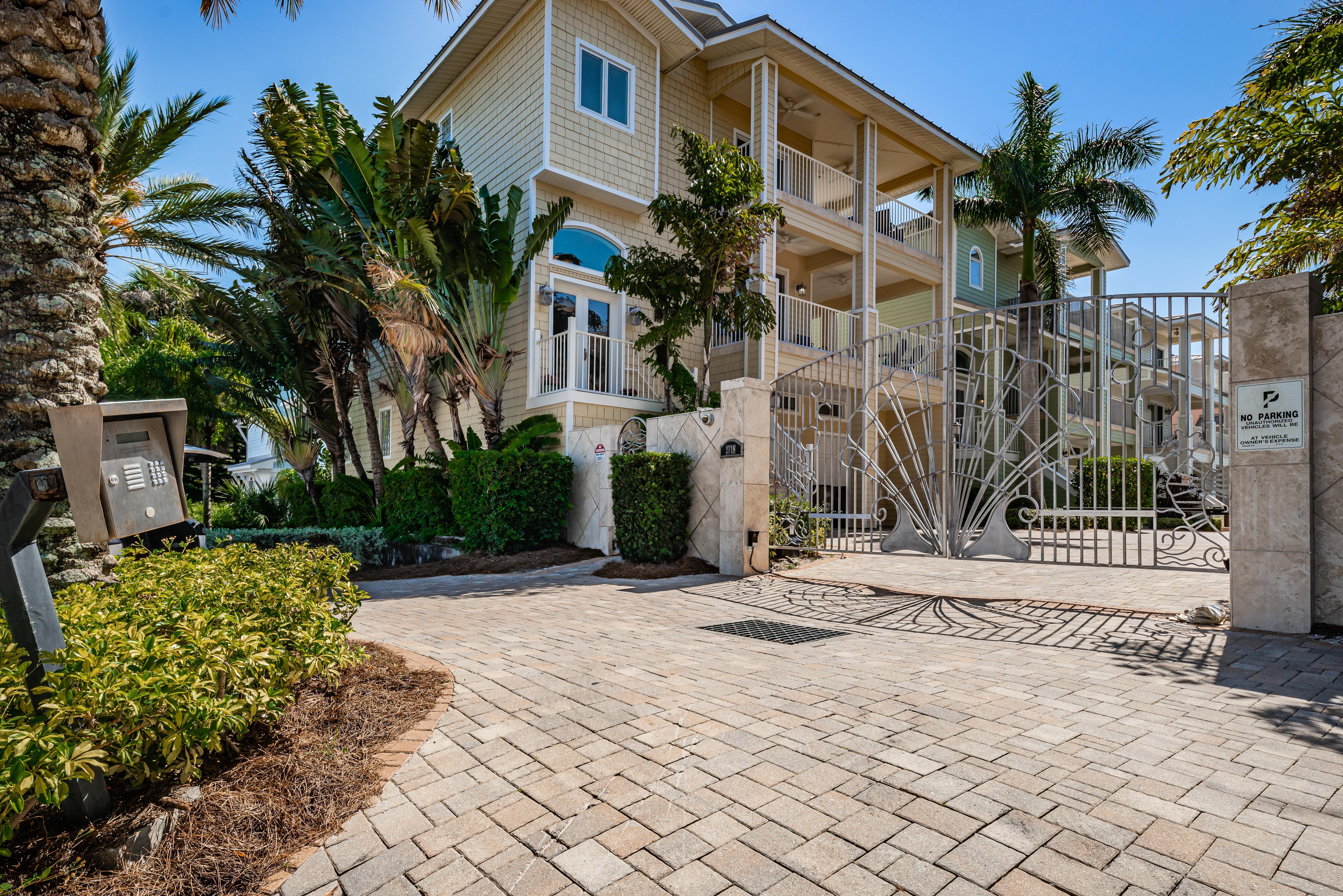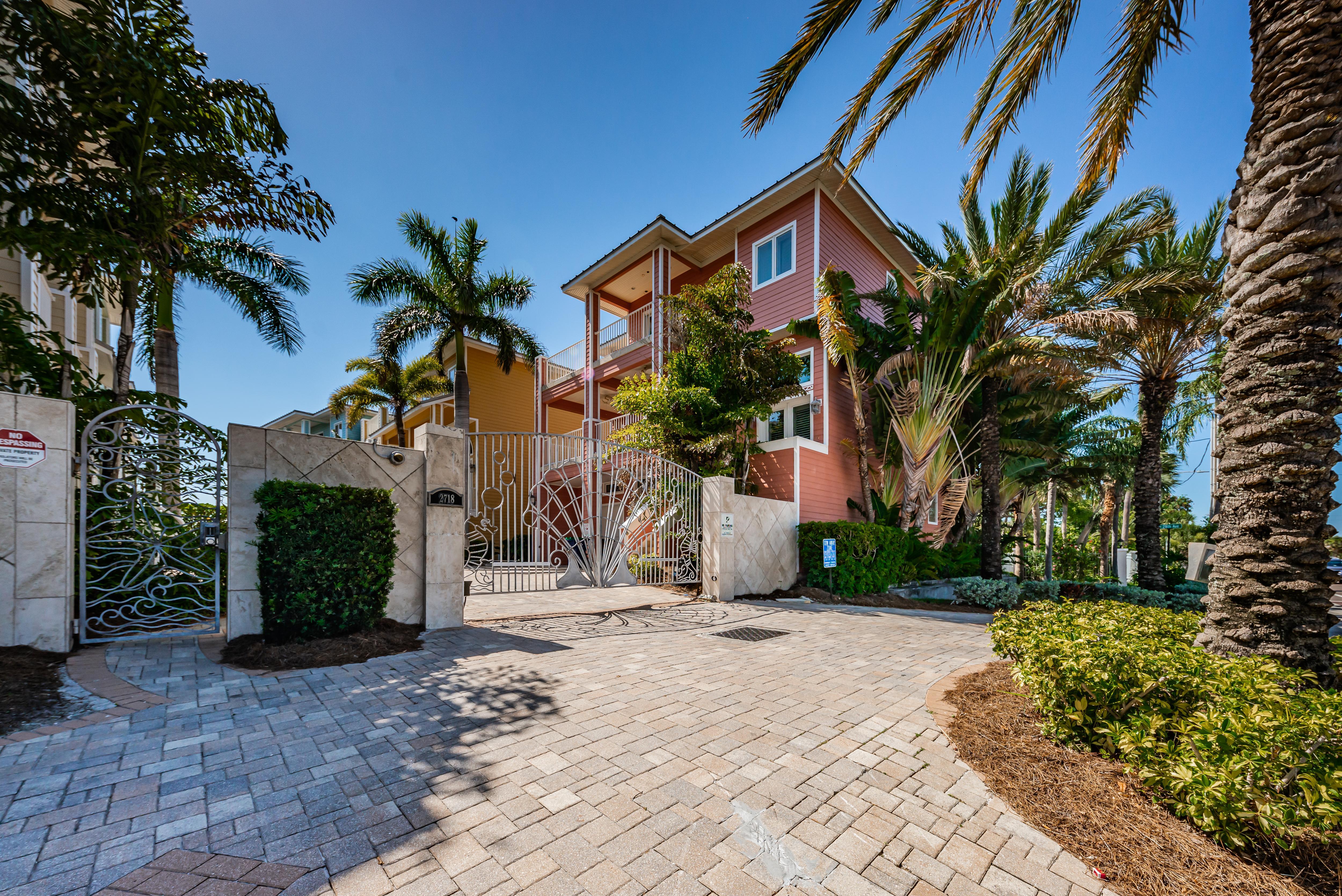 The Exclusive Aqua Escape is located in a gated community. It boasts a distinctive Key West style of a bright-colored cottage with multi-story wrap around verandahs. Windows throughout the three floors provide endless water views. Expansive balconies offer the perfect space for gathering with loved ones and enjoying the most spectacular sunsets. From the pristine landscaping and outdoor area to the comfortable spaces inside, you're sure to enjoy every part of this house during your vacation.