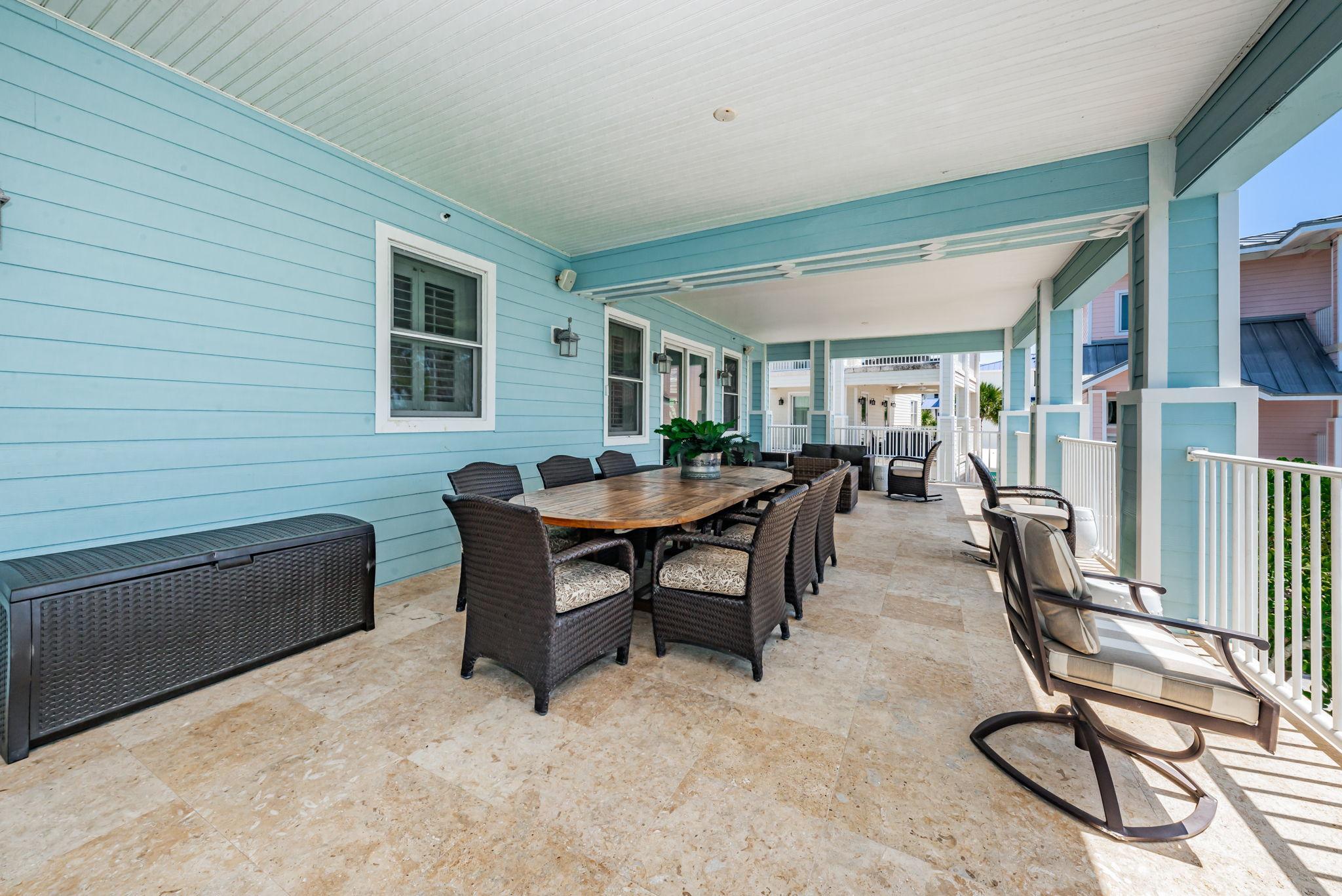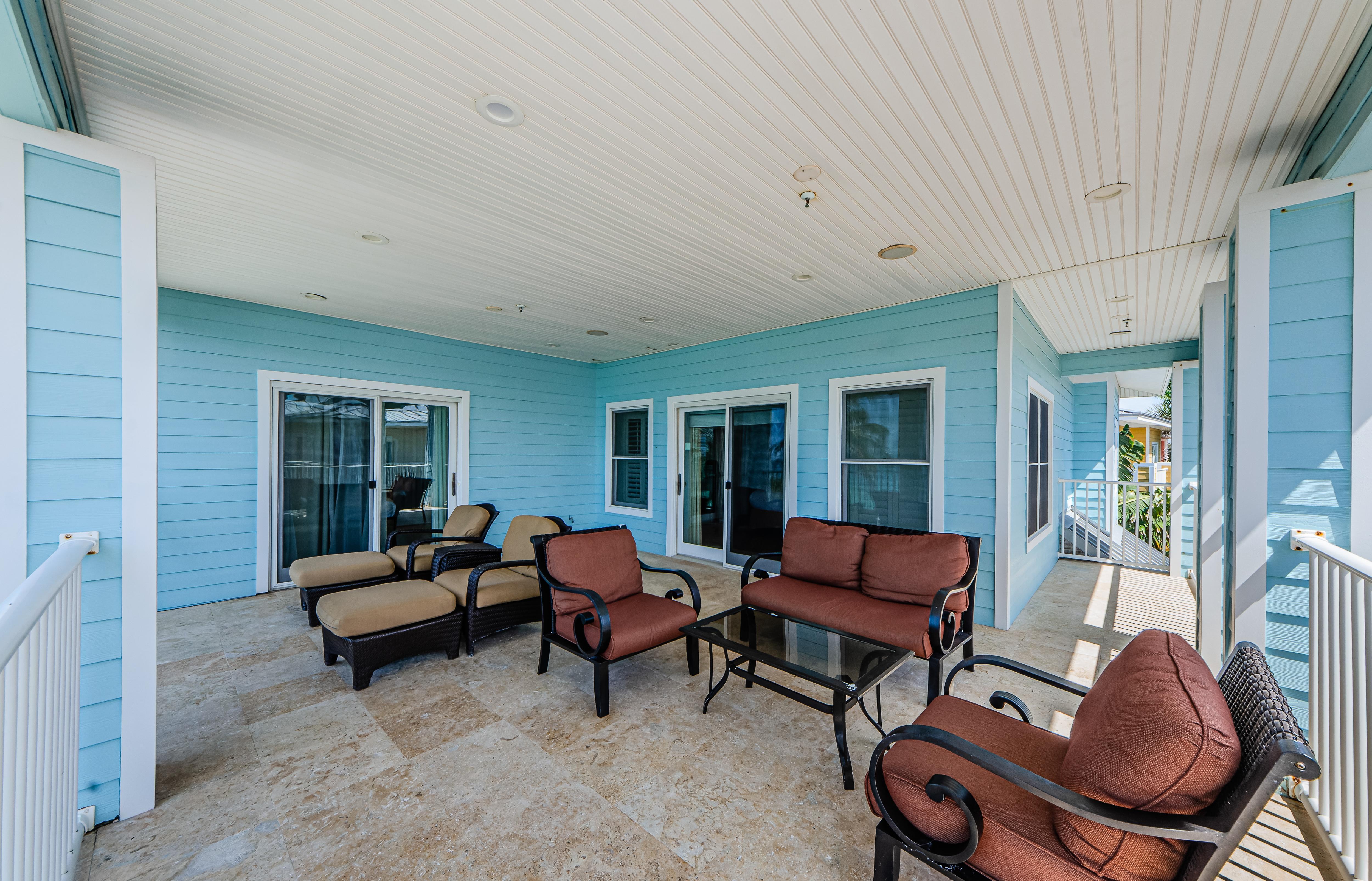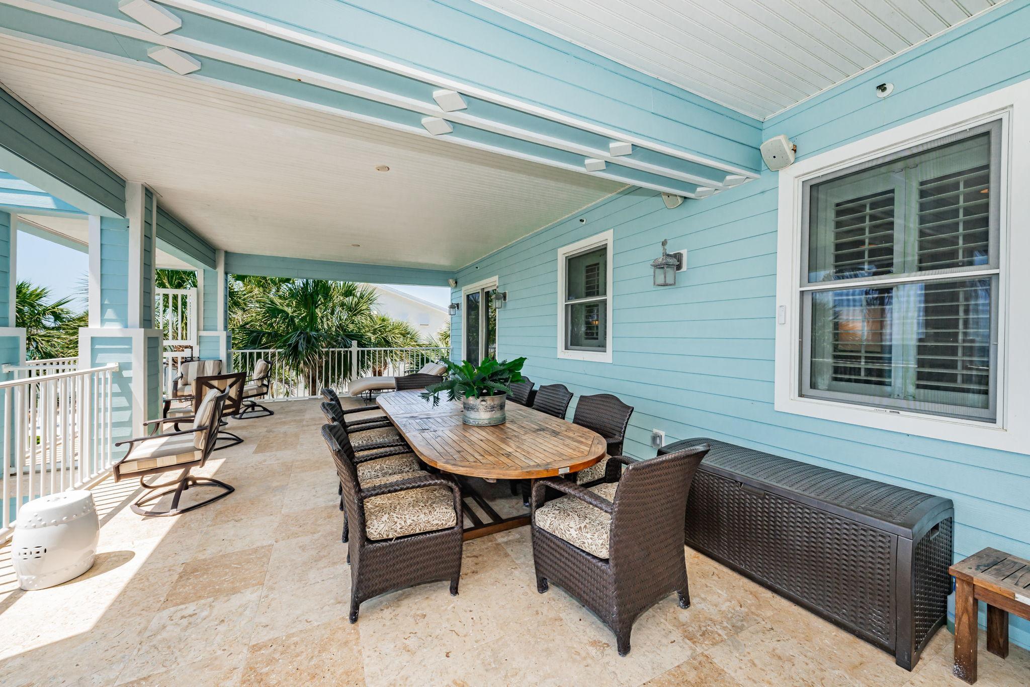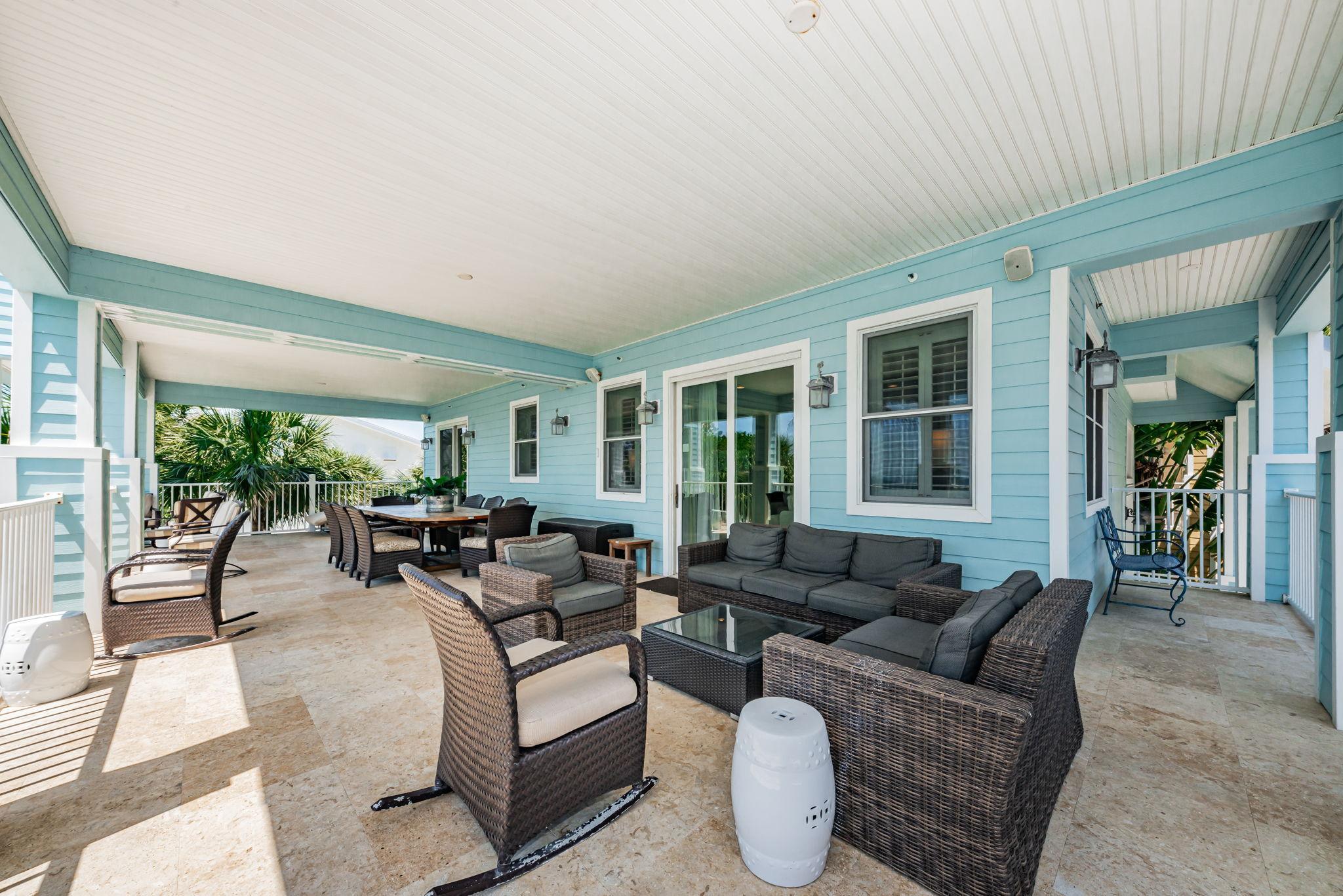 The Exclusive Aqua Escape is located in a gated community. It boasts a distinctive Key West style of a bright-colored cottage with multi-story wrap around verandahs. Windows throughout the three floors provide endless water views. Expansive balconies offer the perfect space for gathering with loved ones and enjoying the most spectacular sunsets. From the pristine landscaping and outdoor area to the comfortable spaces inside, you're sure to enjoy every part of this house during your vacation.