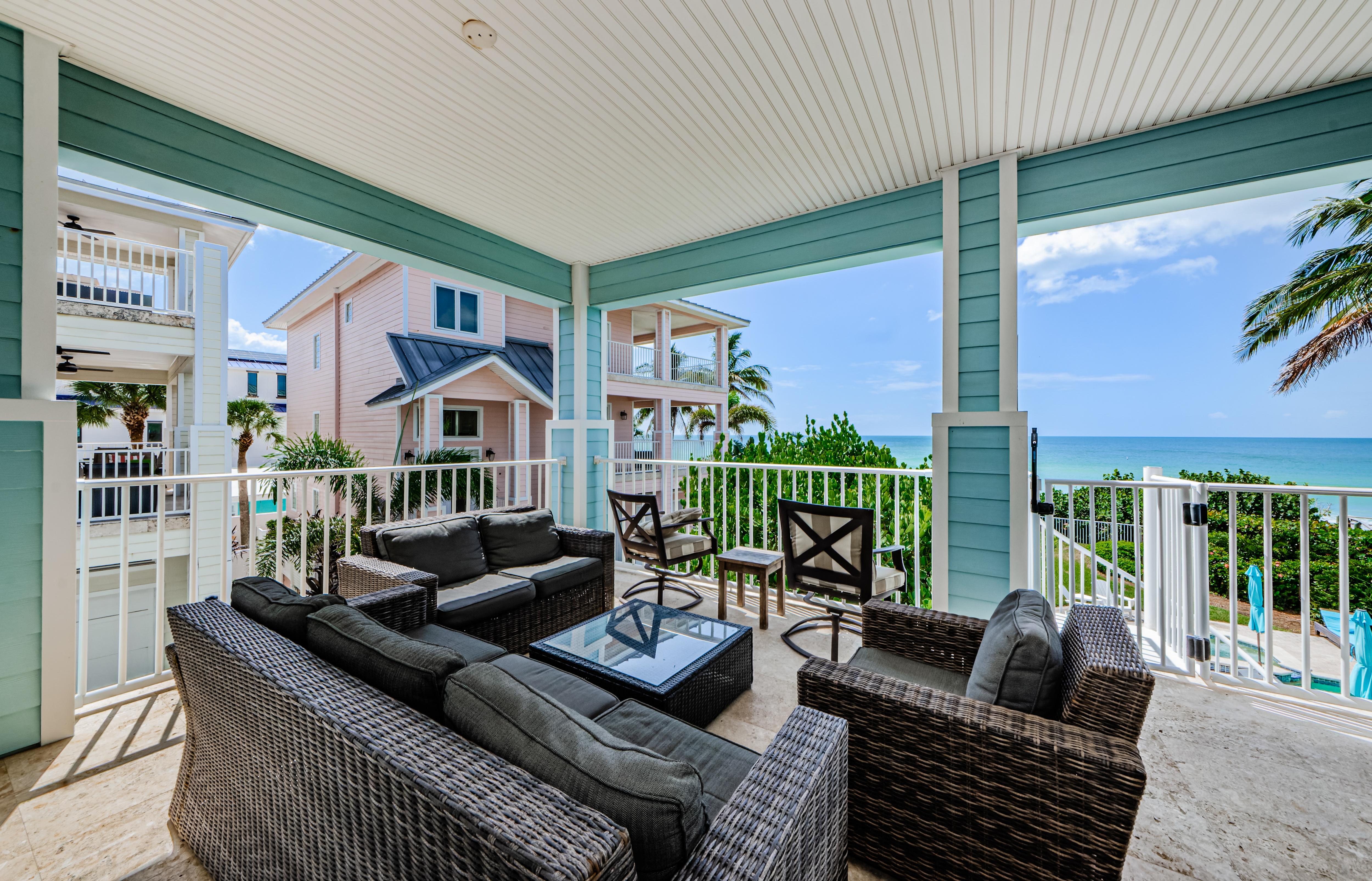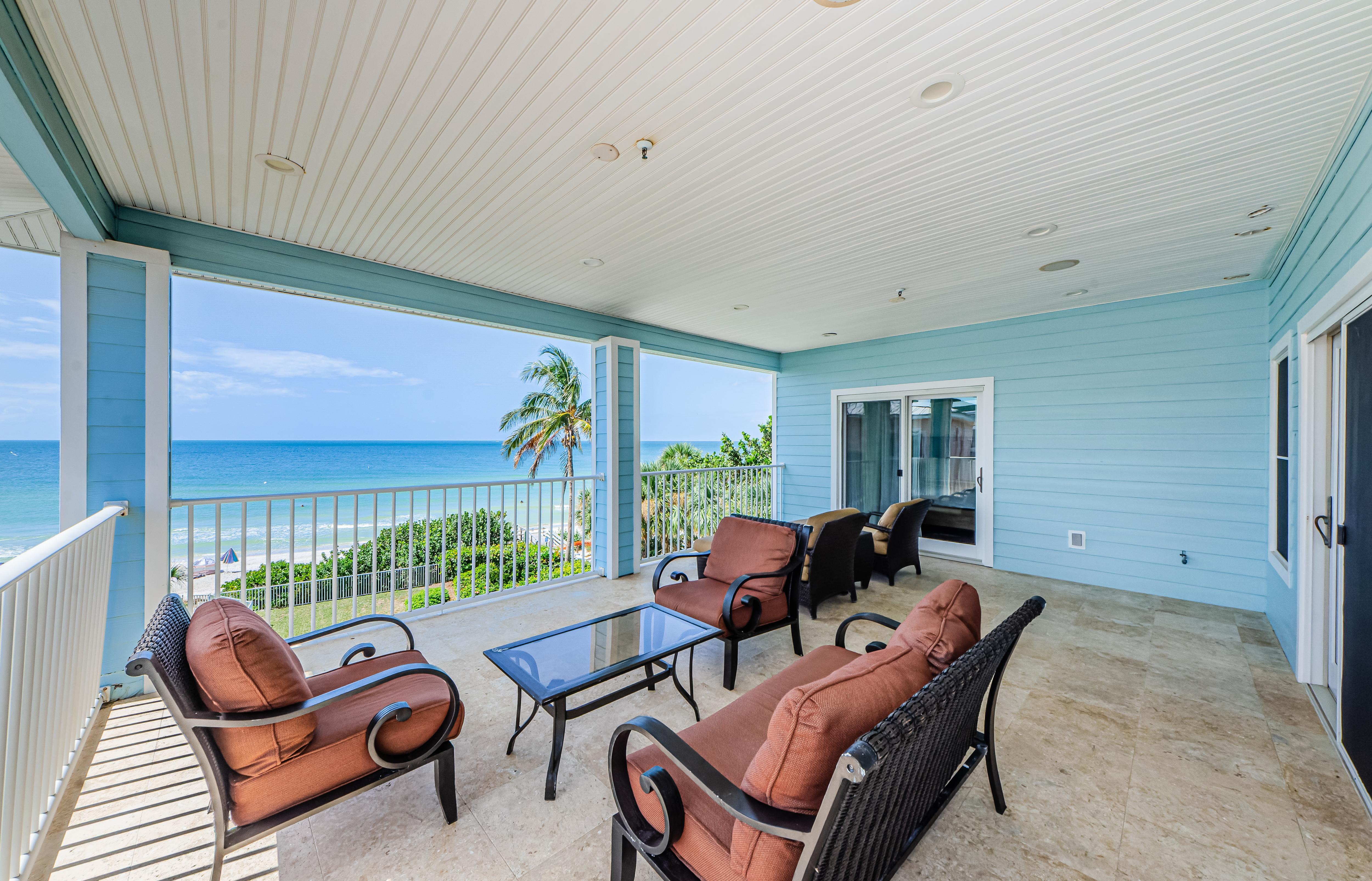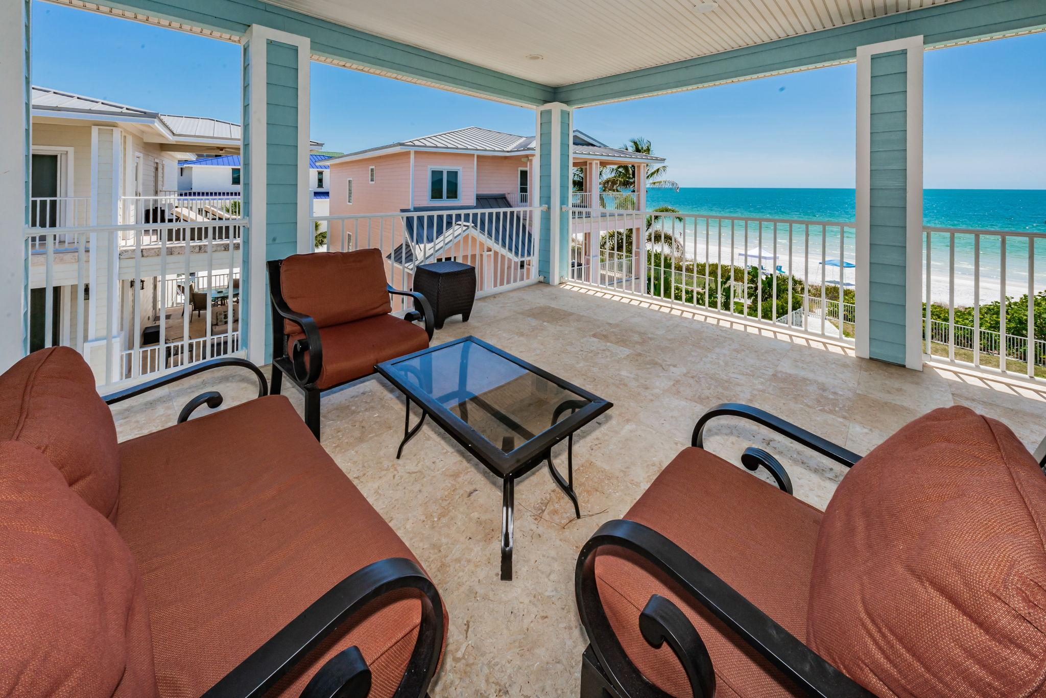 This 3-story house is perfect for relaxing with friends and family. Balconies are great for outdoor living; they are almost as wide and long as the house itself and have amazing Gulf views. If you're looking to escape everyday life in style and sophistication, look no further than this beachfront paradise.
