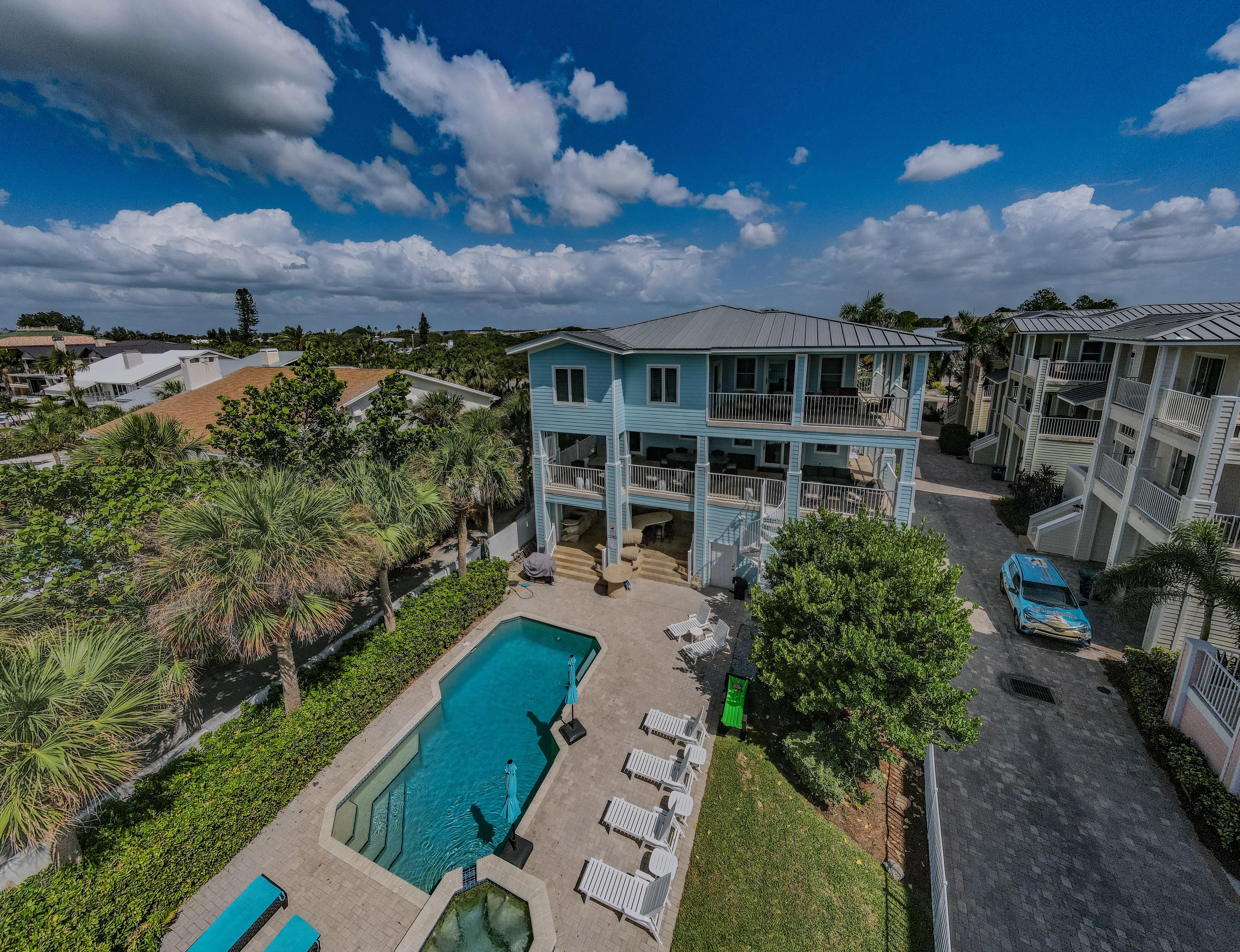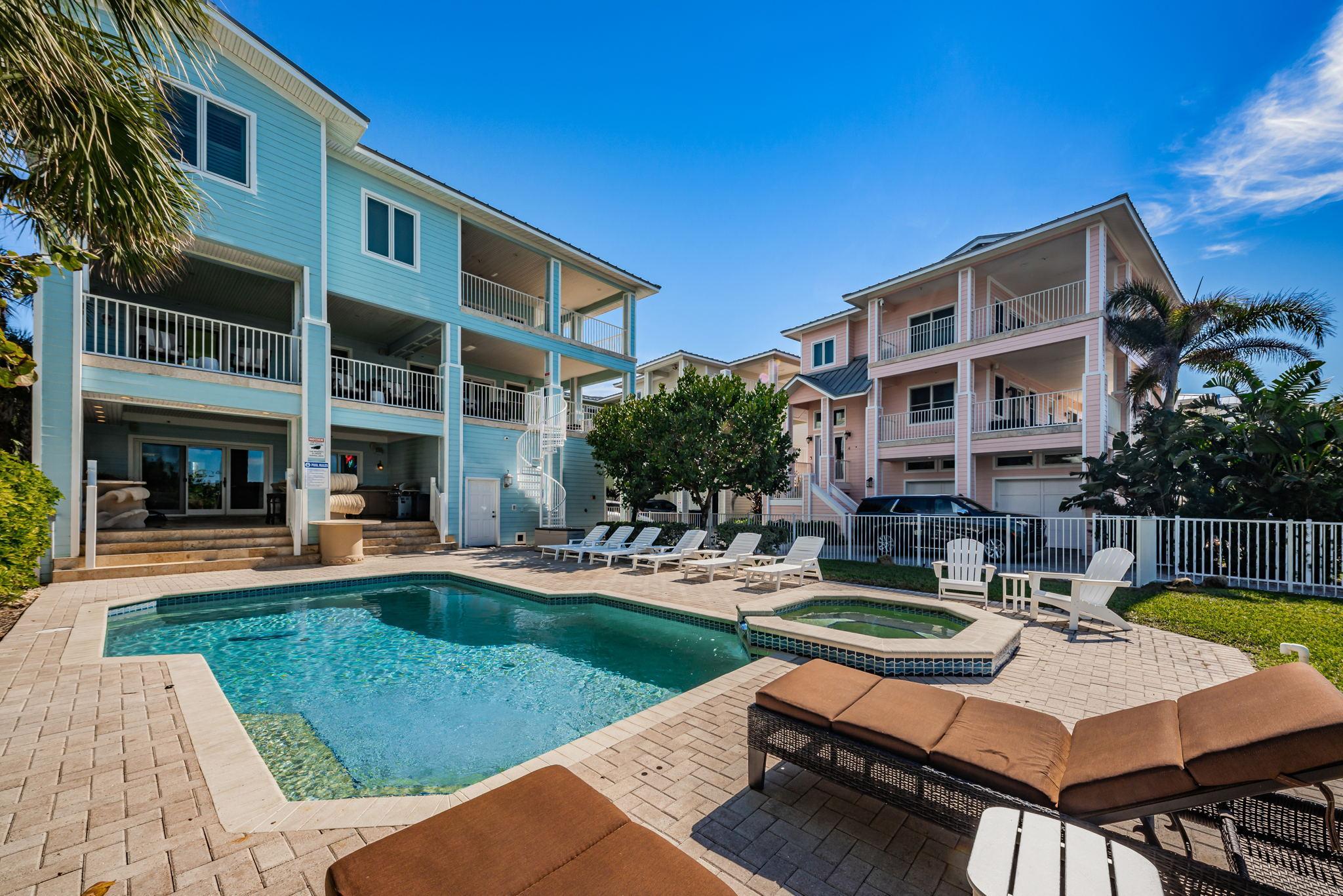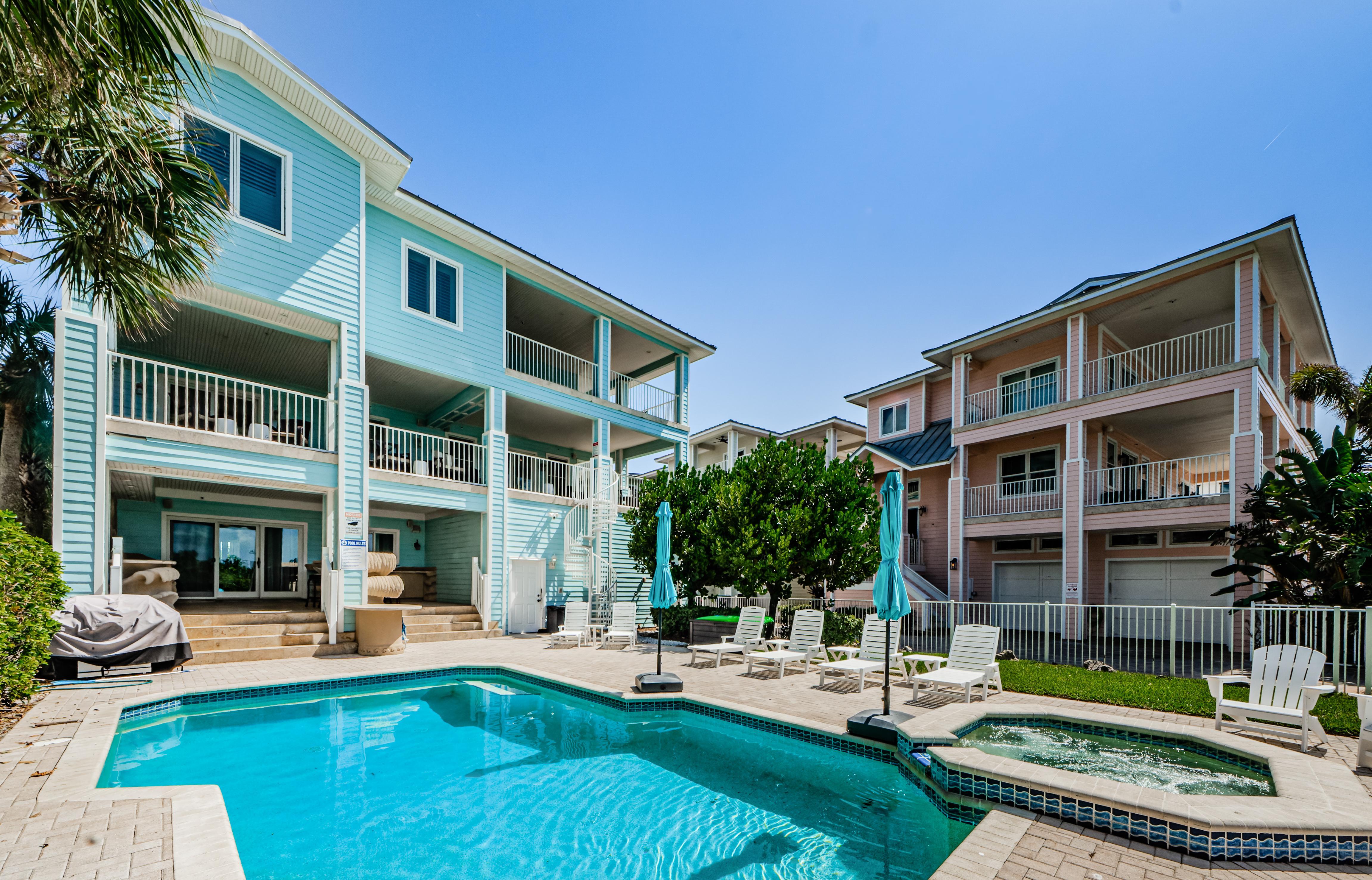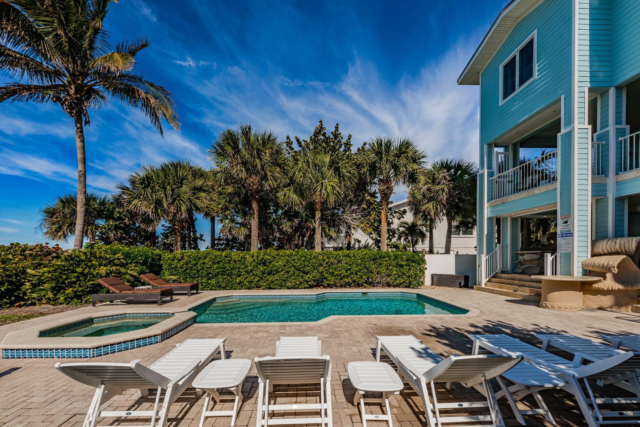 Exclusive Aqua Escape is a direct beachfront home on the Sand Key barrier island only 8 miles away from Clearwater, FL that's rated #1 beach on the East Coast of the U.S. This exclusive property boasts a private heated pool and offers captivating Gulf views from three balconies. It's the same gorgeous turquoise water beach as Clearwater but not crowded. Facing the beach, the house features a private fenced yard and a heated pool. The beach has "white sugar" sand and clear and warm Gulf waters with low waves. Restaurants, bars, and a shop for renting paddleboards or bicycles are within a short walking distance. The home is also within 2 hours’ drive to Orlando Disney Parks and Universal Studios, if you wanted to make it a day trip. Other destinations around the house include Treasure Island, St. Petersburg boasting The Dali Museum and other attractions, and Tampa. Within a 2-minute walk from the house, there is a park with tennis, pickleball, and basketball courts and a playground.
