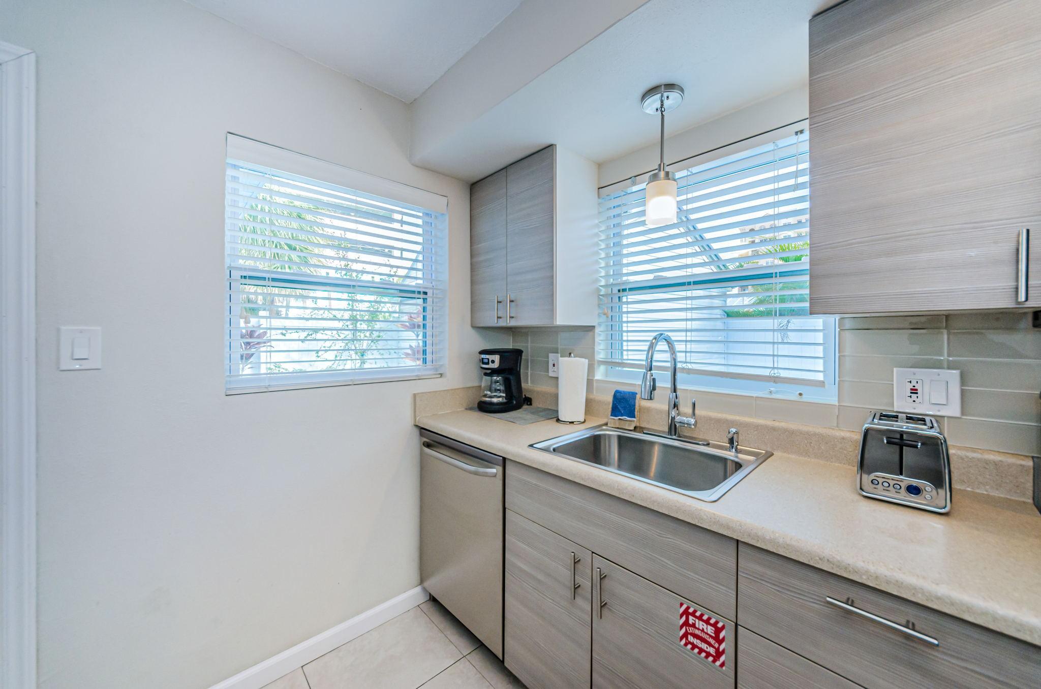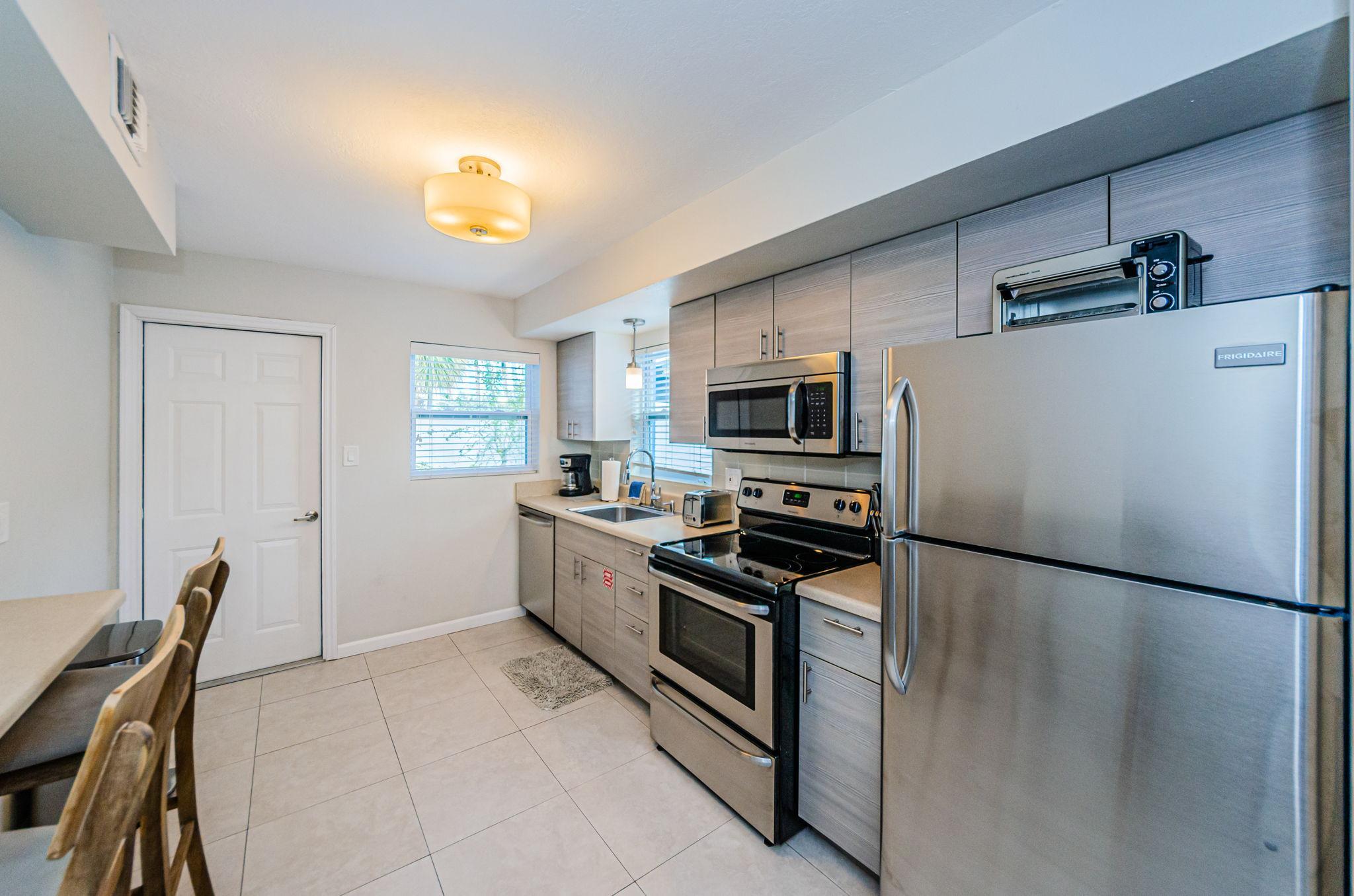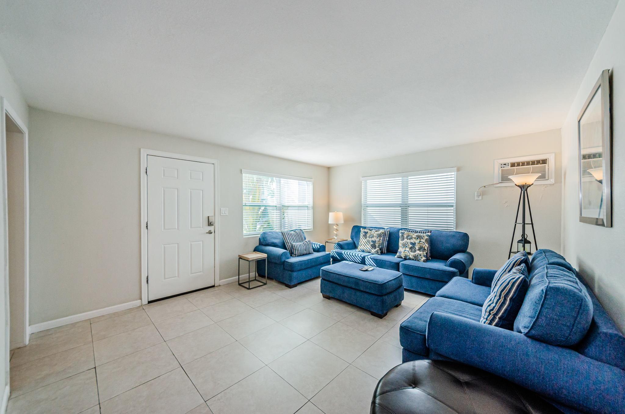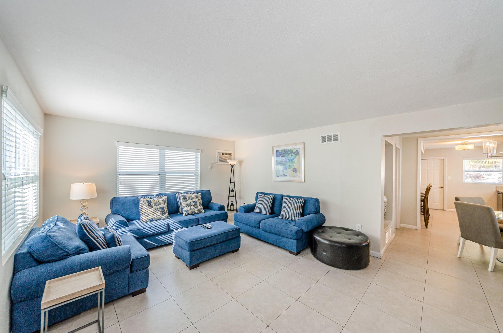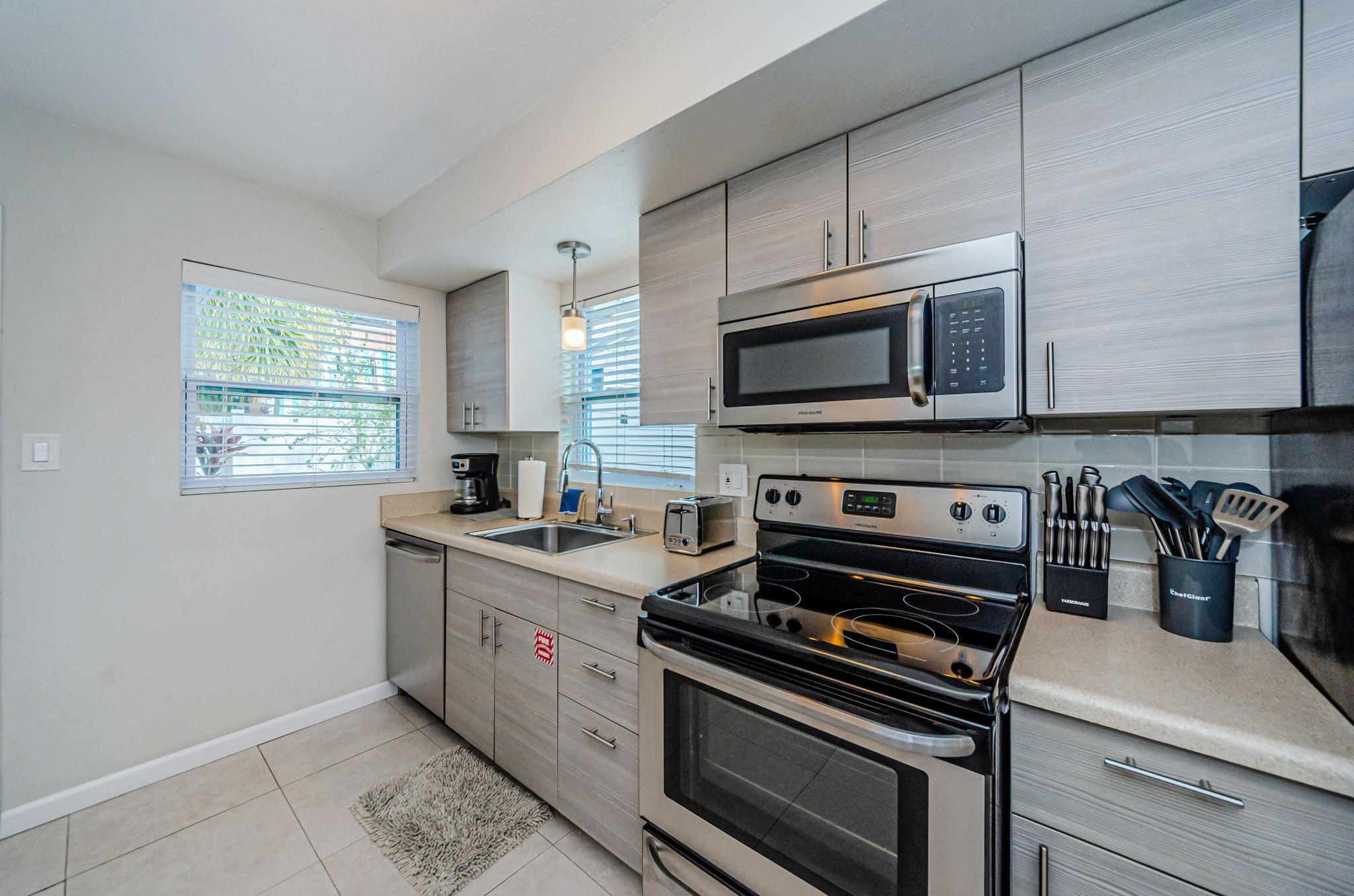 This newly renovated three-bedroom, two-bathroom retreat boasts a full kitchen stocked with all the essentials and stainless steel appliances, and table seating for 5 guests and an elevated bar area that hosts seating for another 3 guests. In the evenings, kick back, relax, and watch TV in the comfortable living area or on the outside patio complete with a BBQ grill.