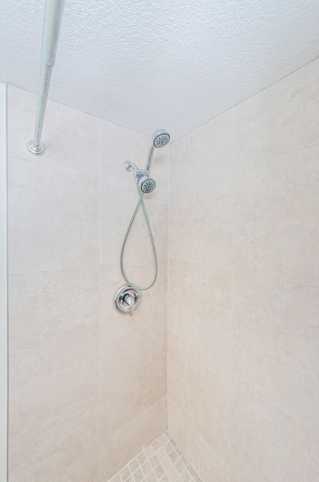 The primary bedroom on the 1st floor features a King bed, the other 2 bedrooms are on the 2nd floor and each have a Queen bed. In the Living room is a Sleeper sofa. The primary bathroom has a shower and the second bathroom on the 2nd floor has a shower.