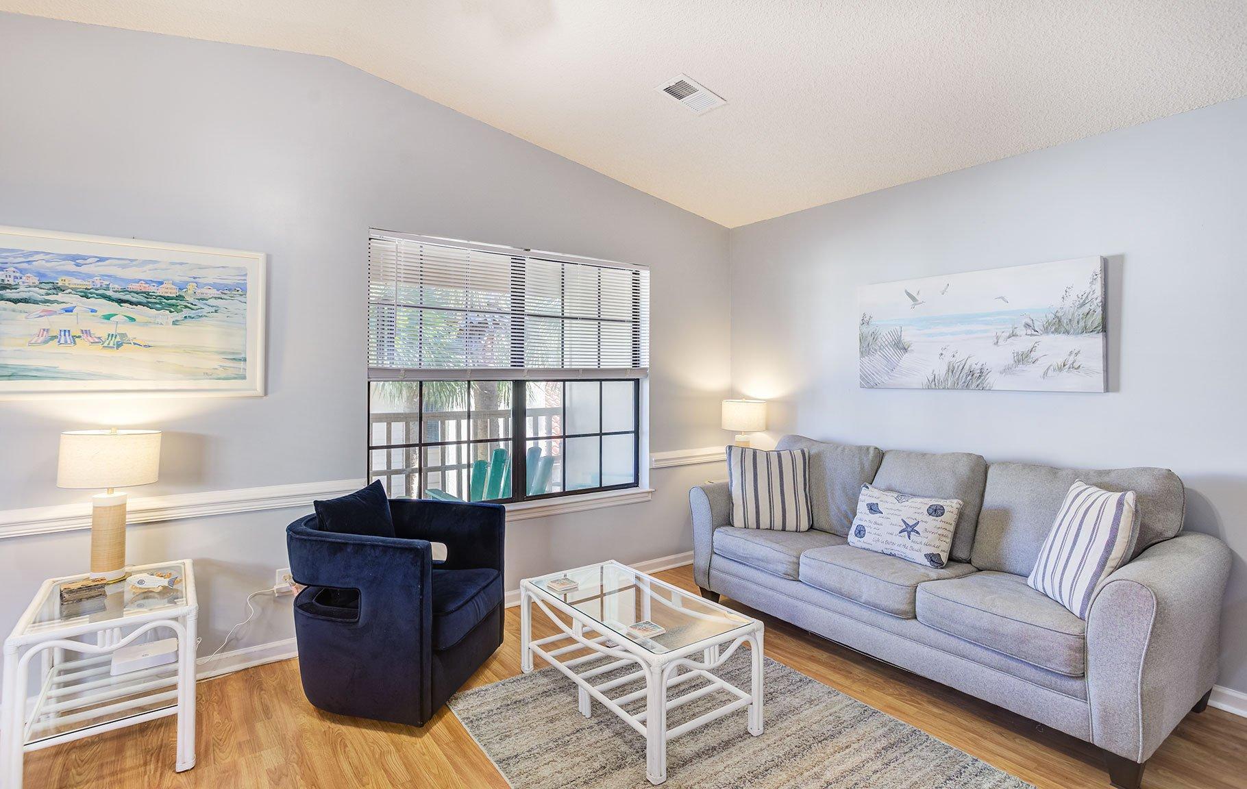 The balcony has Adirondack chairs to relax and enjoy the views and your morning coffee. The condo has a full size washer and dryer in the property to make washing those bathing suits super easy.