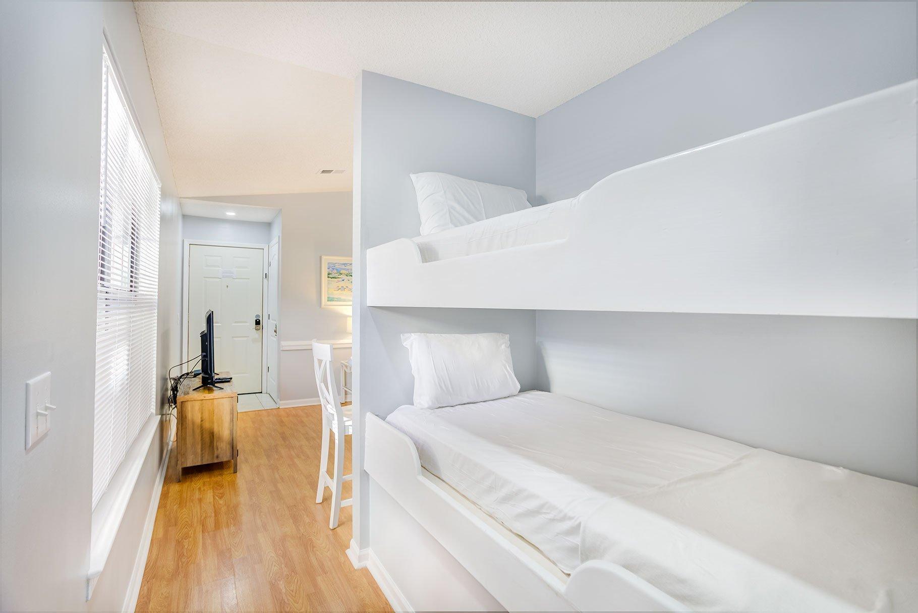 This property has everything you and your family will need to have a magical vacation. The kitchen has all new appliances and gadgets that you will ever need to make a gourmet meal or just enjoy a snack. There is a breakfast bar with seating for 3. The dining room has seating for 3 as well. The living room features a large smart flat screen TV and plenty of seating for relaxing and watching a movie as a family. There is also a queen sleeper sofa for extra sleeping options. The master bedroom has a king size bed and a full bathroom with a shower tub combination. There are twin over twin bunks in the hall for the kids to enjoy that are right off of the full bathroom.