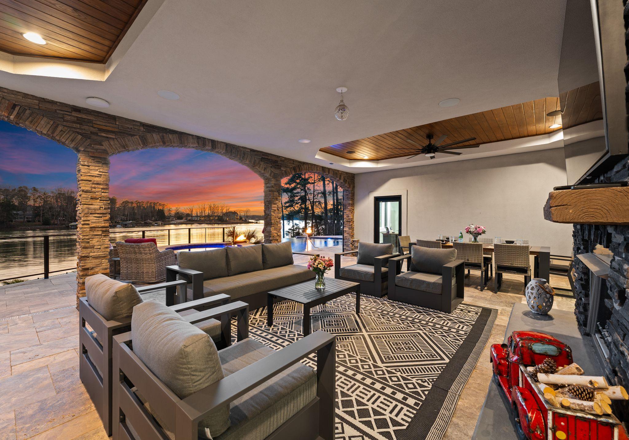 Lucent Sunset Retreat embodies sophistication, offering breathtaking sunset views over the serene waters of Lake Norman. This remarkable home spans three spacious floors, including a private apartment for added comfort and privacy. With three distinct living areas, fully equipped kitchens, and an exceptional outdoor space by the pool, this property is designed to host up to 18 guests effortlessly. Whether seeking a tranquil escape or a lively gathering, Lucent Sunset Retreat provides the perfect blend of luxury and relaxation.