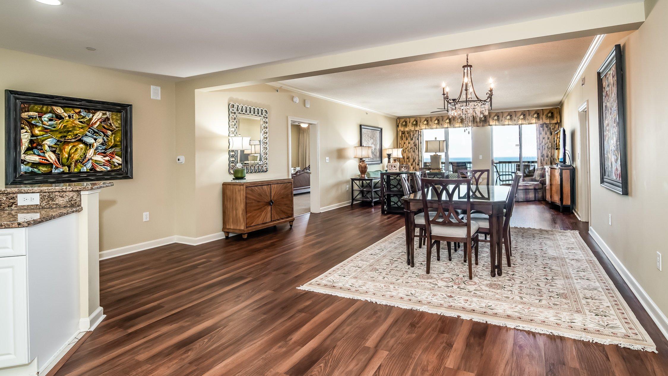 Vacation 'Better' at the Margate Tower in Carlos and Terry's Suite #804. Carlos and Terry's #804 is a privately-owned suite at the Margate Tower within the Kingston Plantation Resort in Myrtle Beach, South Carolina. Our Oceanfront 3 Bedroom / 3 Bathroom suite (2,600 sq. ft.) on the 8th floor sleeps up to 6 with 1 King Bed, 1 King Bed, and 1 Queen Bed. Other amenities include a complete kitchen, Whirlpool Bath, Bed & Bath Linens, HDTV's with TWC DVR, Free dedicated TWC turbo Internet/Wi-Fi (15Mbps), Free Parking, Full-size Washer/Dryer, and much more.
