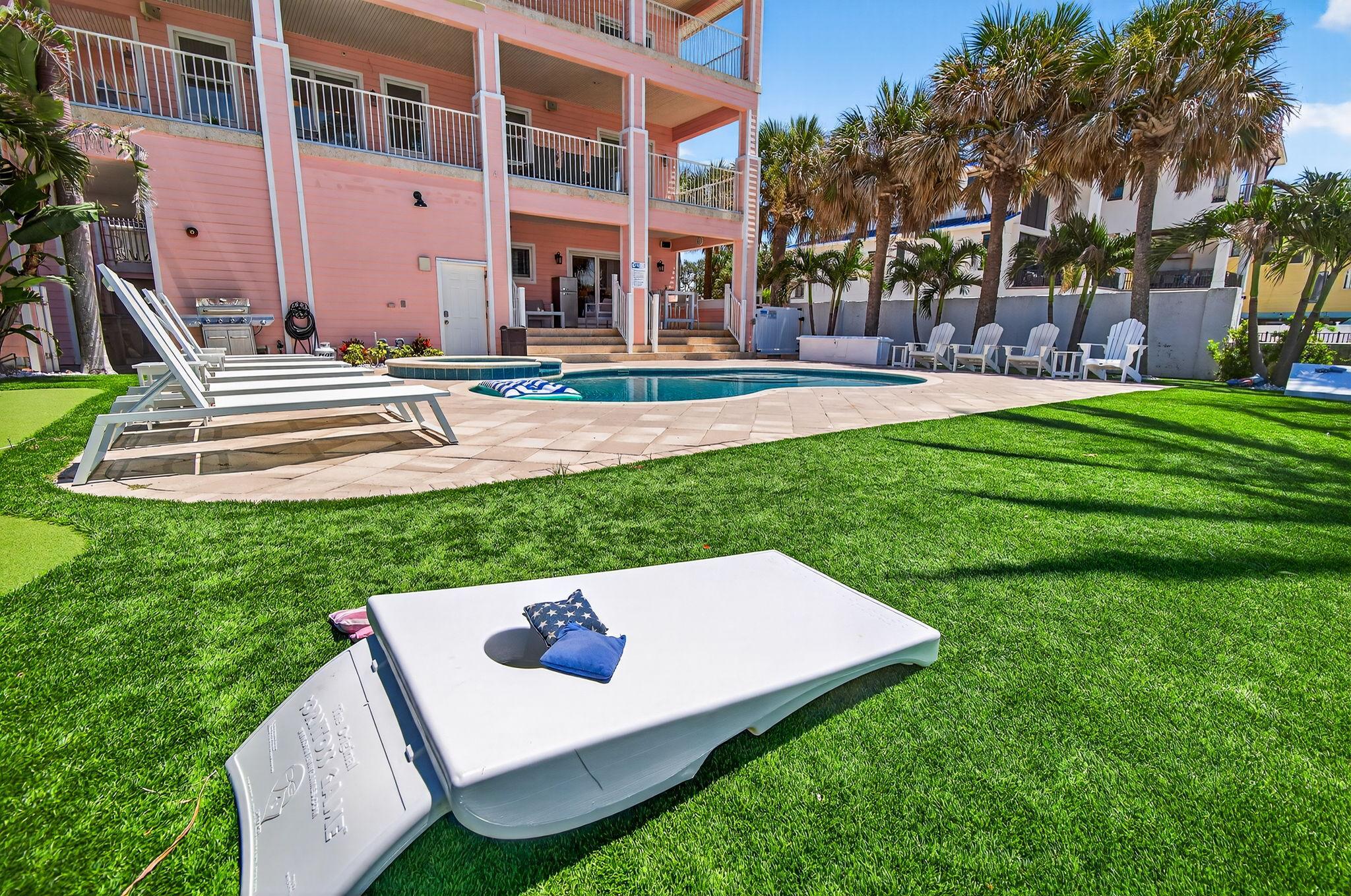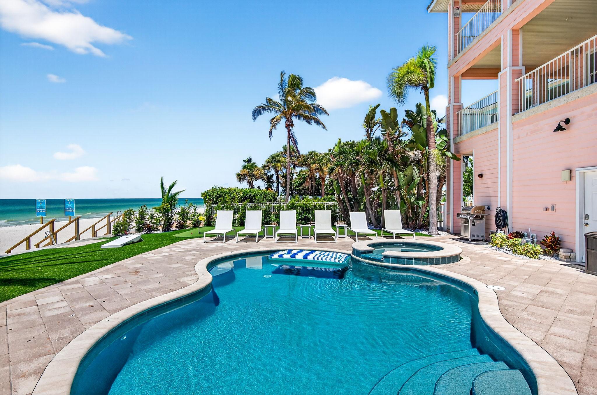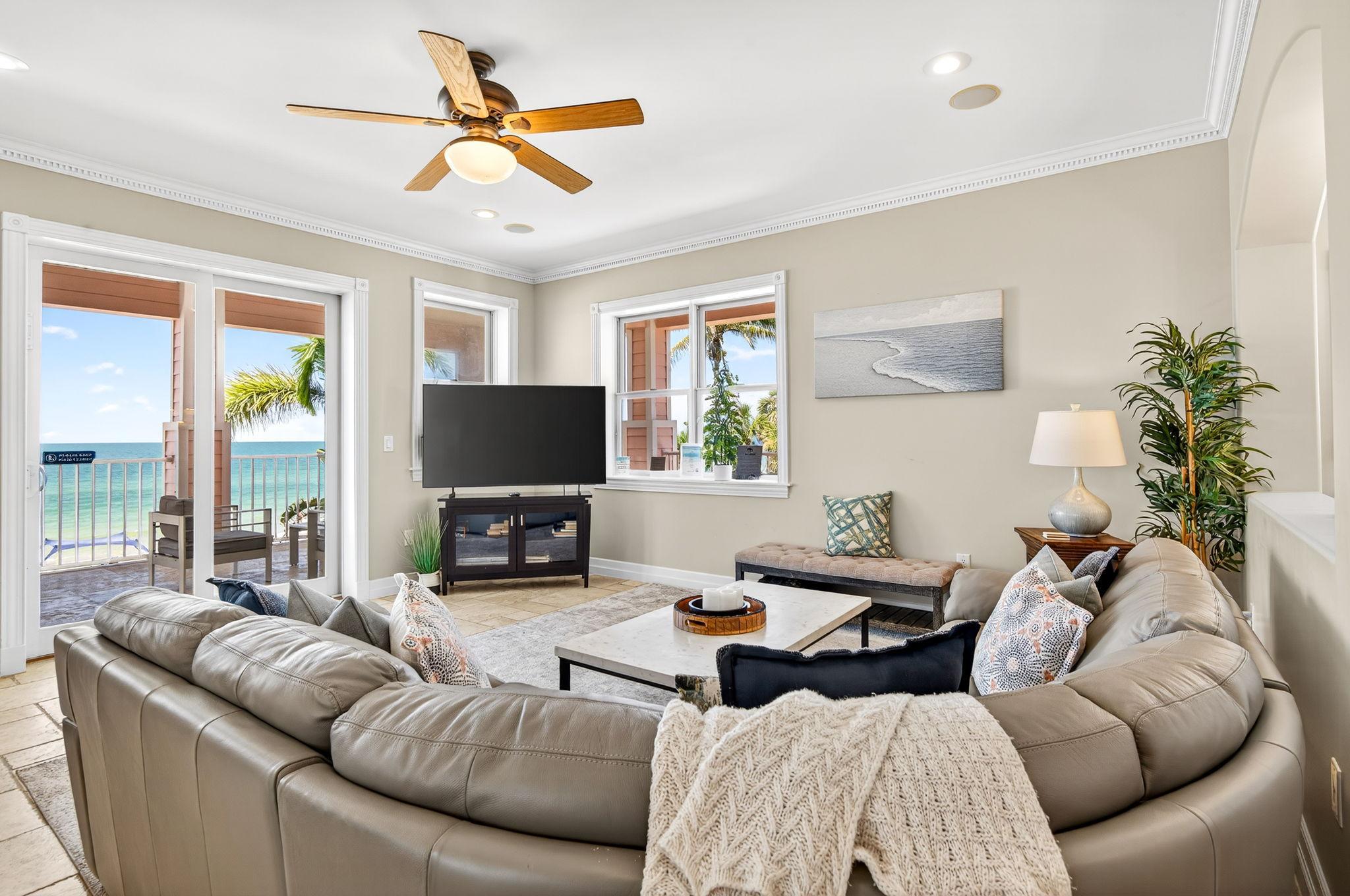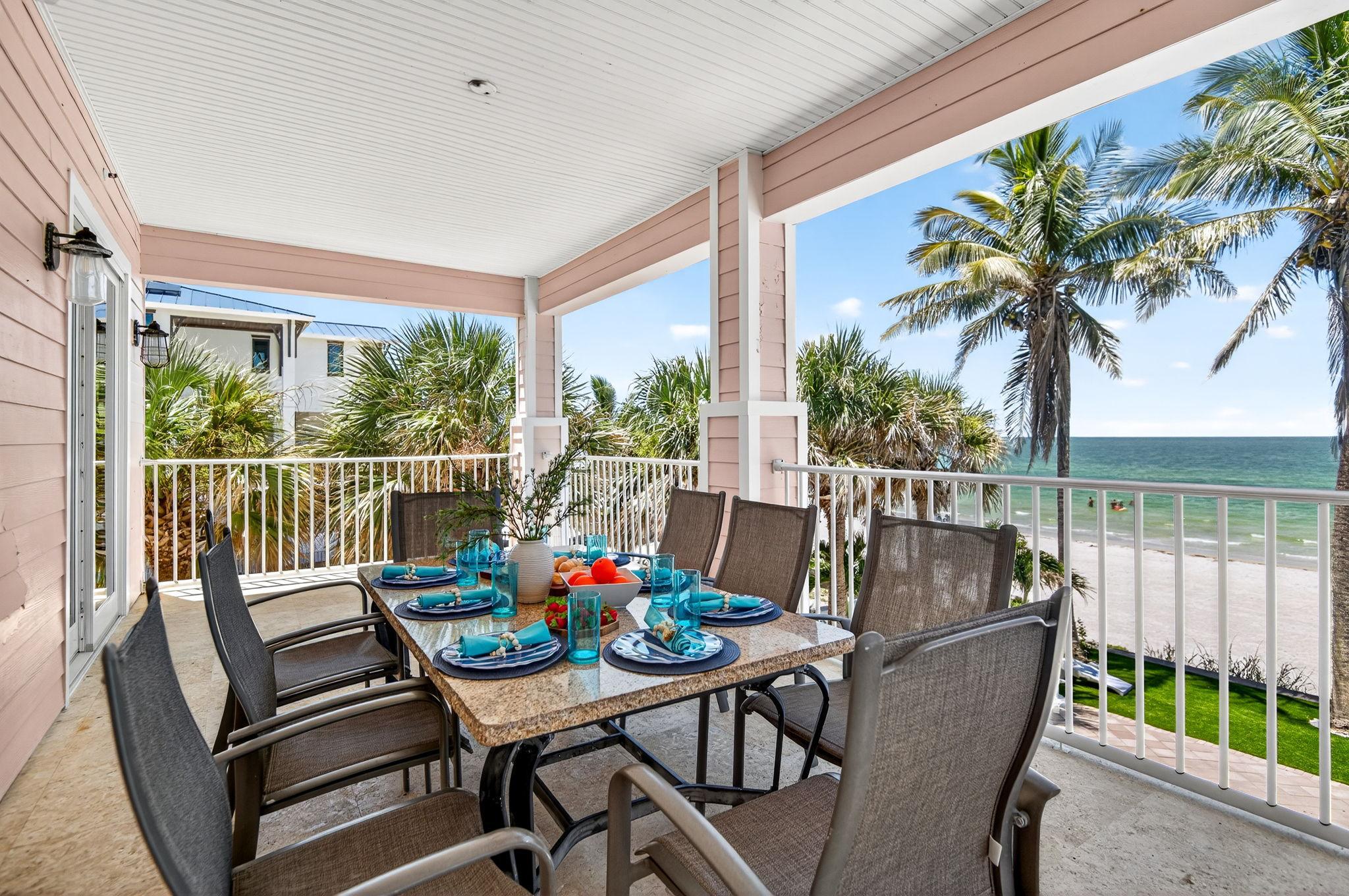 Multiple doors from the second and third floor lead out to a breezy beachfront balcony. You will find yourself wanting to spend a lot of time here enjoying the views, sipping on your favorite drink and listening to the soothing surf sounds when you’re not poolside or down on the beach.