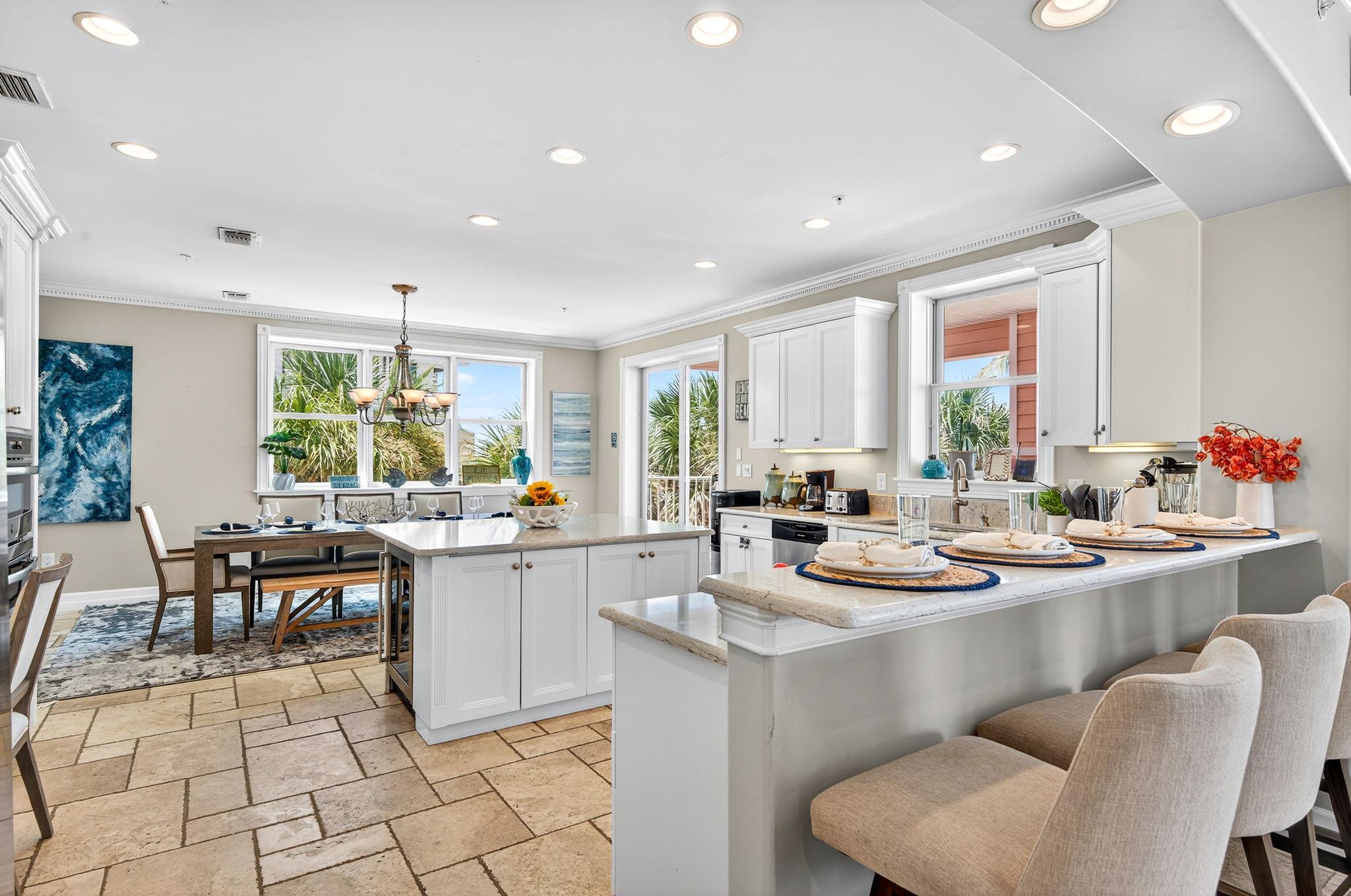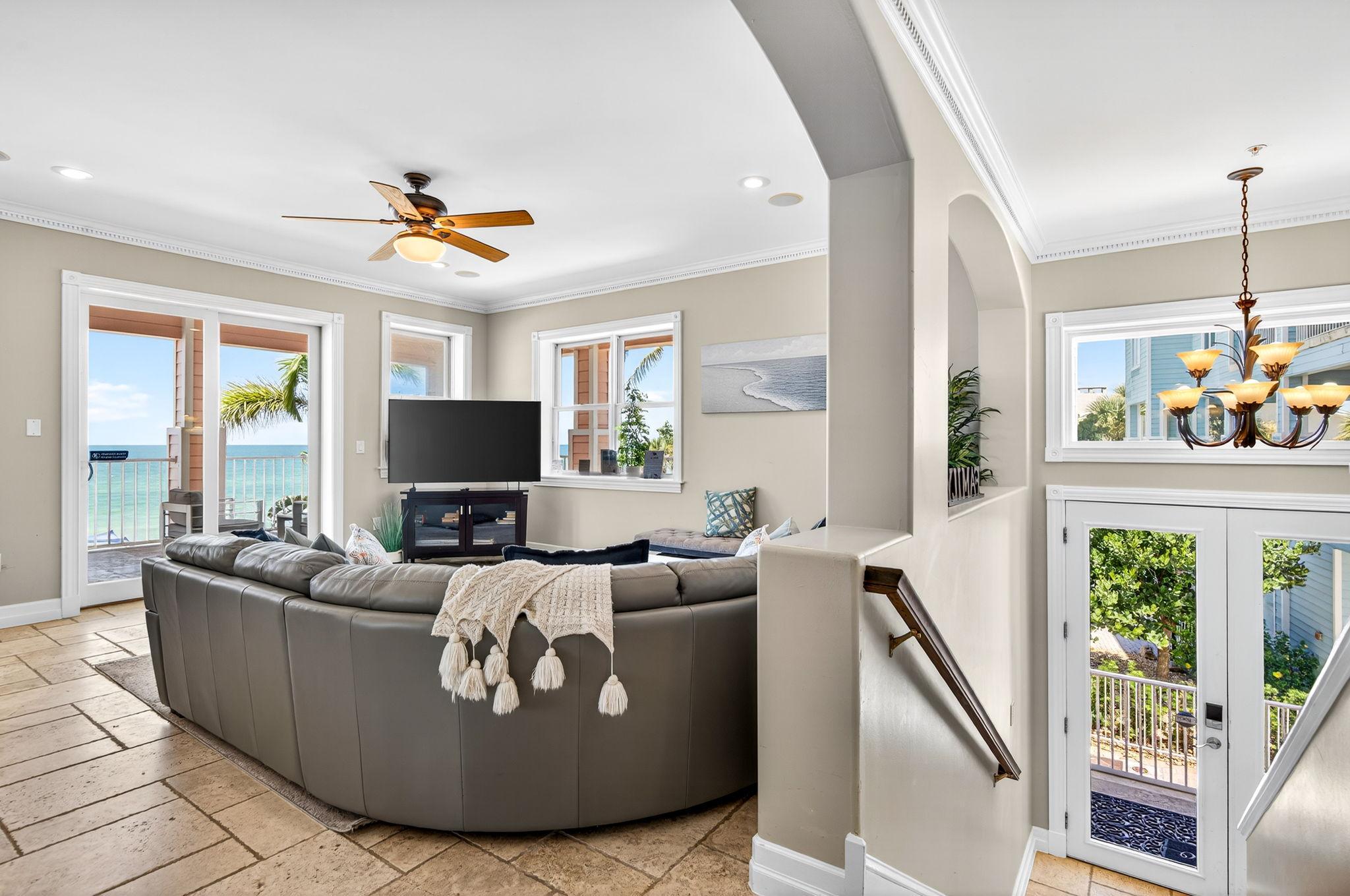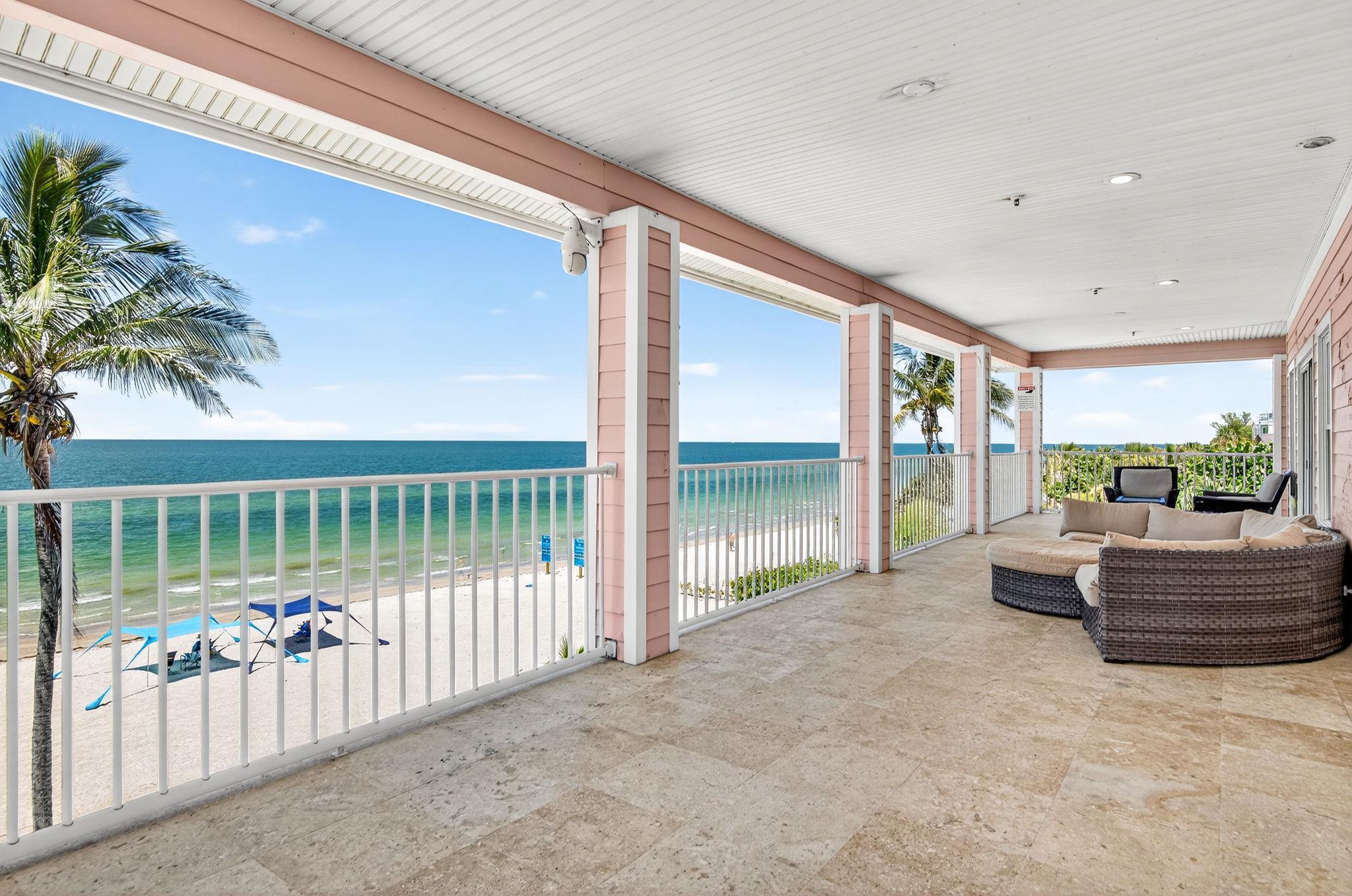 Second level features the spacious open living area, dining area and the gourmet kitchen, a half bathroom and a beachfront balcony.