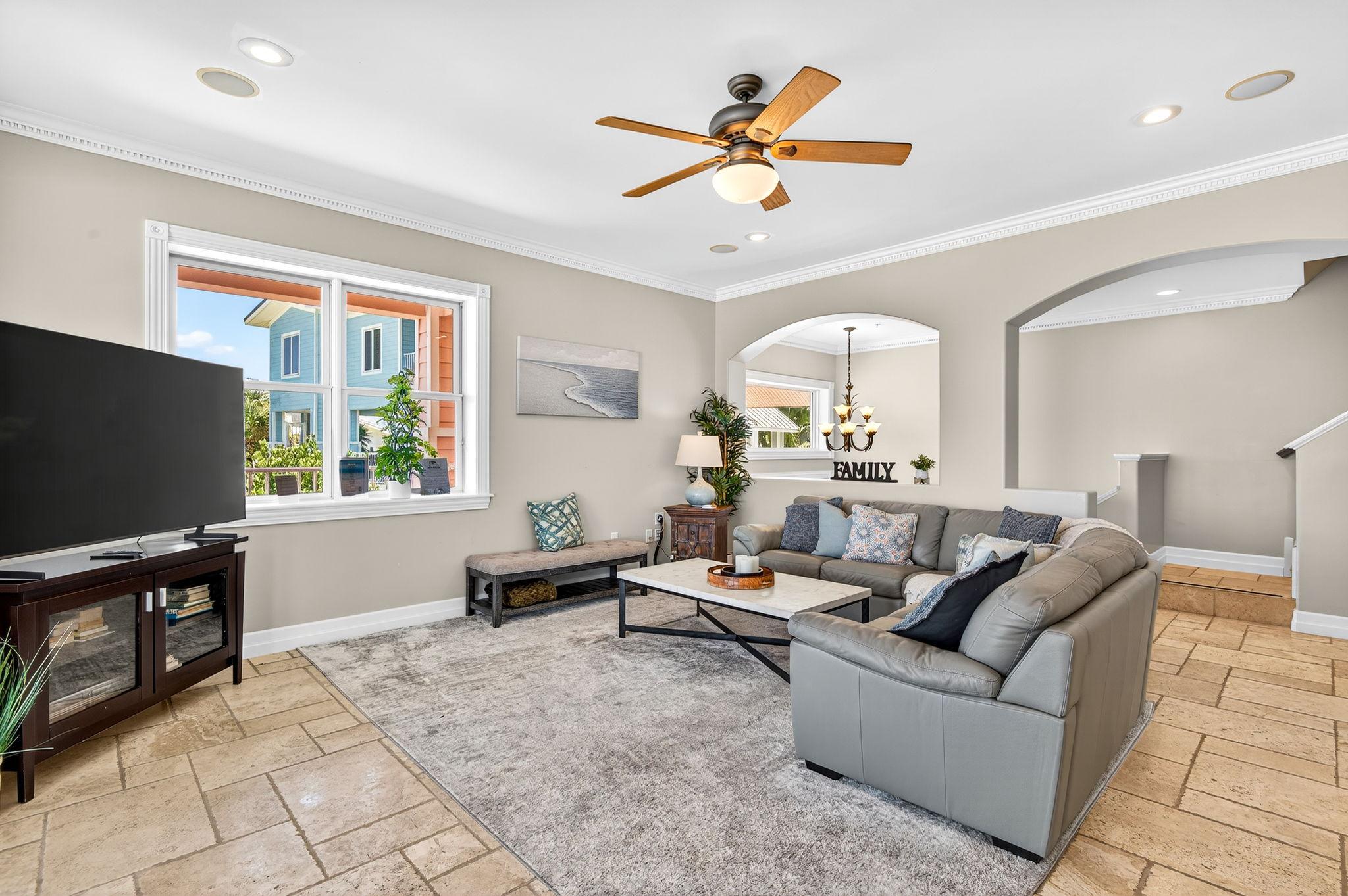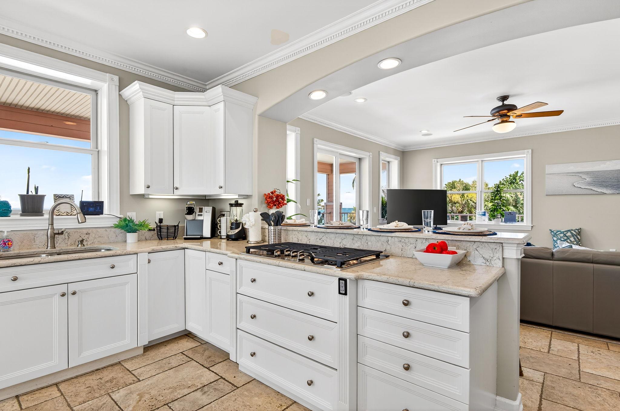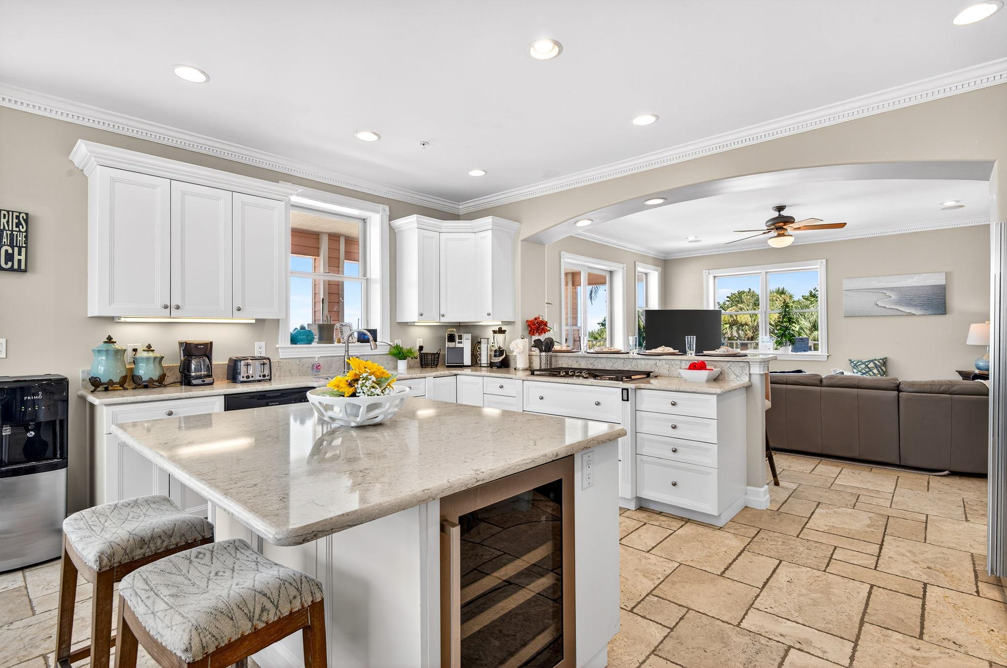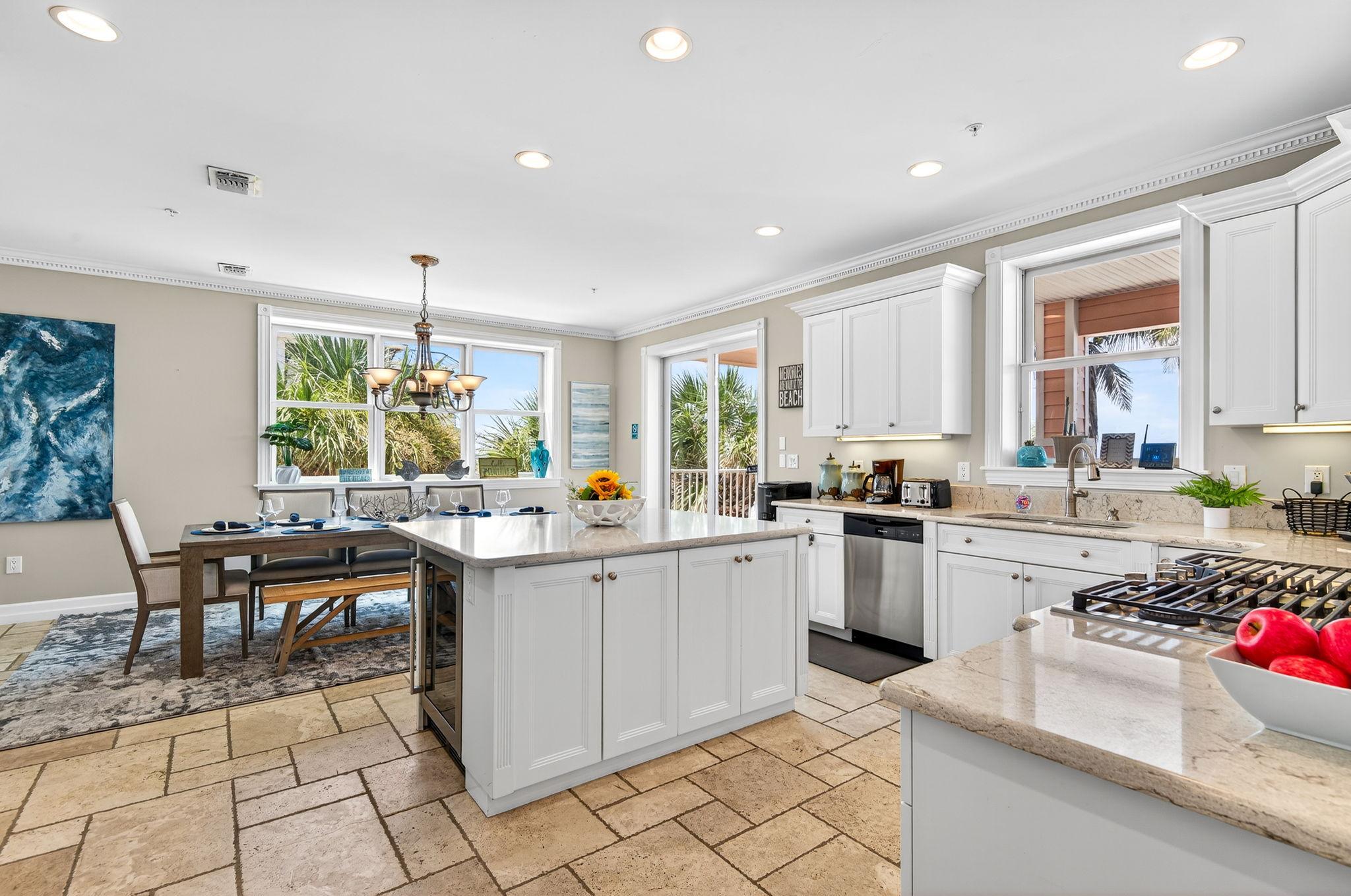 Second level features the spacious open living area, dining area and the gourmet kitchen, a half bathroom and a beachfront balcony.