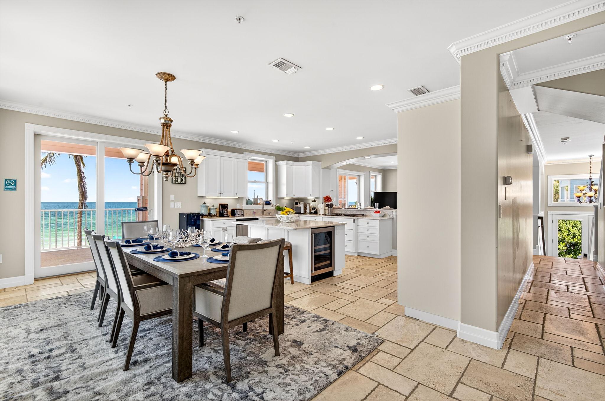 The main living area has comfortable couches with a wide screen TV and access to the Gulf front balconies. The living and dining area take full advantage of its beachfront setting with sliding glass doors that face the Gulf.
