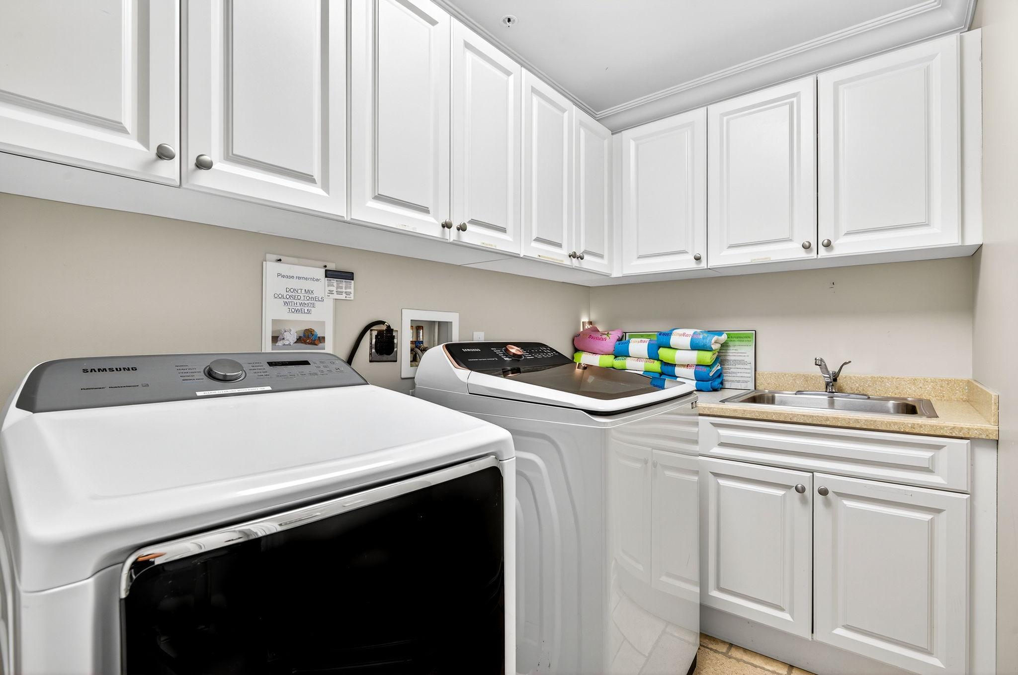 Outside there is a gas grill that sits next to the lovely sparkling private pool and paved patio. It is surrounded by lush landscaping and an assortment of palm trees creating an oasis-like private paradise.