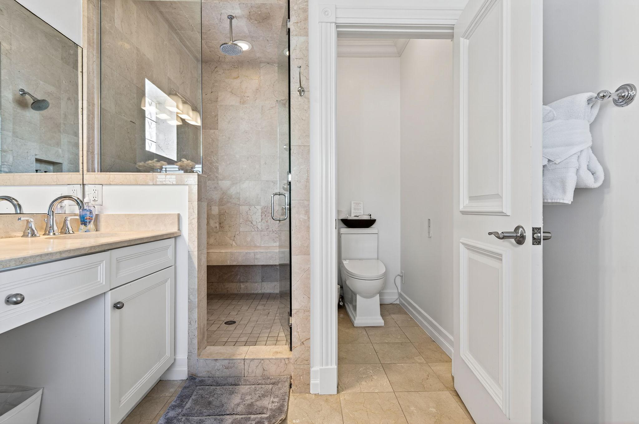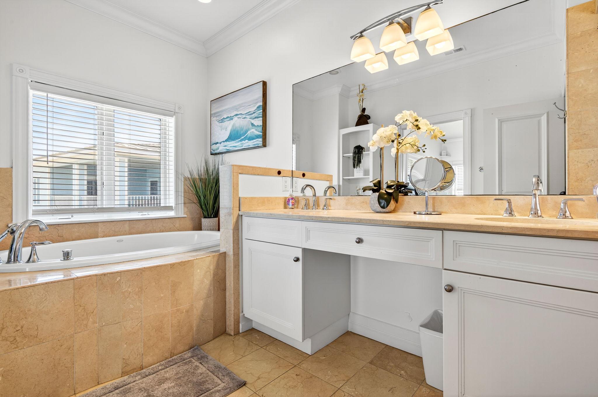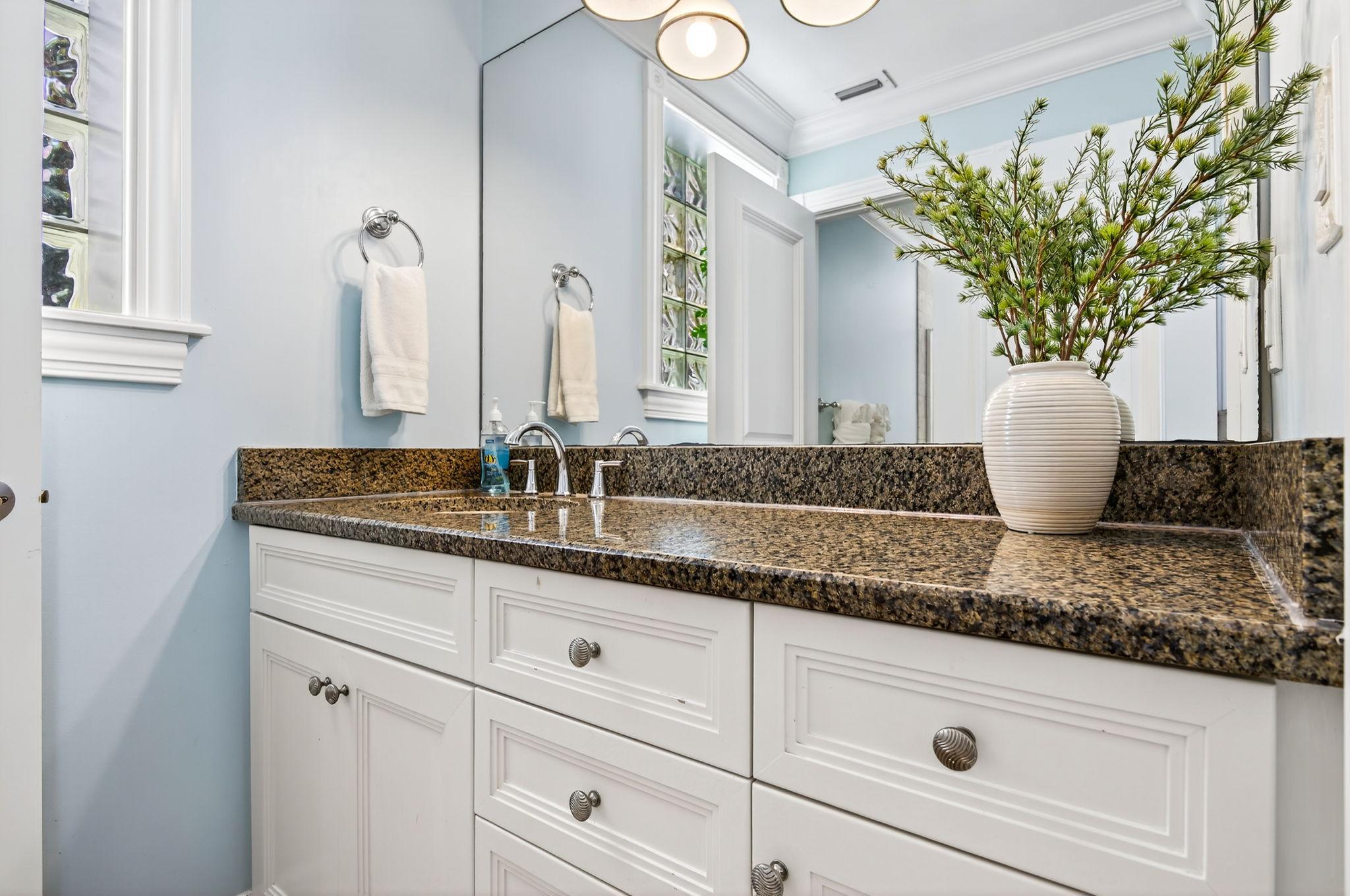 Ground Level features a two-car garage, laundry area, Gulf front pool and the first bedroom. First bedroom has 2 Queen beds with a private full bathroom. This bedroom has direct access to the pool as well.