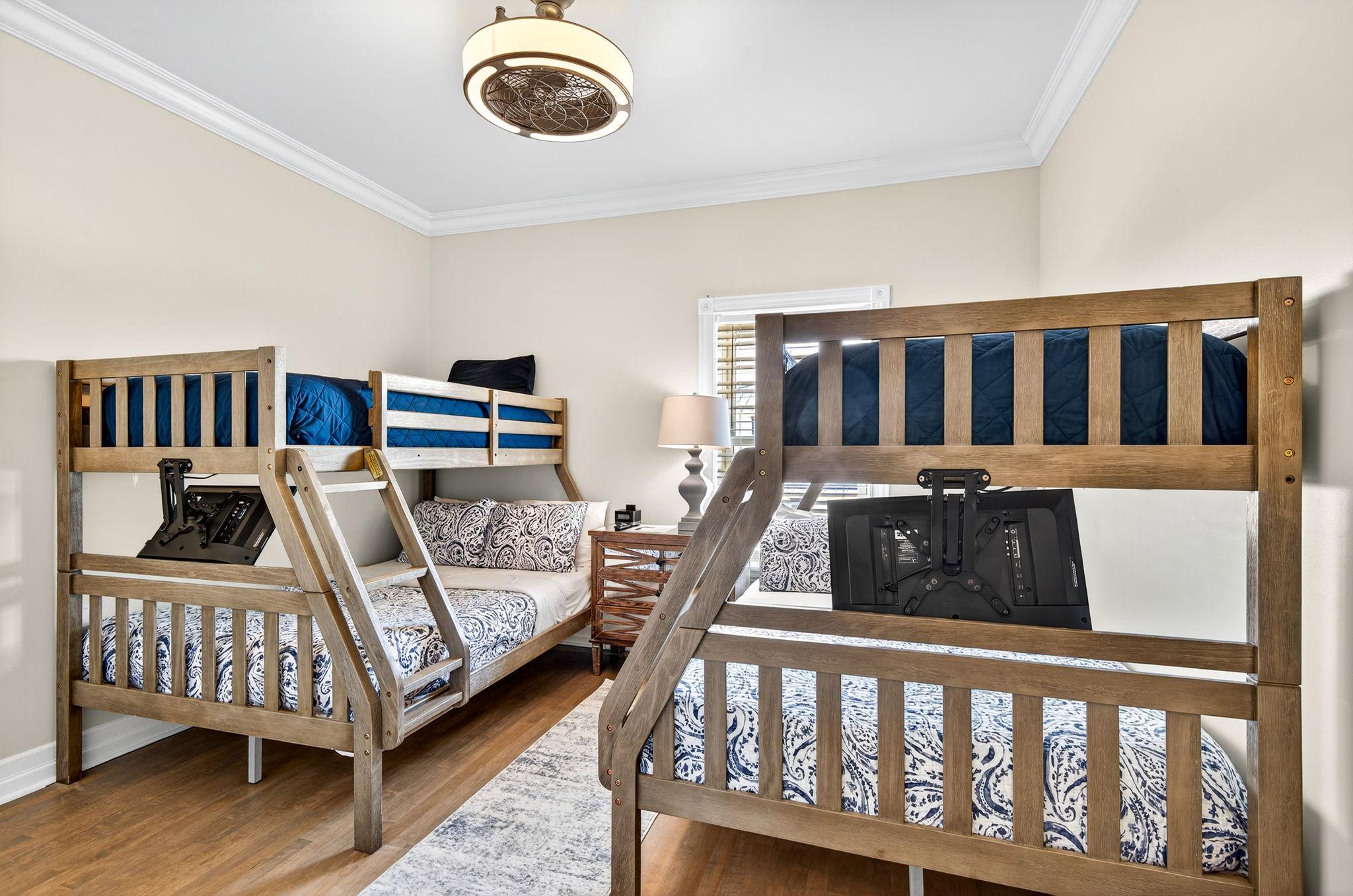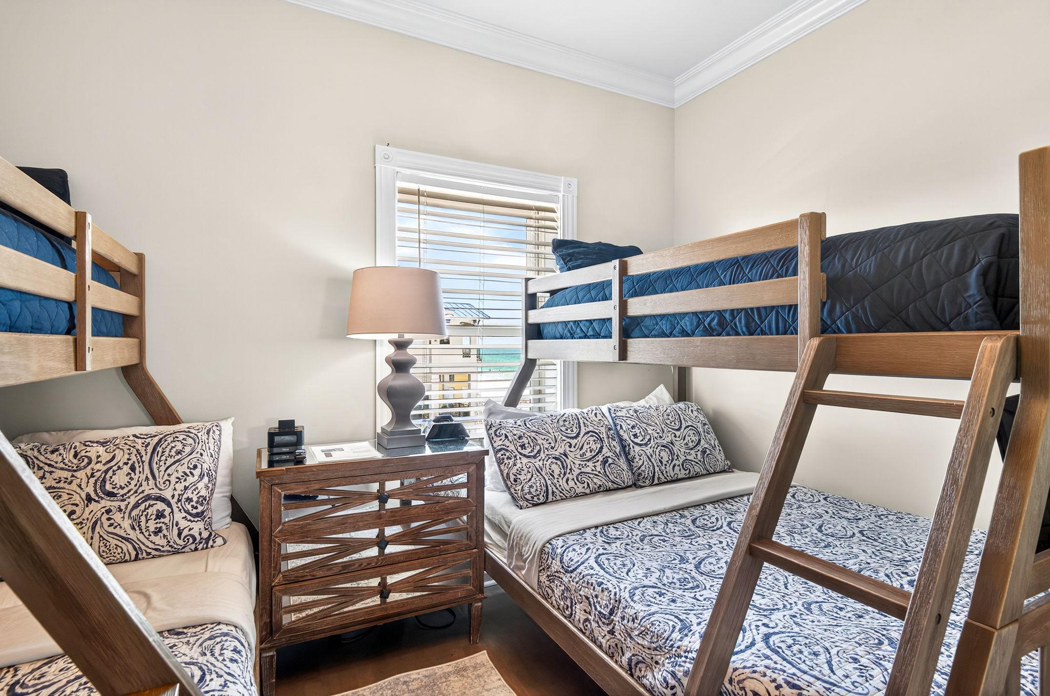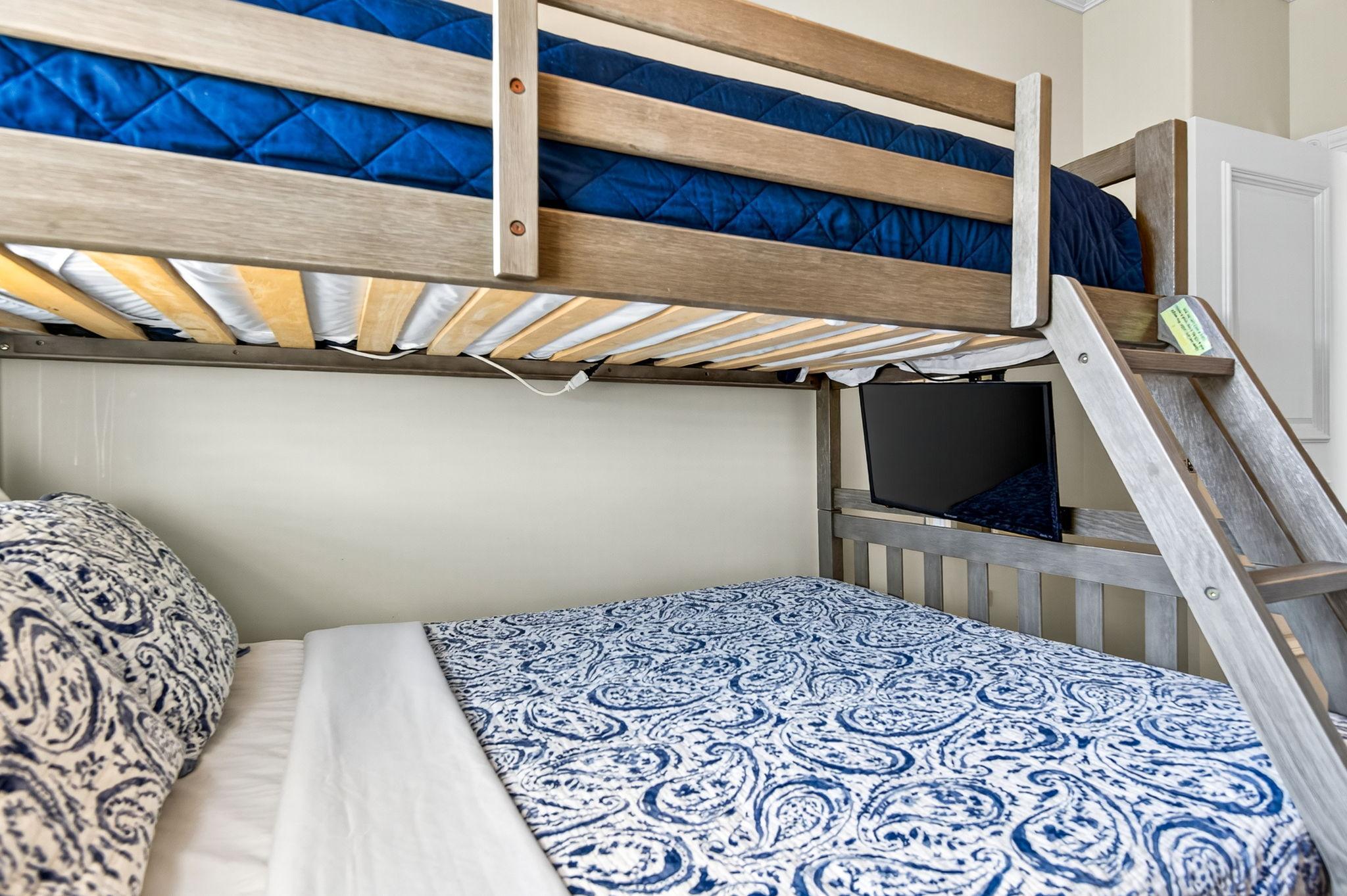 The third level features the second bedroom with 2 Bunk beds (the bottom is a Full and the top is a Twin). Bottom bunks have a built in TVs.