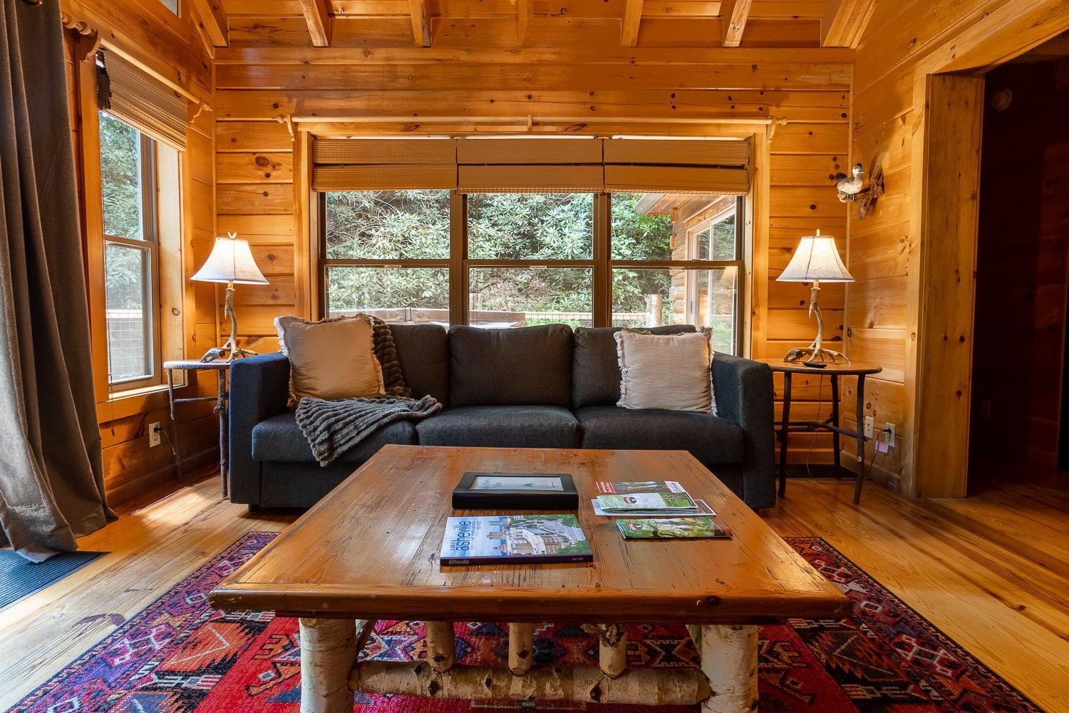 Rustic Pines Cabin is an ideal location for a mountain getaway! This charming log cabin is located on over seven acres of private land, just a mile from the Frozen Creek entrance of Gorges State Park and only a 15-minute drive from downtown Brevard. As you enter the cabin, you'll be greeted by an open living space with beautiful wood floors and a large stone wood-burning fireplace. The kitchen is modest but well-equipped to meet all your culinary needs, and you'll find a Smart TV and Internet available. Two guest suites offer private space, comfort, and an additional bed perfect for kids or other friends. Outside, the deck provides ample space for grilling and entertaining your group, and there's also an outdoor stone fireplace for those chilly nights. With over seven acres of land to explore and just a mile away from the state park, there are plenty of opportunities for outdoor activities like hiking, fishing, and kayaking.k, there are plenty of opportunities for outdoor activities like hiking, fishing, and kayaking. Headwaters Outfitters, one of our preferred paddling, fishing, and tubing vendors, is just 5 minutes away! Looking for a comfortable and relaxing stay? Look no further! Book your stay today! Don't miss out on the chance to unwind and recharge in the perfect setting. We can't wait to welcome you! Exclusive Yonder special: When you book Rustic Pines Cabin, you will receive a unique code for discounted tickets to the Biltmore Estate! Rustic Pines Cabin is professionally managed by Yonder, a local team with years of experience and passion for providing the ultimate guest experience. Home Truths: - Sleeps in beds: 6 - Max Occupancy: 6 - Guest will need to provide firewood for use in the firepit. - Yonder provides linens for all beds; other occupancy will require guests to provide their linens - Internet Speed: Download 167.5 Mbps Upload 9.87 Mbps - 2-night minimum throughout the year and a three-night minimum for all holidays - Quiet Policy: Please note that the property is located in a peaceful community. Parties, loud noise, and unruly behavior are prohibited, and guests are expected to respect the neighbors and the peace this mountain retreat area affords. Early Check-In and/or Late Check-Out may be possible, depending on cleaning schedules and other reservations. If possible, an additional fee may be determined based on the time you wish to check in or out and the seasonal rates. Reservations made within 7 days of check-in require additional documentation before confirmation. Pets: This home and property are dog-friendly, and guests are welcome to bring their furry friends with them. There is a non-refundable Pet Fee of $130 and a limit of 2 dogs per booking party. Payment - Cancellation - Insurance: Please inquire about our payment and cancellation policies and information about vacation rental insurance. Steve Frellick NCREC Broker-in-Charge
