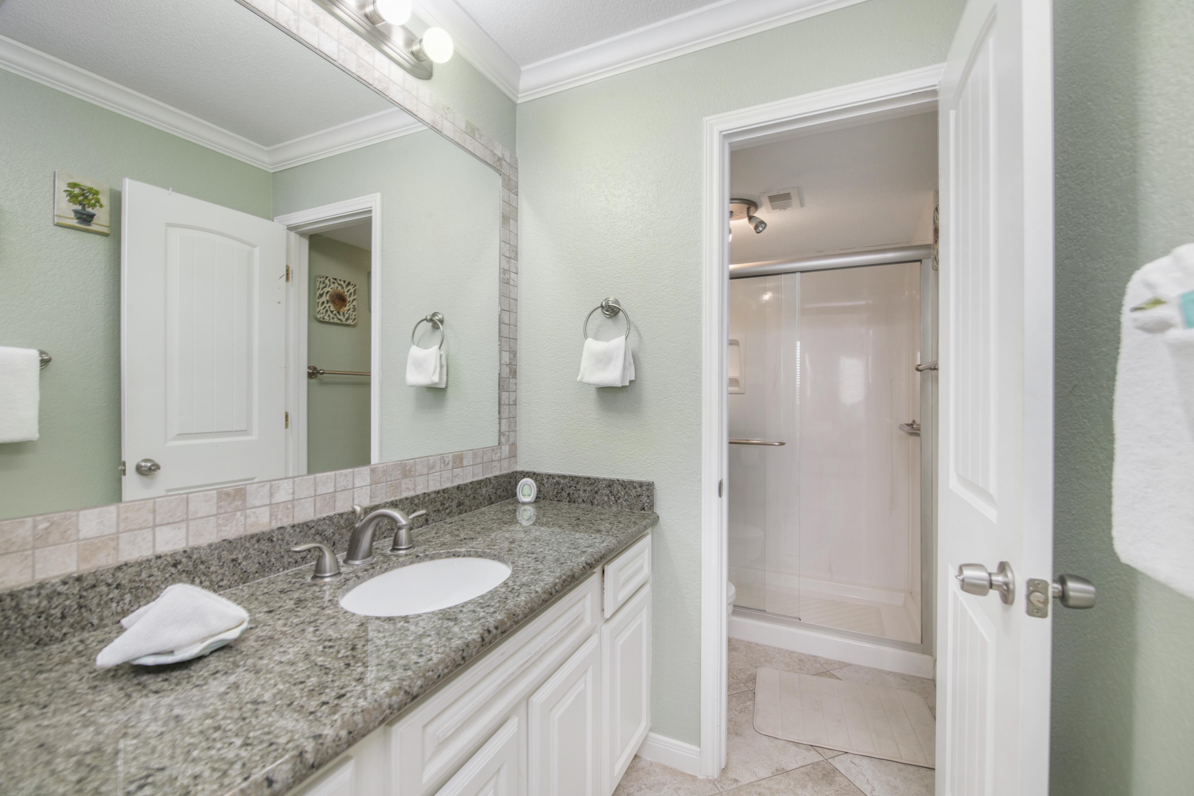 Second Bathroom: The second bathroom also features a walk-in shower and large mirror with beautiful tilework.