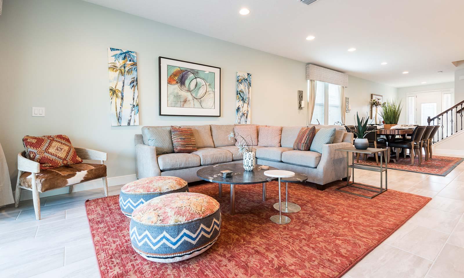 Main Living Area:Spacious comfortable seating area with a sectional and accent chair overlooking the private pool deck through sliding glass doorsPowder room is located downstairs Laundry room is located upstairsKitchen:Fully equipped with a white granite 4 seat breakfast bar, island with 2x additional seatsRefrigerator/freezer, oven, microwave, 2x dishwashers, coffee maker, toaster, blenderAll utensils, cookware, dinnerware, glasswareDining:Table seats 10 peopleEntertainment:Each bedroom is furnished with a flat screen TV and access to complimentary WiFiMain living area has a large flat screen TVGames room has a Foosball, ping pong table, and basketball shooting gameUpper floor loft area has a comfortable sectional, large flat screen TV with a PS4 video game console, air hockey tableOutdoor Living Space:Extra large, private swimming pool and spillover spa (optional heating for an additional fee)6x sun loungers, 4x seat patio table, 6x seat patio table, outdoor sofa with 2x patio chairsBuilt in summer kitchen with grill