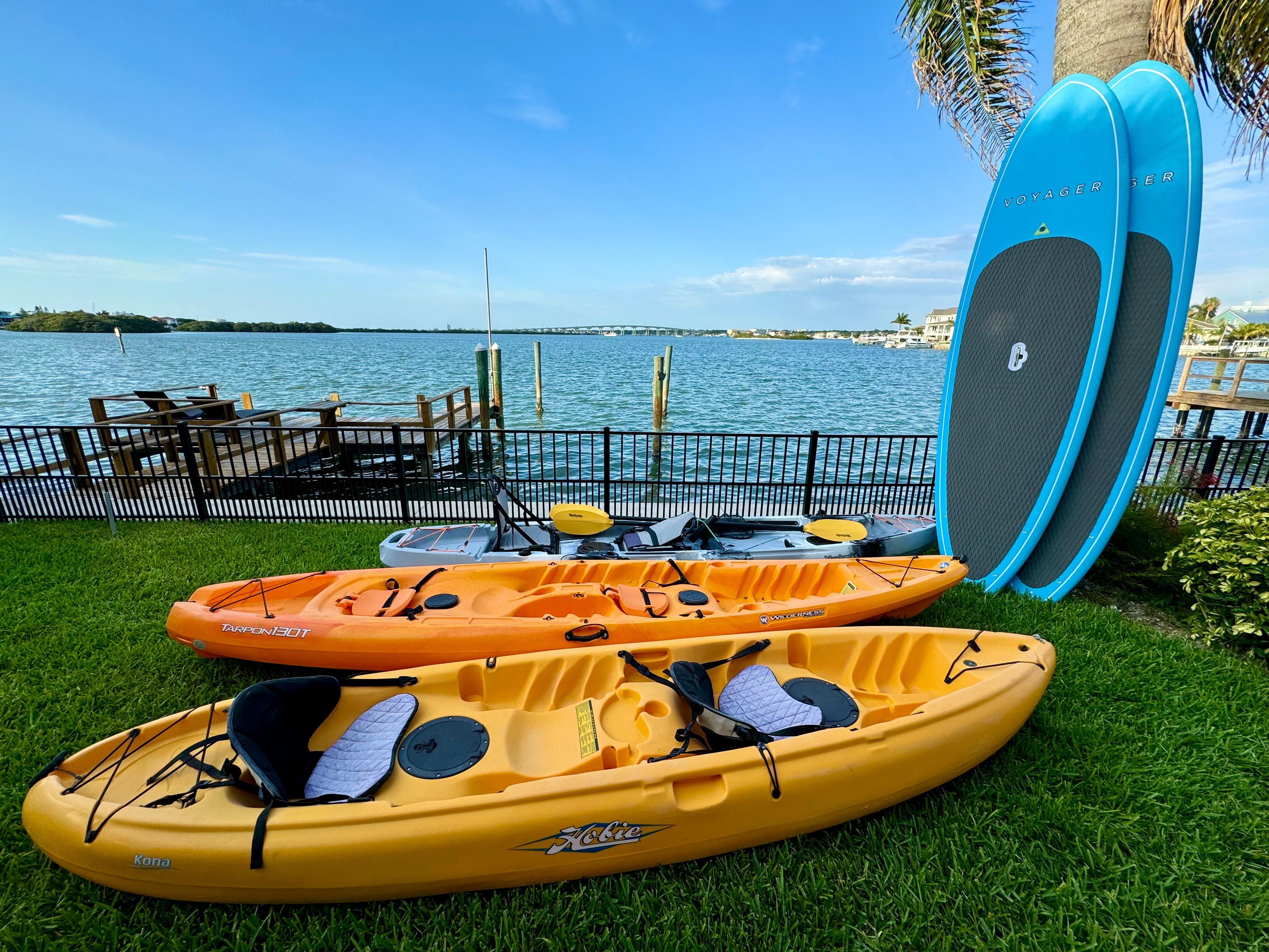 Outside, indulge in vacation bliss with amenities such as a natural gas grill, wood chip smoker, oversized hot tub, large flat-screen TV, outdoor dining area and multiple seating areas – perfect for al fresco gatherings and sunset barbecues - plus, a dock on the bay offering easy access to a sandy 'hangout' island and two wonderful mangrove islands, renown for great intercoastal fishing. Paddle to both islands with your kayaks and stand up paddle boards which you can launch right from the backyard dock.