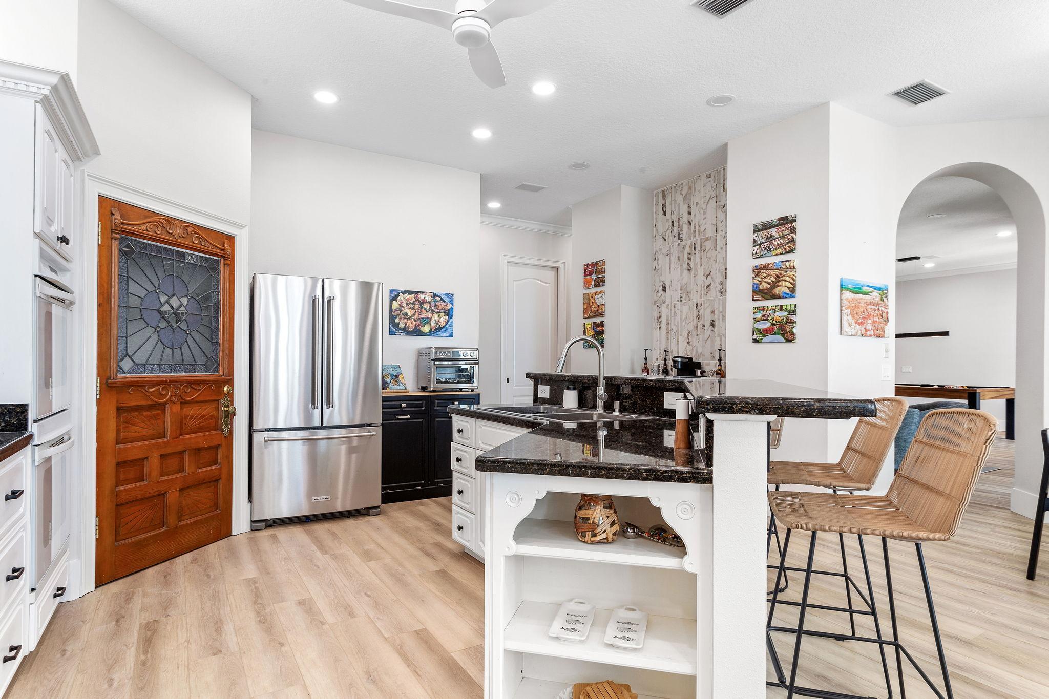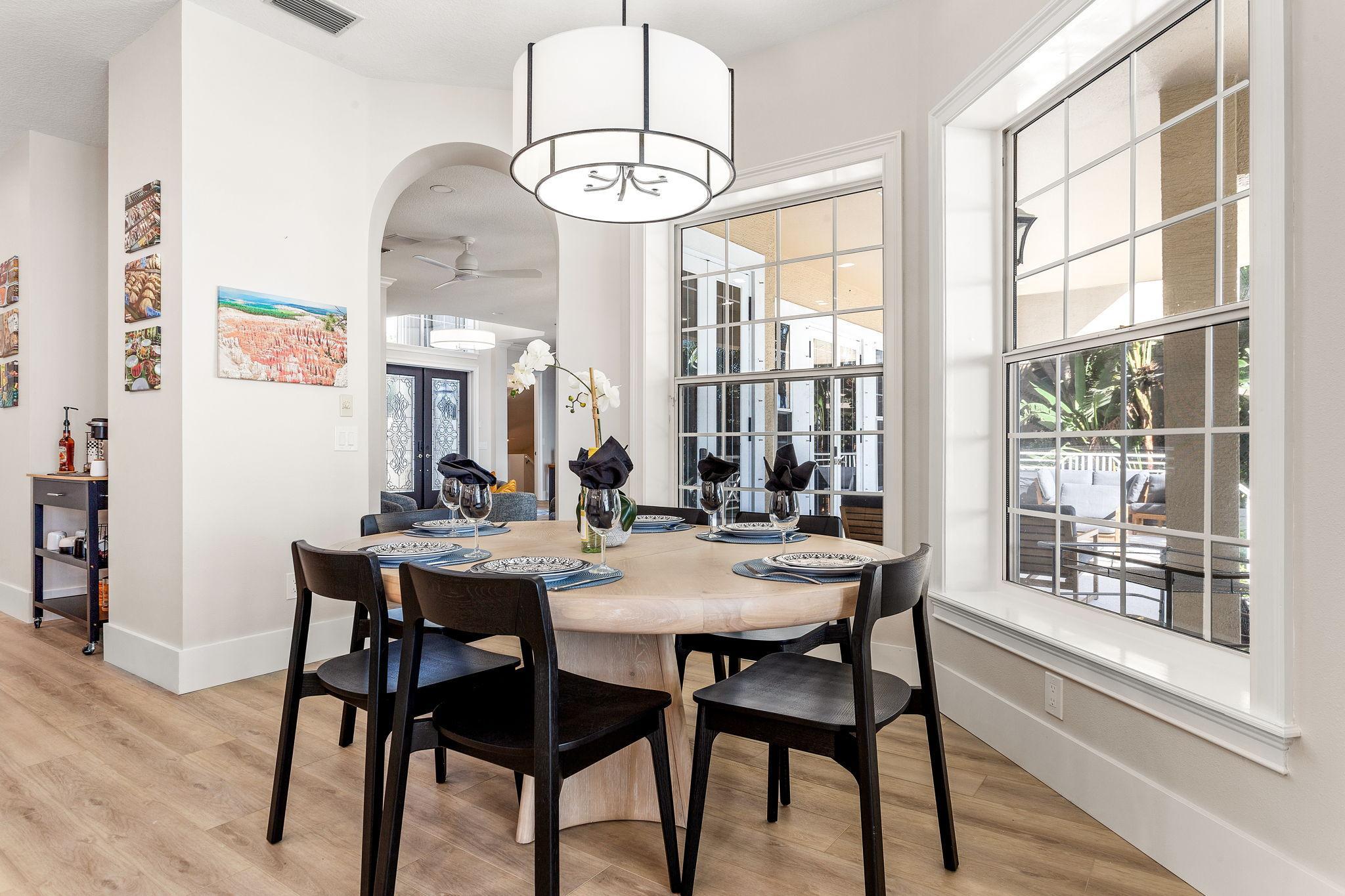 The kitchen is fully equipped for hassle-free vacation meals. Two refrigerators, lots of pantry storage and very well stocked cooking supplies, dishware, etc. makes entertaining a breeze. The adjacent dining area will comfortably seat 8 guests, with additional seating for 5 at the breakfast bar island and 2 more at a nearby counter. You'll really enjoy your morning with a quaint coffee bar while taking in the serene surroundings.