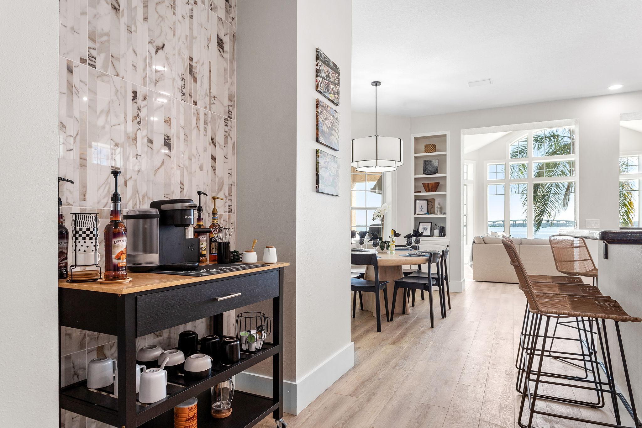 A second gathering space connected to the kitchen beckons with a plush, sectional sofa, game table, 75 in. flat-screen TV and floor-to-ceiling view of the bay, Belleair bridge, sandy beach and mangrove islands, and frequent dolphin and ocean bird sightings! At night, you will certainly enjoy the spacious and centrally located cocktail bar.