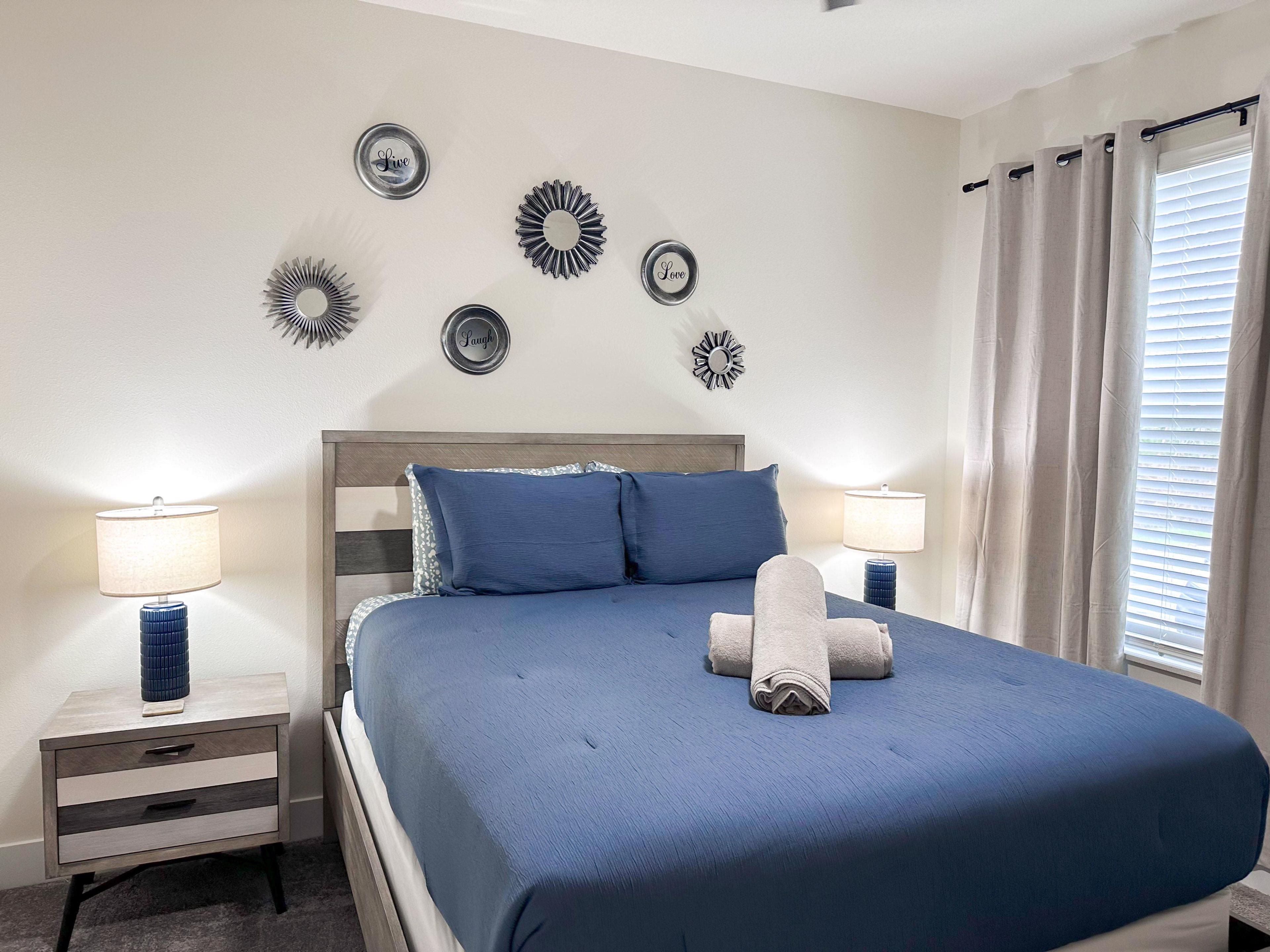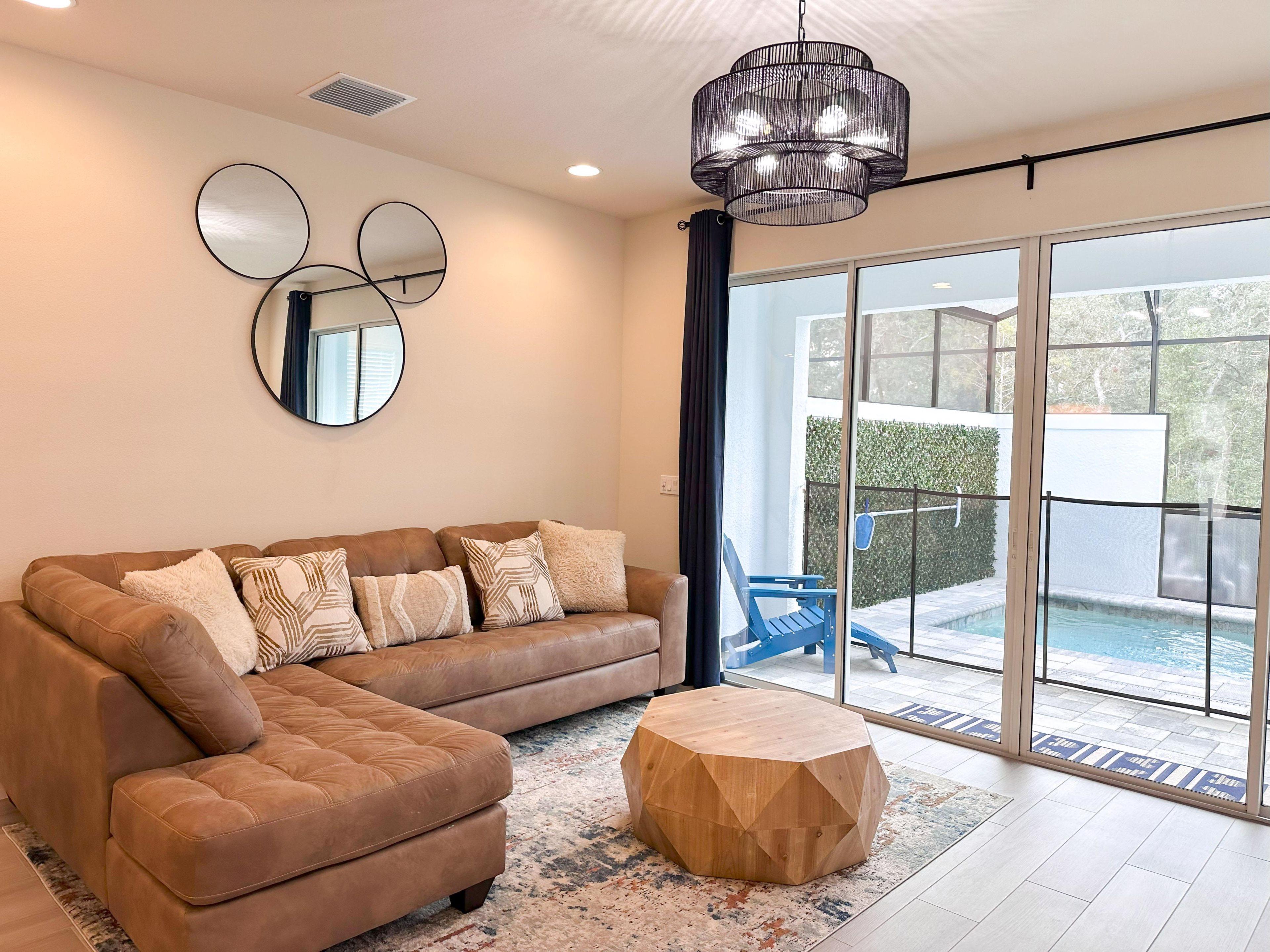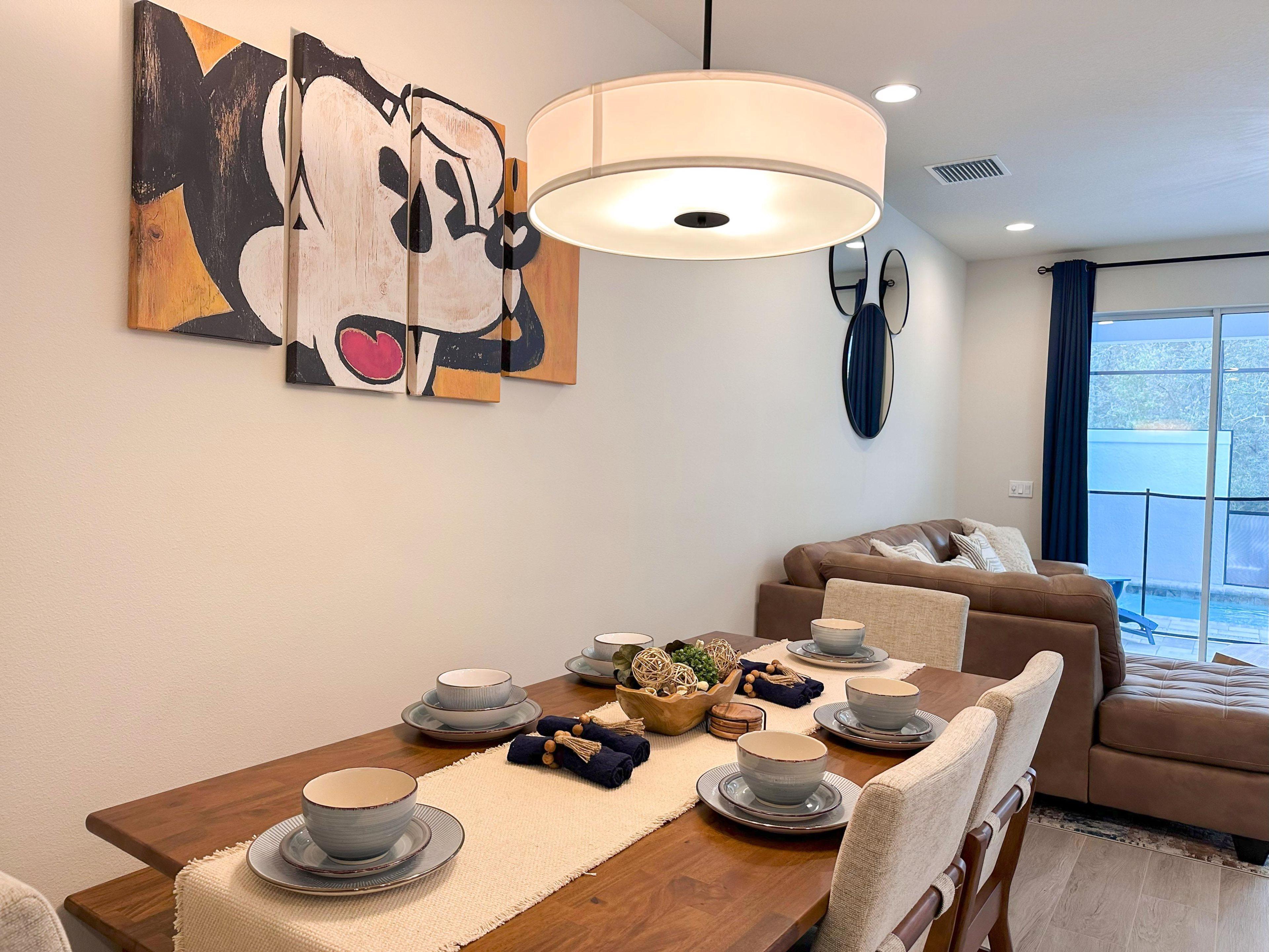 BRAND NEW HOME - Our newly built home is located in a new eco-friendly subdivision and has a private splash pool and access to the clubhouse (gym, games room, heated communal pool and spa, kids playground). The location is perfect: It is a short drive (15-19 min) from Walt Disney World. A few minute only from the nearest restaurants and supermarkets (Walmart, Publix, Starbucks...). And the layout is really convenient, especially if you travel with reduced-moblity guests. Downstairs there is a queen size bedroom with ensuite (shower). A fully equipped kitchen with dishwasher, stove, microwave, fridge, coffee maker, utensils, pots and pans, dinnerware. The living room and dining room are spacious and tastefully decorated. The view on the pool is just wonderful. Upstairs, there are three more bedrooms. The primary is huge and has a king size bed and an ensuite bathroom (2 vanities, and shower). The third bedroom has two twin beds. The 4th bedroom shares a bathroom (bath tub) with bedroom #3 and has bunk beds (twin over full) and a twin bed. All rooms have TV's. Of course there is WIFI around the house. There is also a laundry room with washer and dryer. Why stay in a hotel room while you can enjoy this amazing vacation home and be close to all major attractions Orlando has to offer. Do not wait too long or this property may not be available anymore. Happy memories guaranteed. IMPORTANT TO KNOW: ** Pool heating is NOT included in the rental unless specified in your rate. Please contact us to get a quote. You can still use the pool without heating, of course. ** Only the guests who have been registered are allowed to stay in the property. *** Pool heaters are set to 86 prior to your arrival. The reached temperature will depend on the weather. Pool heaters run 12 hours during the day. No refund or compensation will be given if the pool heater does not work unless the guests paid for the heating of the pool and it is proven that there was a technical issue that created an inconvenience. The refund or compensation will never exceed the amount paid by the guest for the heating of the pool. ** This property is self-catering. A small starter kit is provided for your arrival, including 3 dishwasher tablets, 2 trash bags, 1 new sponge, 1 kitchen paper towel, 1 starter soap per bathroom, and 1 roll of toilet paper per toilet. Guests are responsible for purchasing additional supplies as needed during their stay. What to Expect Before Check-in Just like when you check in at a hotel, Florida law (Florida Statutes, Chapter 509.101(2)) requires a quick guest registration before your stay. We’ve made this process fully digital so it’s simple and secure, while also protecting both you and us from the scams that unfortunately occur in the Orlando area. Here’s how it works: After booking, you’ll receive a short online form to complete. You’ll be asked to upload a photo of your ID and a selfie holding the ID to confirm your reservation. For added security, we’ll also request a photo of the card used for the booking and a selfie holding the card—similar to how hotels verify your ID and credit card at check-in. Once everything is verified, we’ll provide your digital door code so you can go straight to your vacation home. Please note: at least one guest must be 21 years or older and present during the stay. Important: If registration is not fully completed as described above, guests will not be granted access to the property and no refund will be issued. In such cases, the reservation is considered a no-show. Important House Rules No smoking and no pets are permitted inside any of our properties. Homes are for vacation use only and may not be used as a permanent residence. Maintenance or pest control visits may be scheduled during your stay; our team reserves the right to access the property if needed. Security Deposit $500 for stays up to 28 nights. $1,000 for stays of 29 nights or more. The security deposit is charged to your credit card and refunded after check-out once our cleaning and inspection team confirms there are no issues. Please allow 7–14 days for the refund to appear, depending on your bank or credit card provider. Pool Heating (Optional) Available upon request for $35 + tax per day (7-day minimum). For same-week requests, a $50 service activation fee applies. Heating runs daily from 8 AM to 8 PM, with temperatures subject to weather conditions. Cancellation Policy By booking this property, you agree to the cancellation policy listed on the booking site. A 5% processing fee applies to all cancellations (deducted from the amount already paid). Please note: Failure to complete the registration process (as outlined in the check-in requirements) will result in denial of access to the property and no refund will be issued. This will be considered a no-show. We highly recommend travel insurance for added peace of mind.