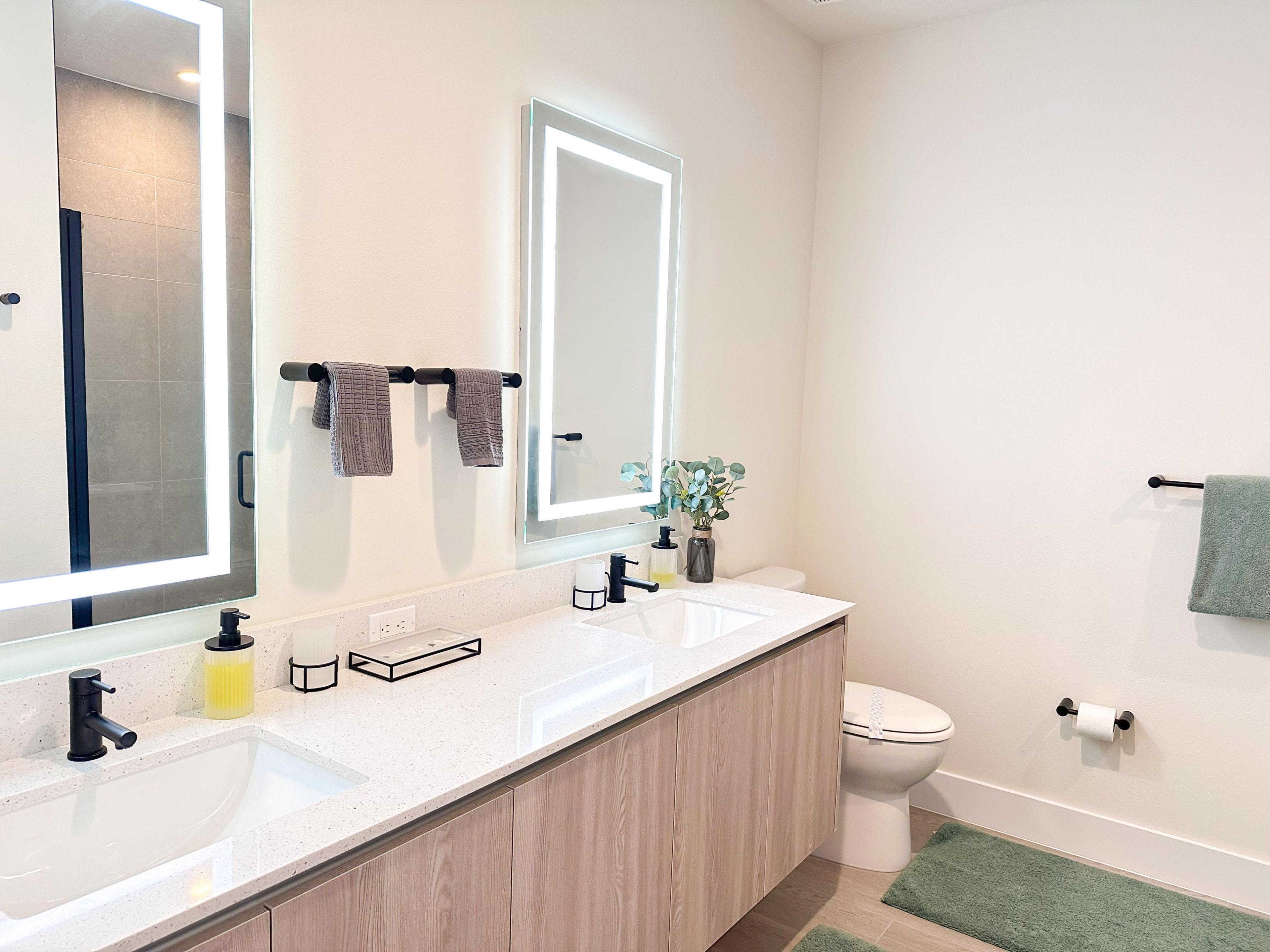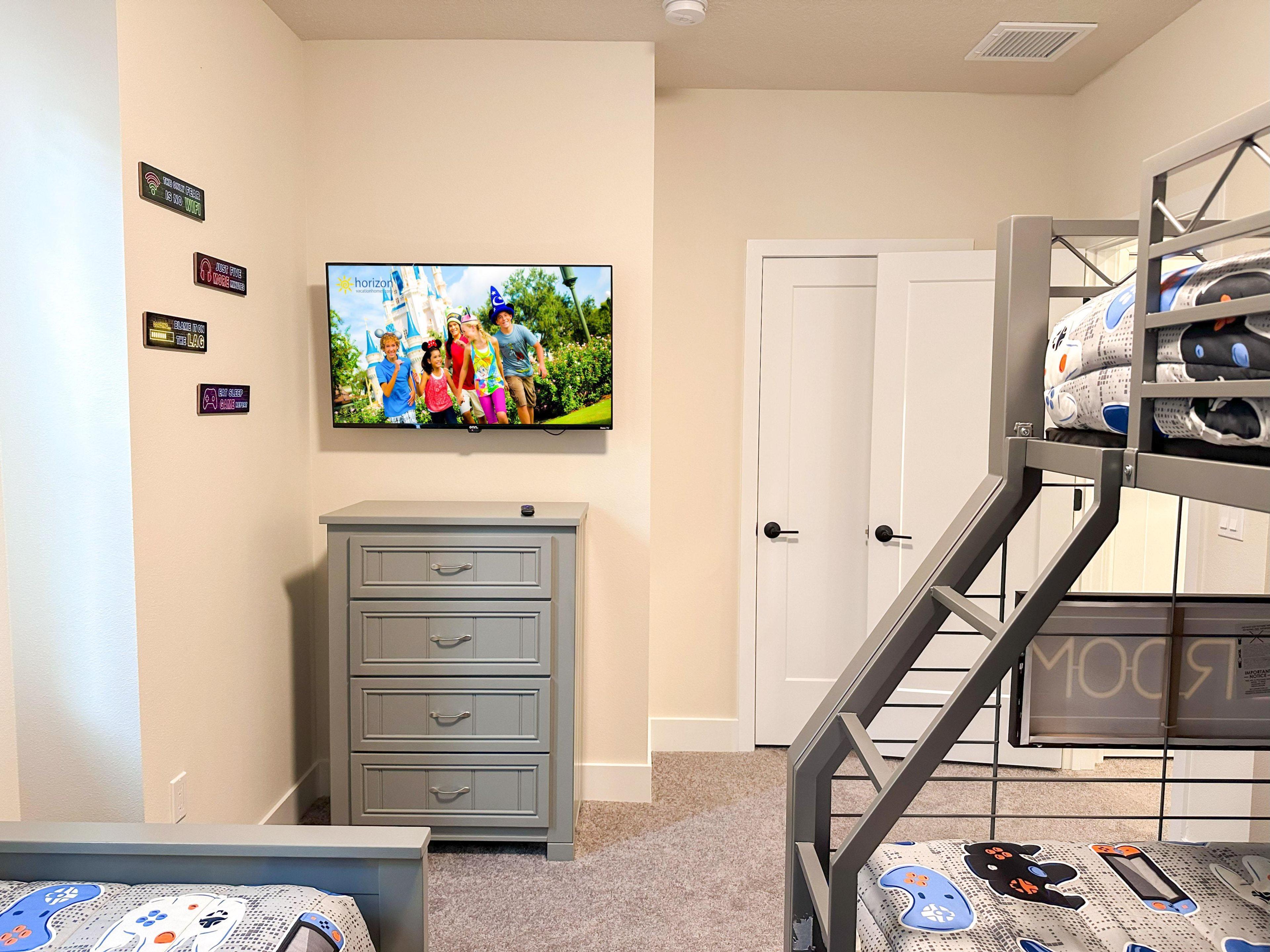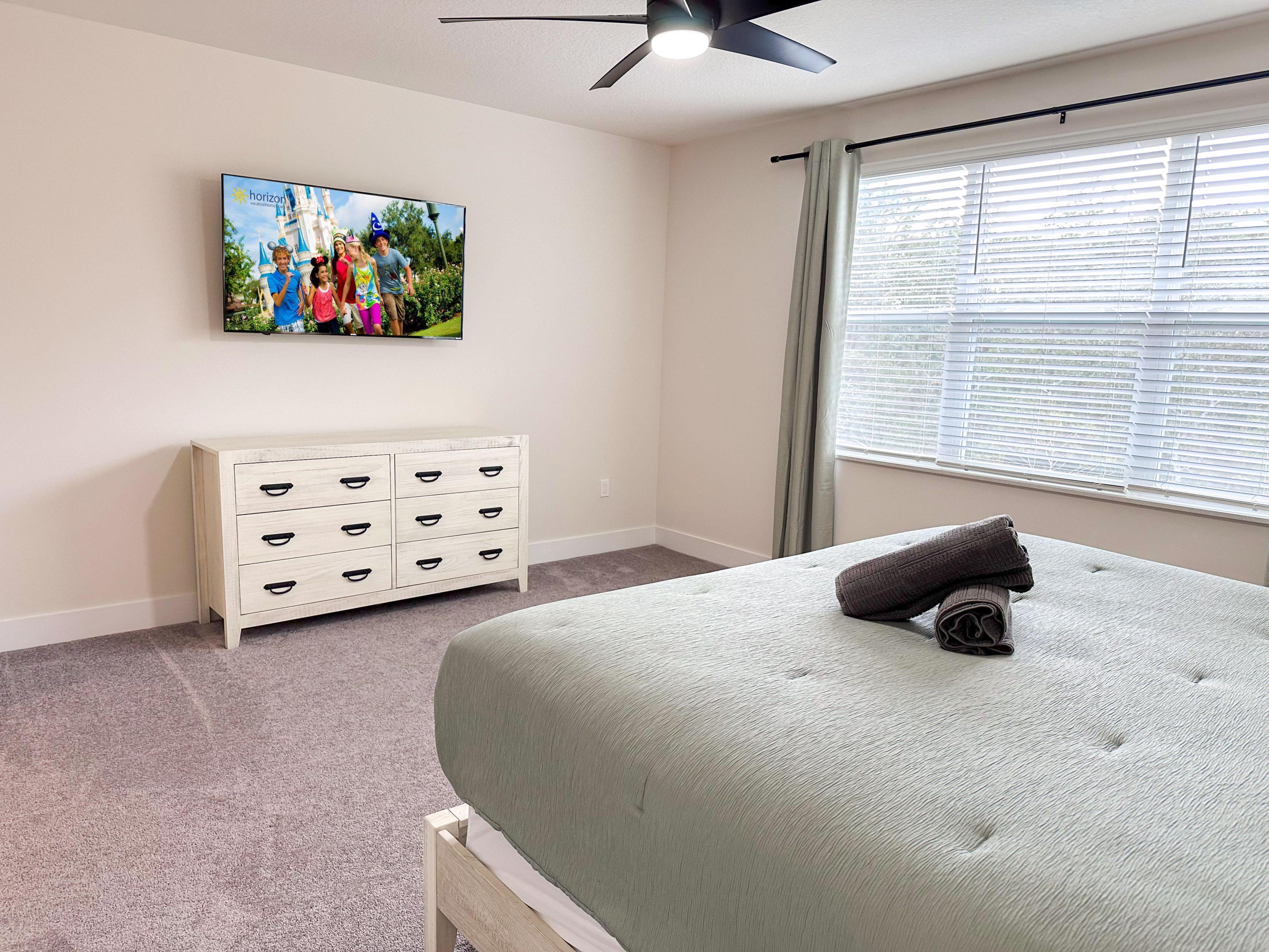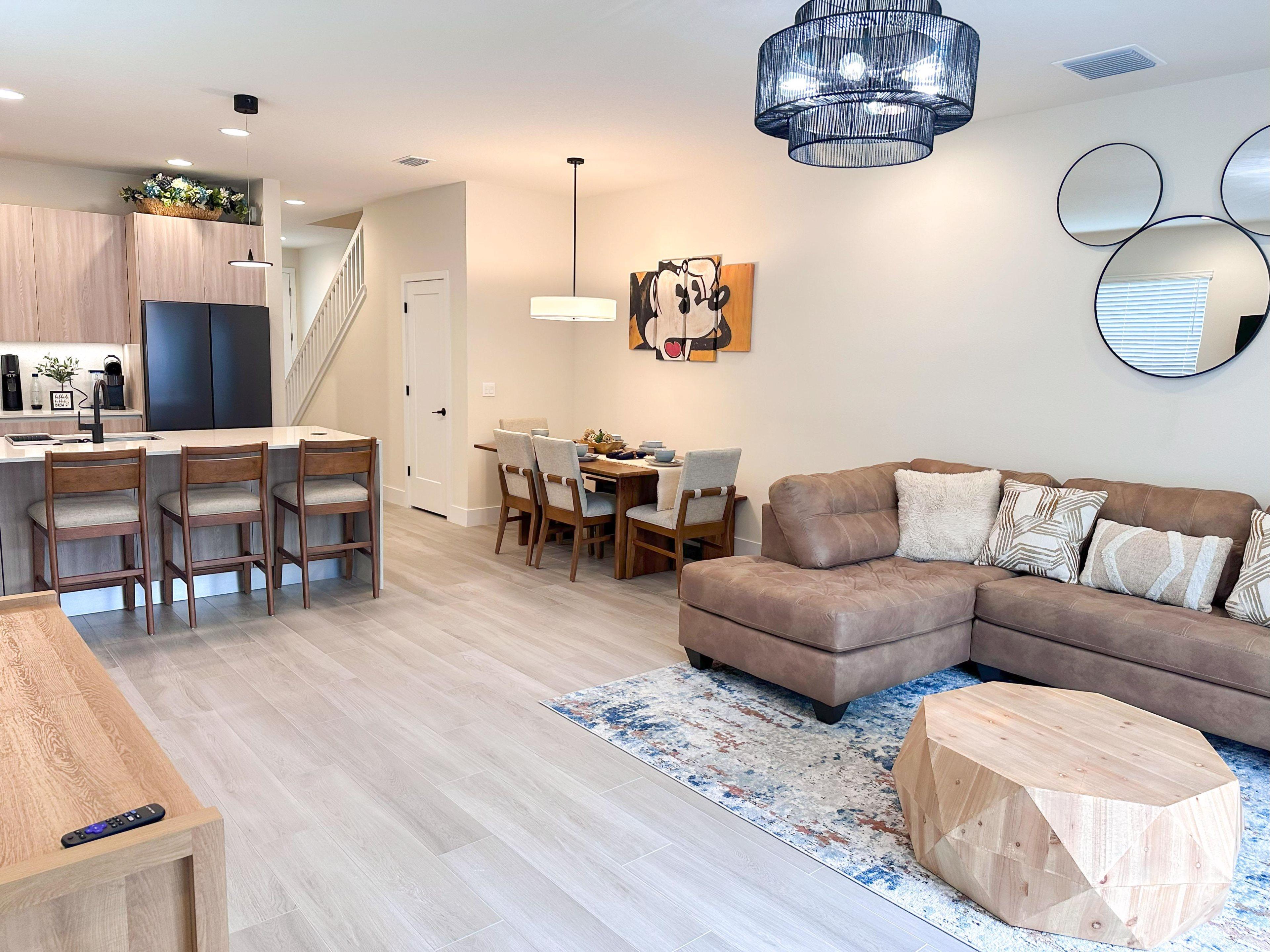 BRAND NEW HOME - Our newly built home is located in a new eco-friendly subdivision and has a private splash pool and access to the clubhouse (gym, games room, heated communal pool and spa, kids playground). The location is perfect: It is a short drive (15-19 min) from Walt Disney World. A few minute only from the nearest restaurants and supermarkets (Walmart, Publix, Starbucks...). And the layout is really convenient, especially if you travel with reduced-moblity guests. Downstairs there is a queen size bedroom with ensuite (shower). A fully equipped kitchen with dishwasher, stove, microwave, fridge, coffee maker, utensils, pots and pans, dinnerware. The living room and dining room are spacious and tastefully decorated. The view on the pool is just wonderful. Upstairs, there are three more bedrooms. The primary is huge and has a king size bed and an ensuite bathroom (2 vanities, and shower). The third bedroom has two twin beds. The 4th bedroom shares a bathroom (bath tub) with bedroom #3 and has bunk beds (twin over full) and a twin bed. All rooms have TV's. Of course there is WIFI around the house. There is also a laundry room with washer and dryer. Why stay in a hotel room while you can enjoy this amazing vacation home and be close to all major attractions Orlando has to offer. Do not wait too long or this property may not be available anymore. Happy memories guaranteed. IMPORTANT TO KNOW: ** Pool heating is NOT included in the rental unless specified in your rate. Please contact us to get a quote. You can still use the pool without heating, of course. ** Only the guests who have been registered are allowed to stay in the property. *** Pool heaters are set to 86 prior to your arrival. The reached temperature will depend on the weather. Pool heaters run 12 hours during the day. No refund or compensation will be given if the pool heater does not work unless the guests paid for the heating of the pool and it is proven that there was a technical issue that created an inconvenience. The refund or compensation will never exceed the amount paid by the guest for the heating of the pool. ** This property is self-catering. A small starter kit is provided for your arrival, including 3 dishwasher tablets, 2 trash bags, 1 new sponge, 1 kitchen paper towel, 1 starter soap per bathroom, and 1 roll of toilet paper per toilet. Guests are responsible for purchasing additional supplies as needed during their stay. What to Expect Before Check-in Just like when you check in at a hotel, Florida law (Florida Statutes, Chapter 509.101(2)) requires a quick guest registration before your stay. We’ve made this process fully digital so it’s simple and secure, while also protecting both you and us from the scams that unfortunately occur in the Orlando area. Here’s how it works: After booking, you’ll receive a short online form to complete. You’ll be asked to upload a photo of your ID and a selfie holding the ID to confirm your reservation. For added security, we’ll also request a photo of the card used for the booking and a selfie holding the card—similar to how hotels verify your ID and credit card at check-in. Once everything is verified, we’ll provide your digital door code so you can go straight to your vacation home. Please note: at least one guest must be 21 years or older and present during the stay. Important: If registration is not fully completed as described above, guests will not be granted access to the property and no refund will be issued. In such cases, the reservation is considered a no-show. Important House Rules No smoking and no pets are permitted inside any of our properties. Homes are for vacation use only and may not be used as a permanent residence. Maintenance or pest control visits may be scheduled during your stay; our team reserves the right to access the property if needed. Security Deposit $500 for stays up to 28 nights. $1,000 for stays of 29 nights or more. The security deposit is charged to your credit card and refunded after check-out once our cleaning and inspection team confirms there are no issues. Please allow 7–14 days for the refund to appear, depending on your bank or credit card provider. Pool Heating (Optional) Available upon request for $35 + tax per day (7-day minimum). For same-week requests, a $50 service activation fee applies. Heating runs daily from 8 AM to 8 PM, with temperatures subject to weather conditions. Cancellation Policy By booking this property, you agree to the cancellation policy listed on the booking site. A 5% processing fee applies to all cancellations (deducted from the amount already paid). Please note: Failure to complete the registration process (as outlined in the check-in requirements) will result in denial of access to the property and no refund will be issued. This will be considered a no-show. We highly recommend travel insurance for added peace of mind.