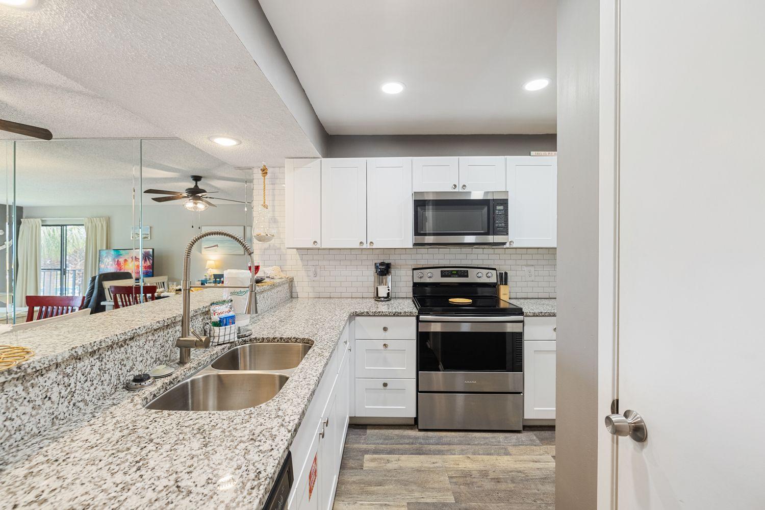The fully equipped kitchen provides all the amenities you need to prepare beach snacks or try your hand at a fresh seafood recipe. Enjoy your culinary creations around the dining table or on your private balconies, basking in the glorious Florida weather while sharing a delicious meal with loved ones. As the sun sets, retreat to the cozy living room, where you can unwind on the comfortable couch or chairs and catch up on your favorite TV shows and movies.