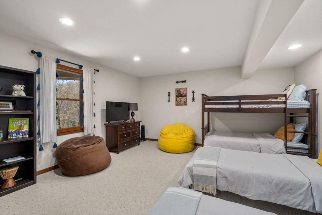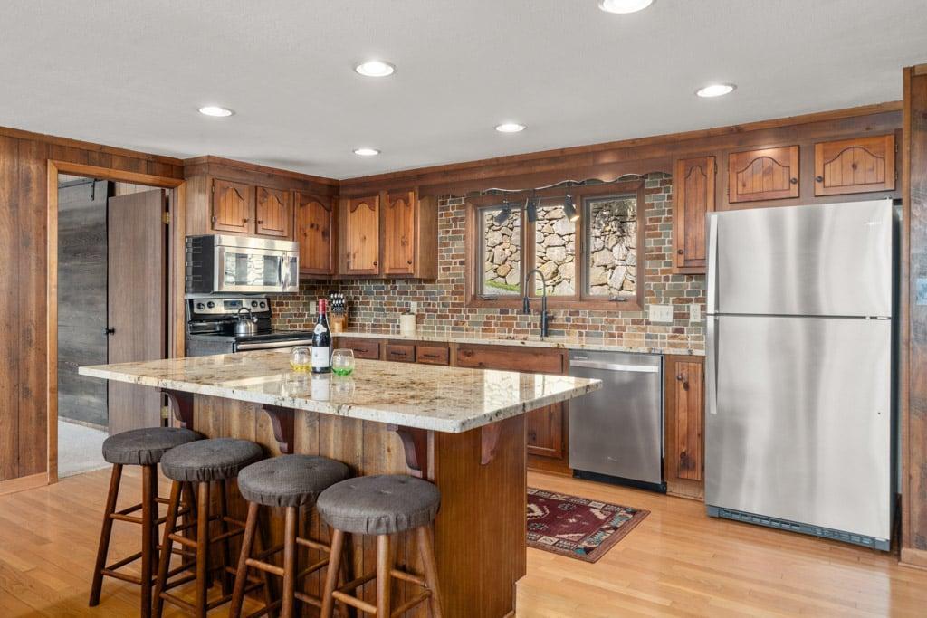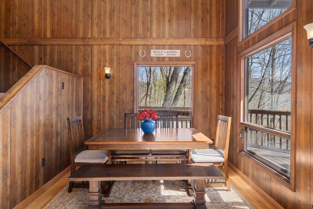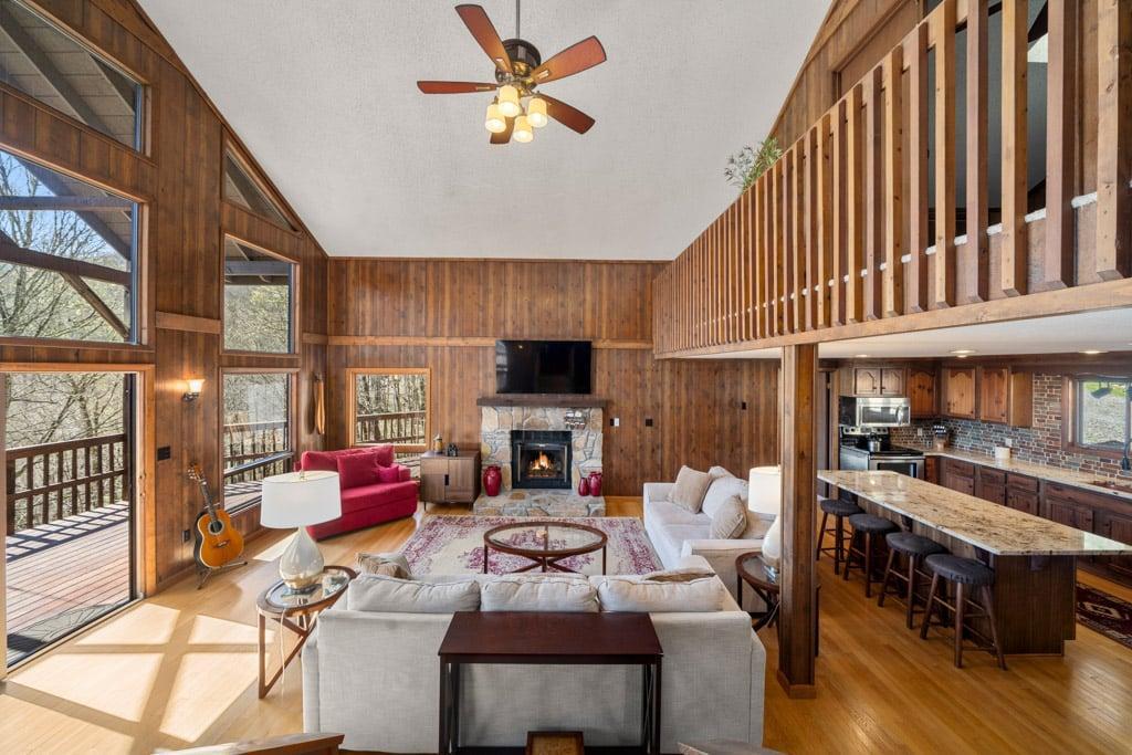 Wolf Ridge Retreat.....nestled amidst the private, gated Wolf Laurel ski & golf community, highlighting the splendor of the Blue Ridge Mountains. Welcome to the tranquility that comes from "elevation", calming and majestic and access to the areas most sought after activities; skiing, fishing, whitewater rafting and more Come create your own year-round mountain memories. Location: Private home located in the gated & exclusive, upscale and private Wolf Laurel community. You are app. 40 minutes to Asheville, and 15 minutes to Mars Hill. You are also less than 1 hour from the Asheville Regional Airport. Home is accessed via only paved and fully maintained roads right up to and inside Wolf Laurel internal gravel access road; just off main road within development. Accommodations: 5 bedroom, 4 full baths Occupancy Summary / Sleeps in beds: 12 Max. Occupancy: 14 Bedroom/Bath Layout: 5 bedroom, 4 full baths Bedroom #1 – Main Level Master Suite – King Bed – Private ensuite Full Bath, w/bathtub (#1) Bedroom #2 – Main Level Guest Suite – Queen Bed – ensuite Full Bath, w/bathtub (#2) Bedroom #3 - Upper Level Guest Suite - Queen Bed - Private ensuite Full Bath, Walk-in Shower (#3) Bedroom #4 – Terrace Level Guest Room – 2 Twin Beds, plus a Bunk Bed – Ensuite Full Bath, Walk-in Shower (#4) Bedroom #5 – Terrace Level Guest Room – 2 Twin Beds – Shared Full Bath. Lower level bath is in bedroom #4 (#4) Occupancy Summary / Sleeps in beds: 12 Max. Occupancy: 14 (PLEASE NOTE: Yonder provides linens for all beds; other occupancy will require guests providing their own linens.) We look forward to possibly booking your stay, should these accommodations work for you. We can reserve your stay with a credit card and send out a rental agreement to firm everything up when you are ready...but don't delay too long. Internet Speed: Download - 59.4 Mbps Upload - 2.8 Mbps Additional Rate Info And Fees: *4 night minimum required for all holidays & special events. These observed holidays and occasions are subject to holiday rates: New Years, MLK, Valentines, Easter, Memorial Day, Independence Day, Labor Day, Thanksgiving, Christmas $330 Cleaning Fee** ** - Yonder openly shares & clearly posts our Cleaning Fees in a manner of full disclosure, as we think this is the most honest and forthright approach with respect to our guests. Our Cleaning Fees are backed by our Clean Guarantee, which reflects the highest level of standards, pristine environments for our guests, and a level of clean that surpasses any other vacation homes; we literally guarantee it! processing fee Current local tax rate is 13% No Security Deposit / Guests are responsible for damages. Early Check In and/or Late Check Out may be possible, depending on cleaning schedules and other reservations. If it is possible, there may be an additional fee that would be determined based on the time that you wish to check in or out and the seasonal rates. Reservations made within 7 days of check-in require additional documentation before confirmation. Pets: This home is NOT pet friendly; no exceptions. Home Truths: There is no air conditioning inside Wolf Ridge Retreat. Because of elevation, the average summer time highs rarely exceed 75 degrees. The driveway is steep. It's best to arrive in the daytime. Please inquire for details regarding payment, the cancellation policy, military discounts, and trip insurance. Note: Reservations over 30 days are subject for review prior to acceptance. A separate rental agreement will be required for 90+ day stays. Steve Frellick NCREC Broker-in-Charge