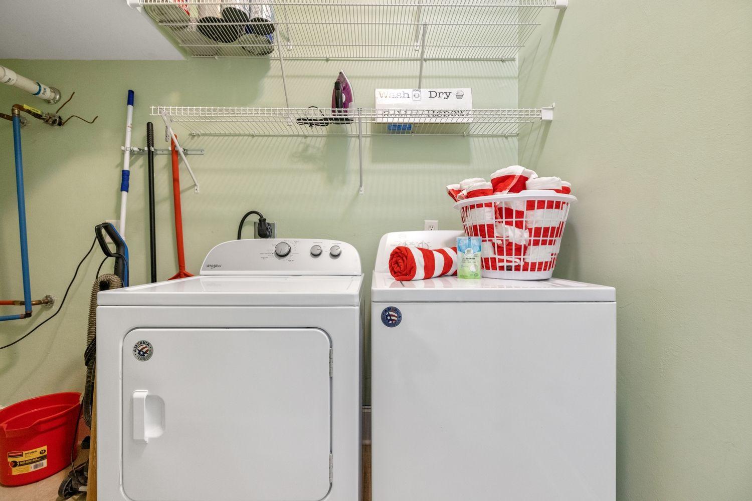Laundry Room: Washer, Dryer, Iron & Ironing Board *starter pack of laundry Soap provided.